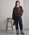 コンパクトな着丈なので、ワイドパンツやフレアスカートなどボリューム感のあるアイテムと合わせても、ボトムスのシルエットを崩さず着ることができます。