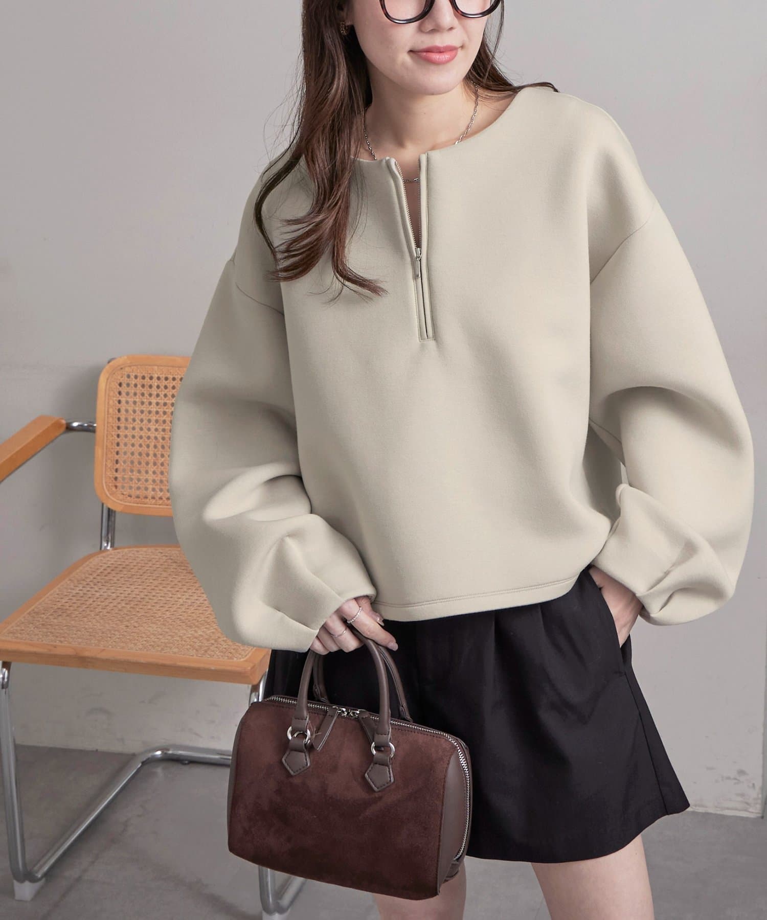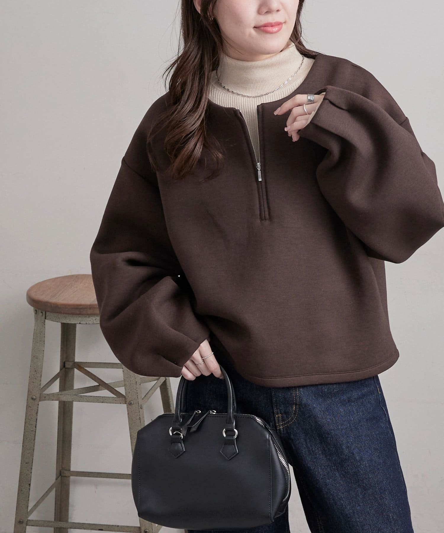 コンパクトな着丈とハーフジップのデザインが自然な抜け感を演出します。