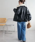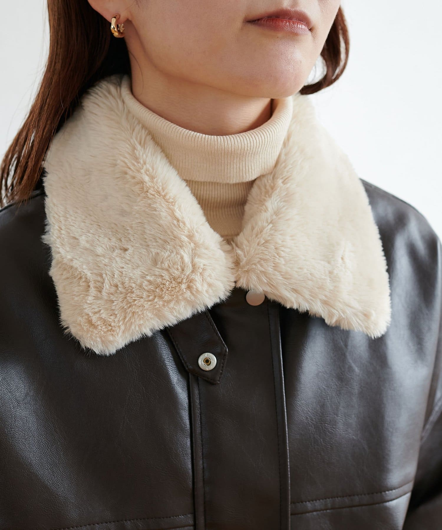 【ファー取り外し可◎/着回し万能/WEB限定】ティペット付レザーブルゾン