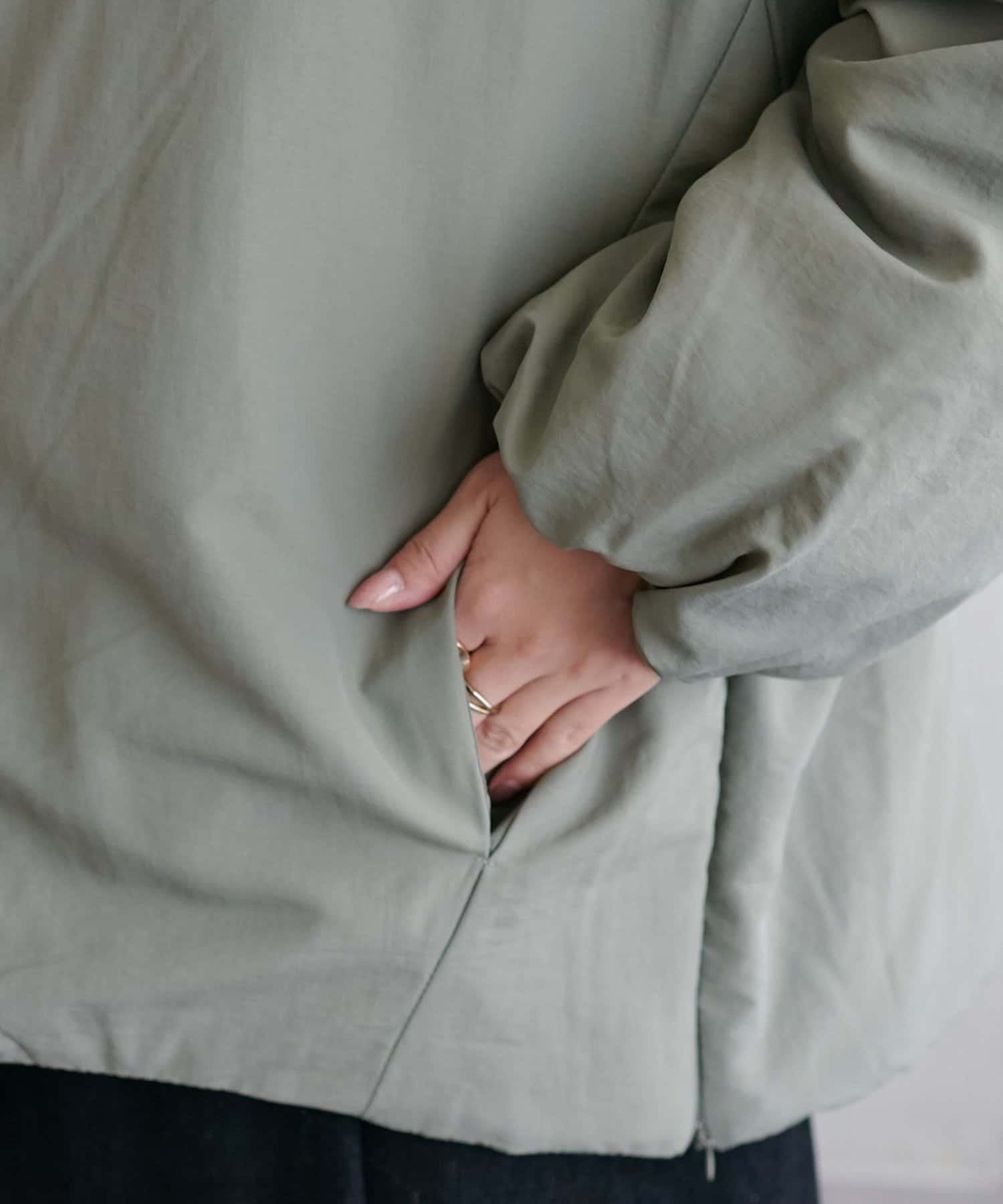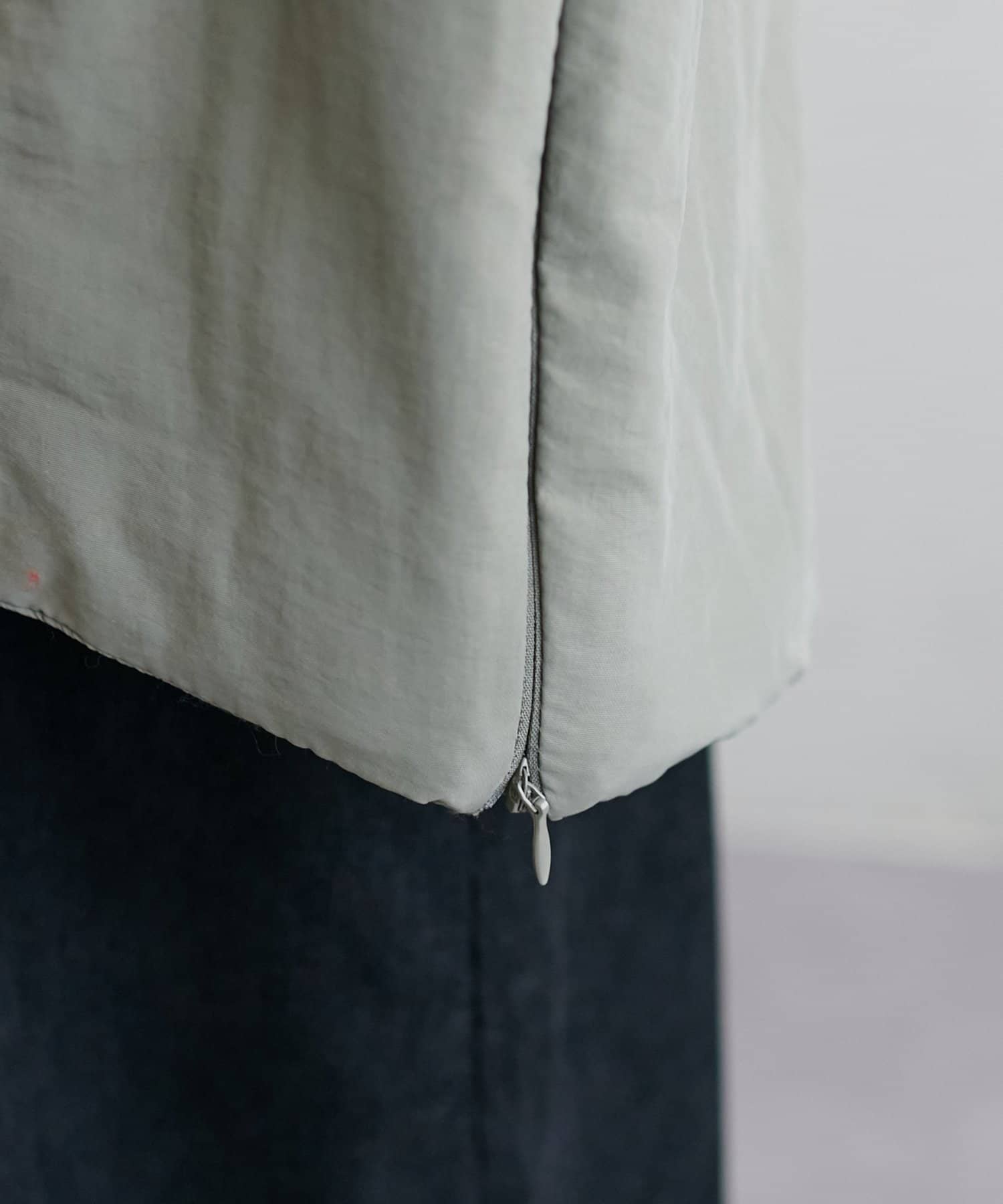 両サイドにはファスナーが付いており、好みに合わせて調整できるので、開けて抜け感を出すのもおすすめ◎