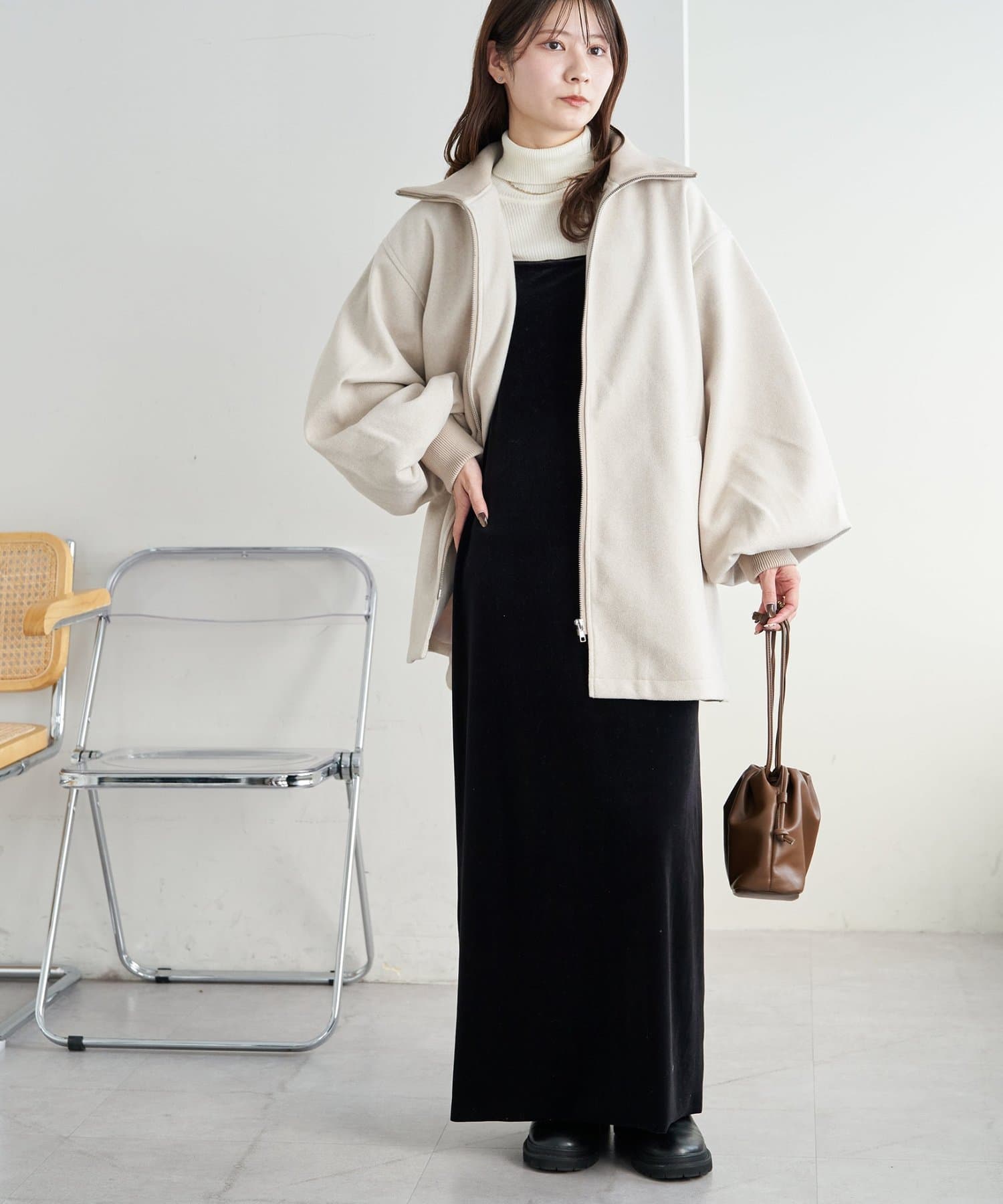 ・ミドル丈でバランスが取りやすく、どんなコーディネートにもさらっと羽織れます