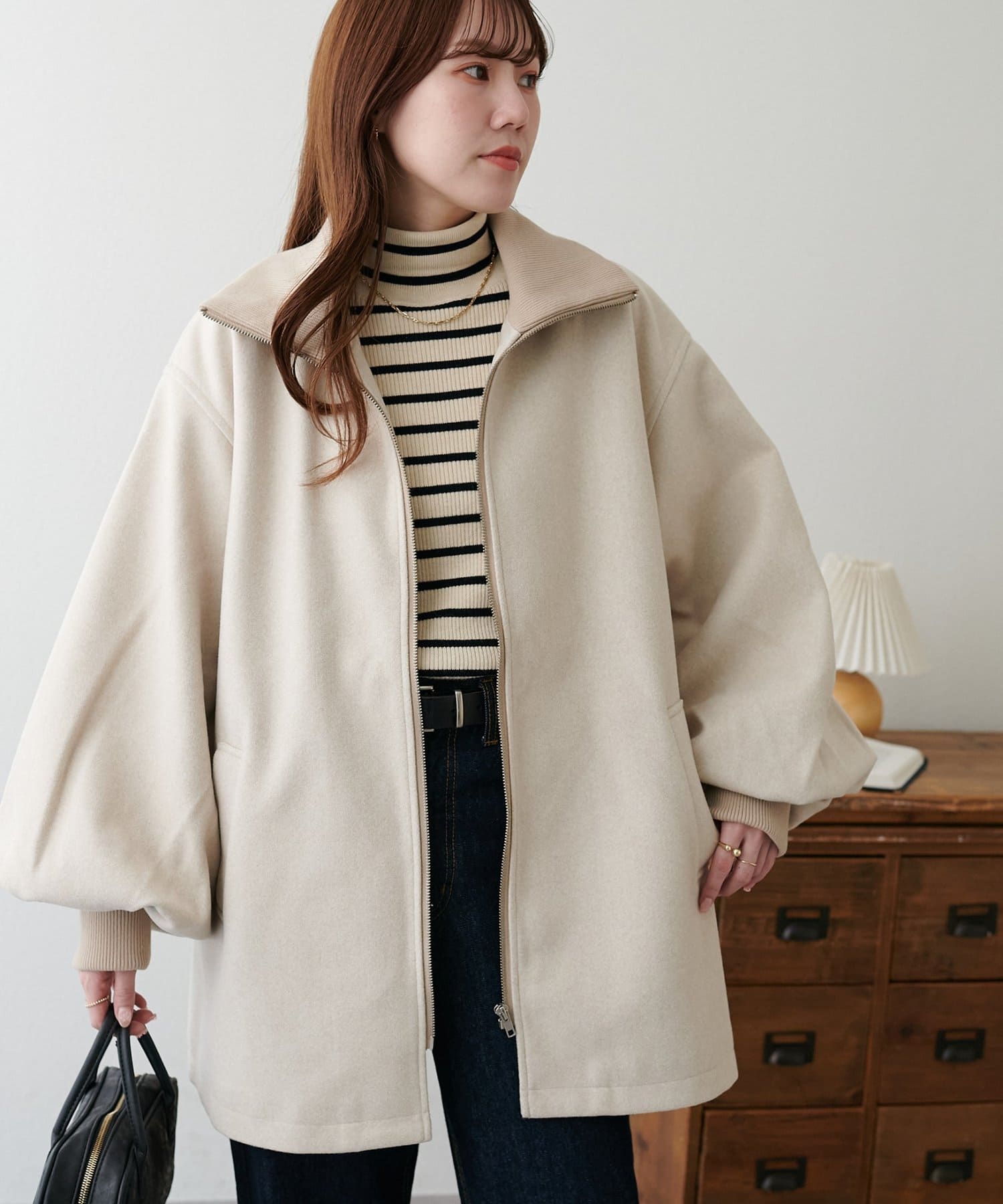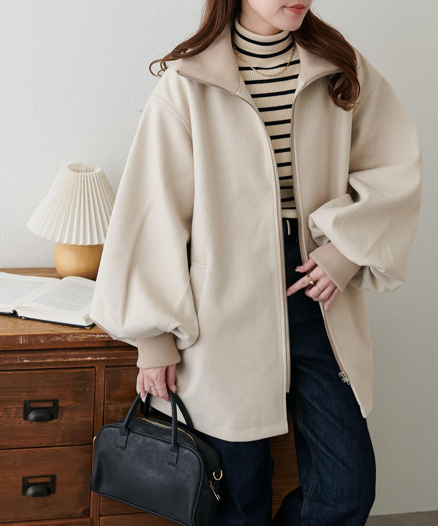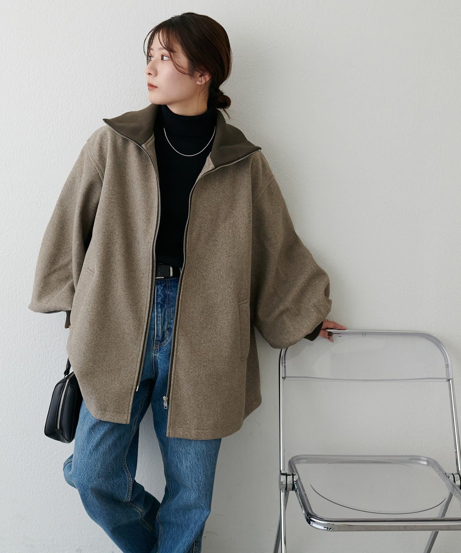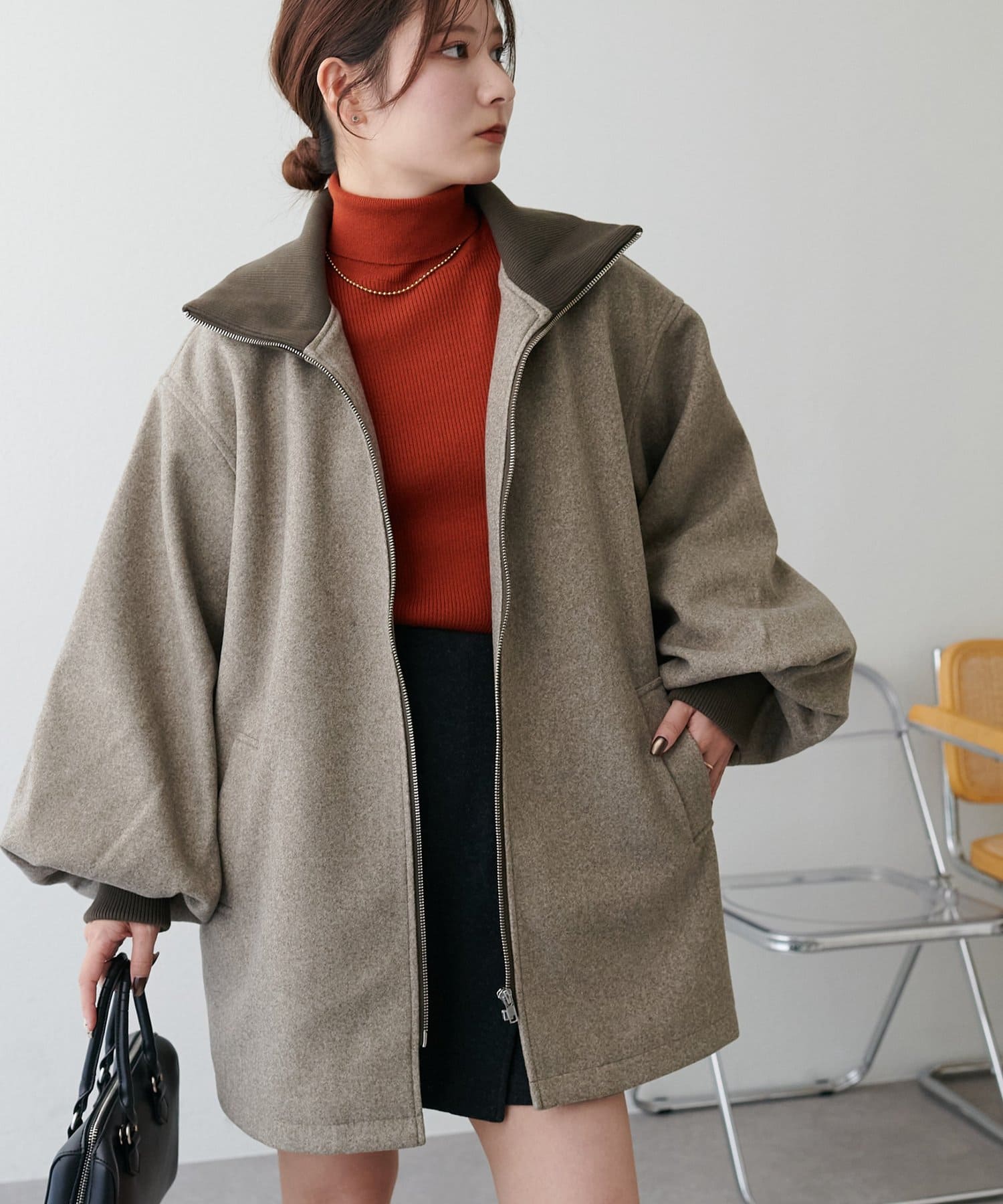 【リバイバル/2way/ミドルアウター】リブカラーミドルジップコート《WEB限定》