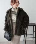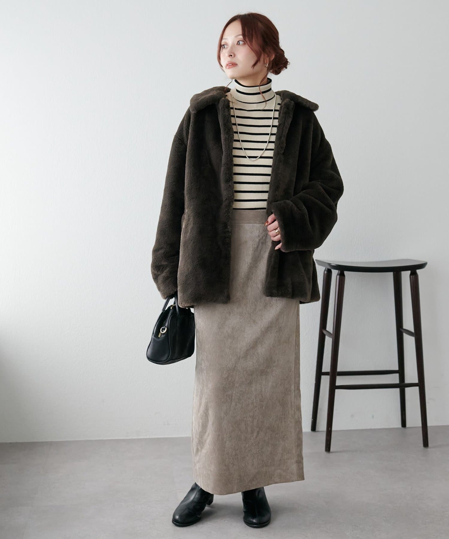 ・ふわふわとした素材感は女性らしさを引き立て、華やかな印象をコーデにプラス。
