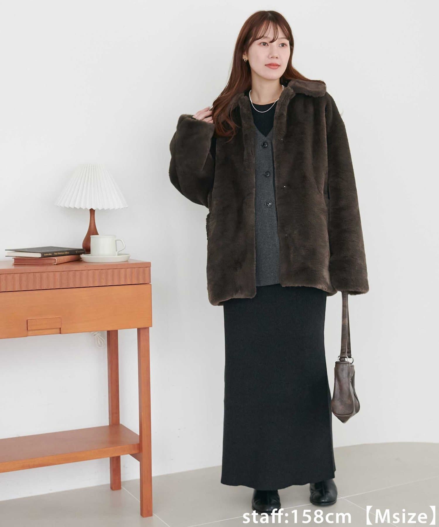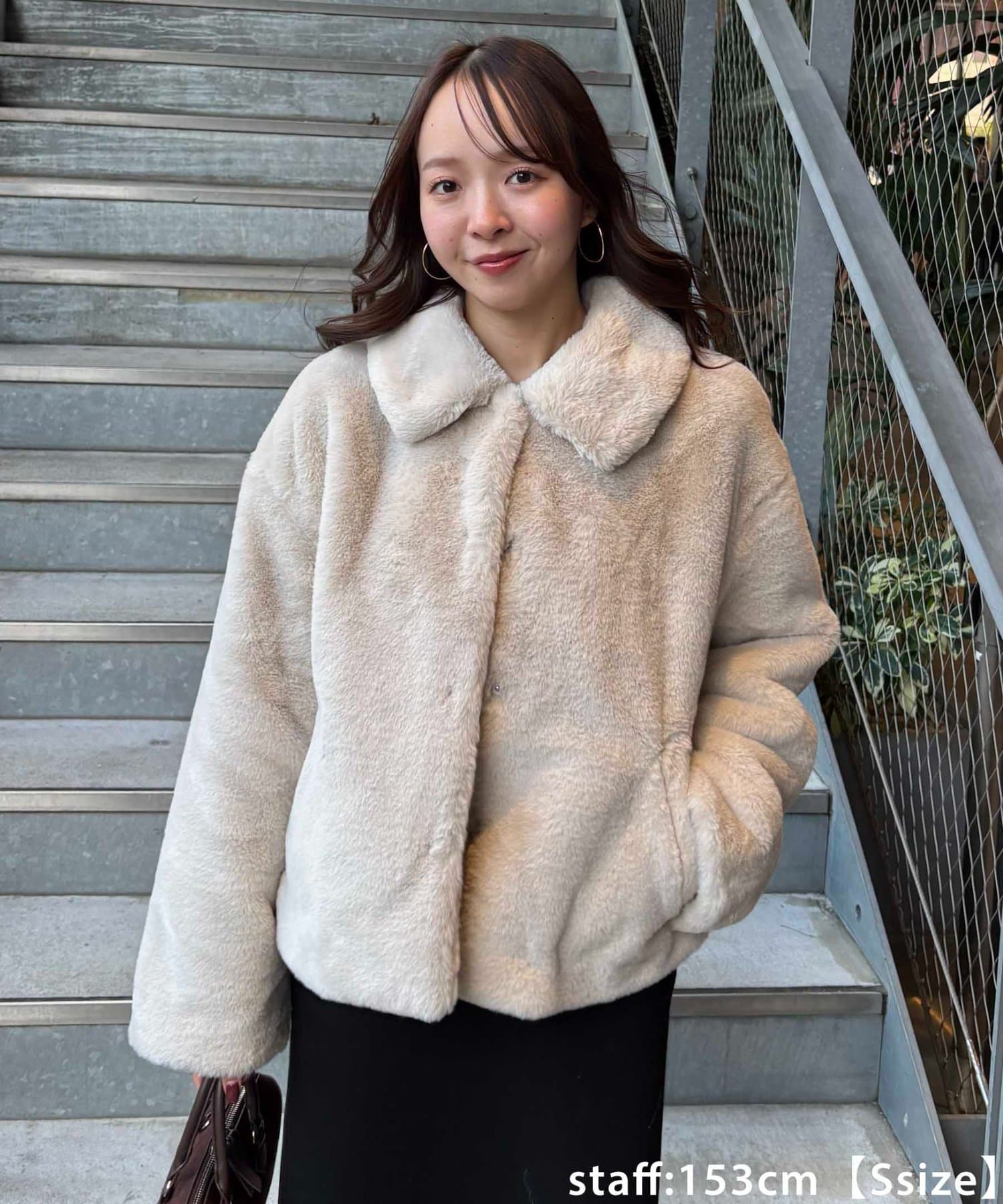 長くないので、ふわりとしていてややボリューム感のあるアウターですがSサイズだとバランスが取りやすいです〇