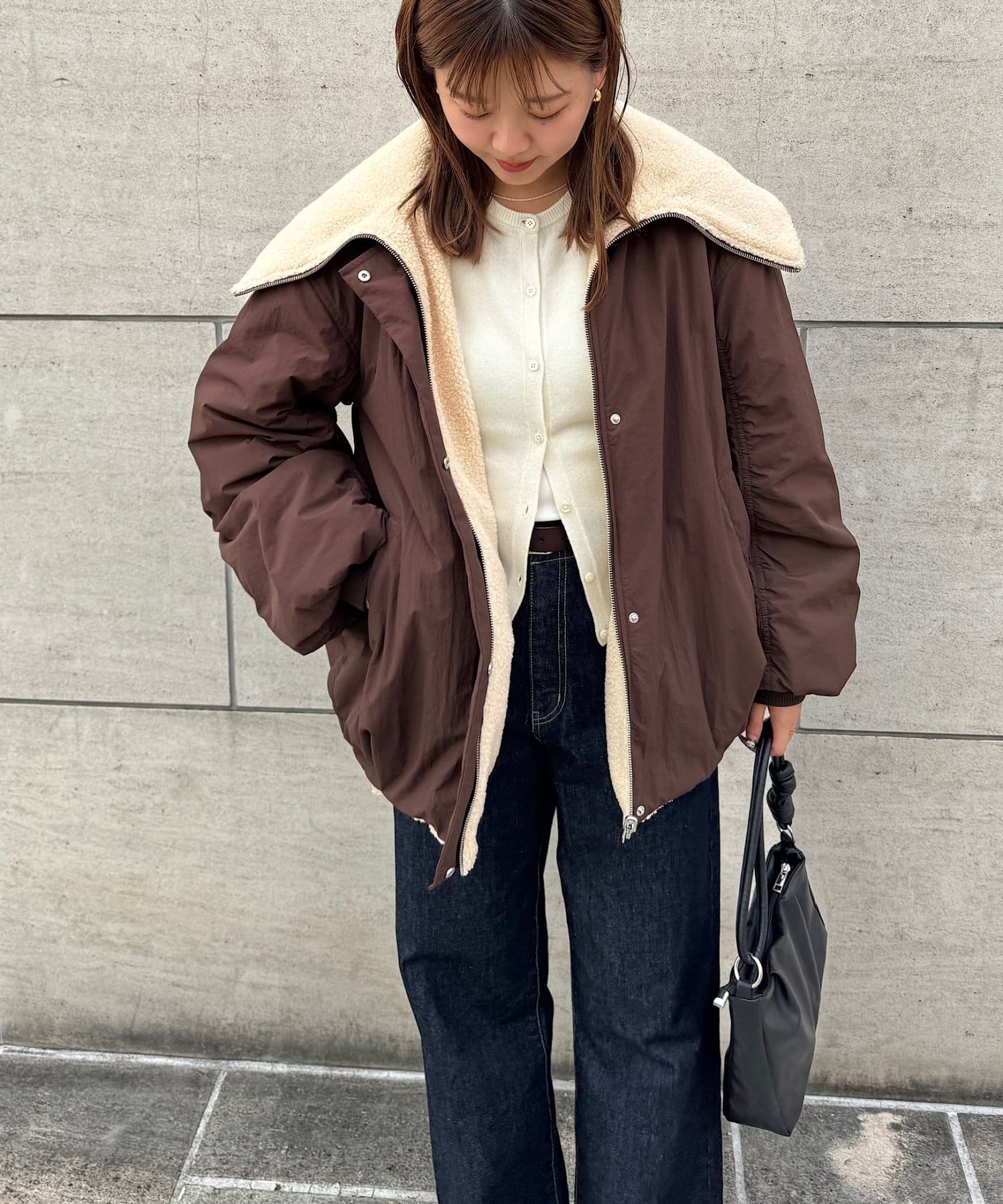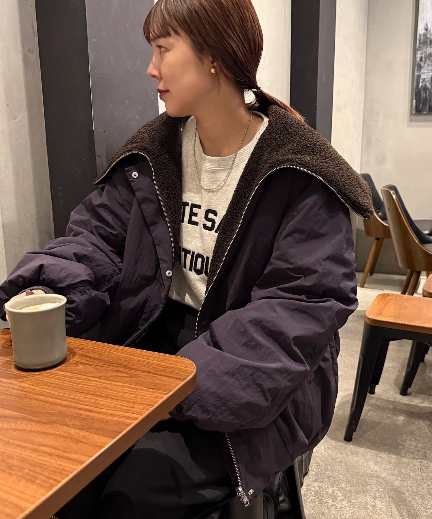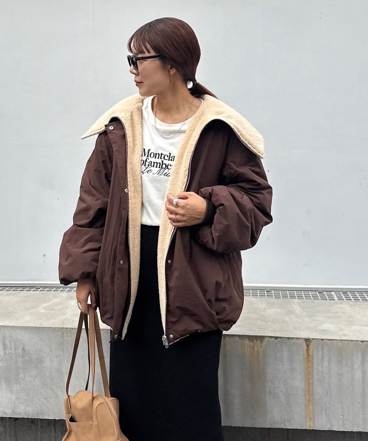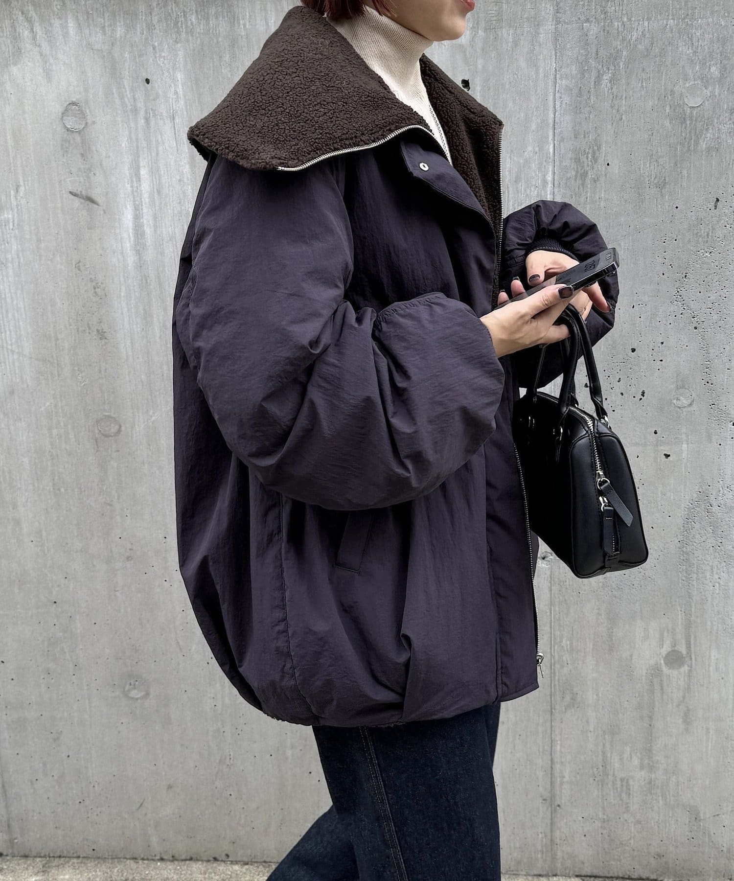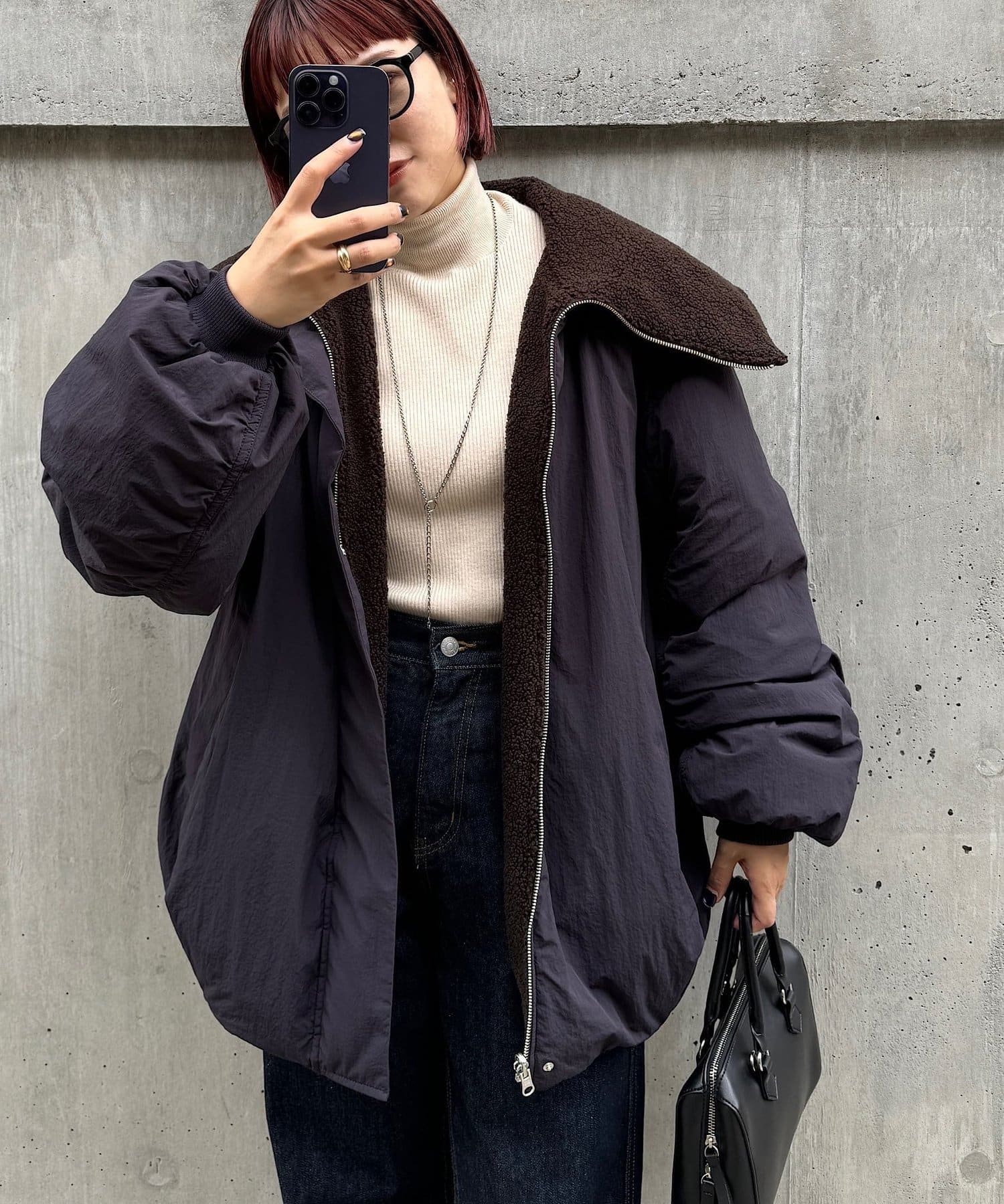 リバーシブルでボアとナイロンの質感をコーディネートによって楽しめます◎