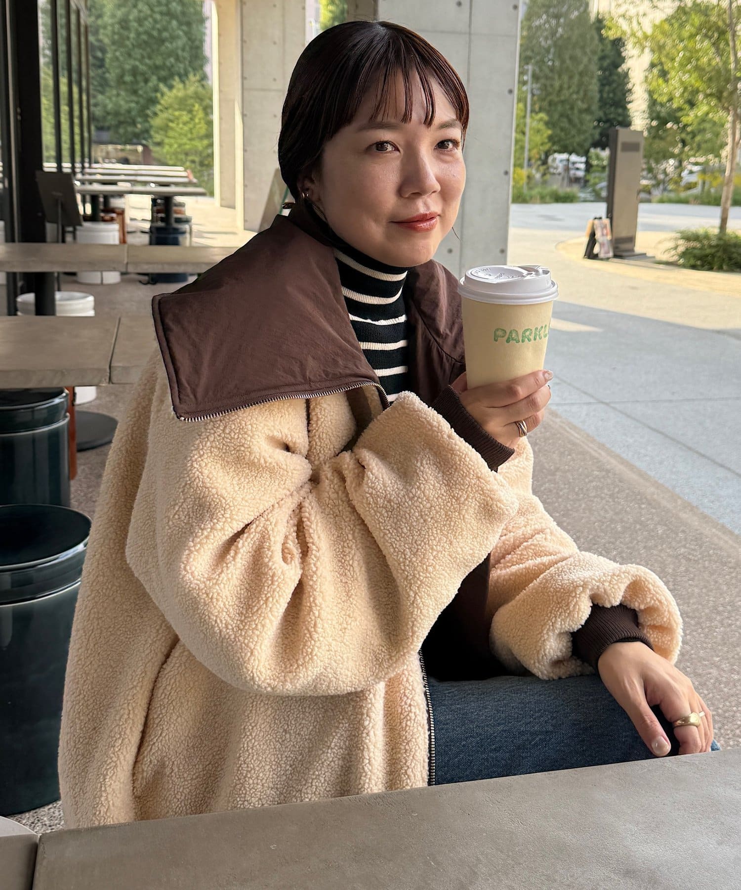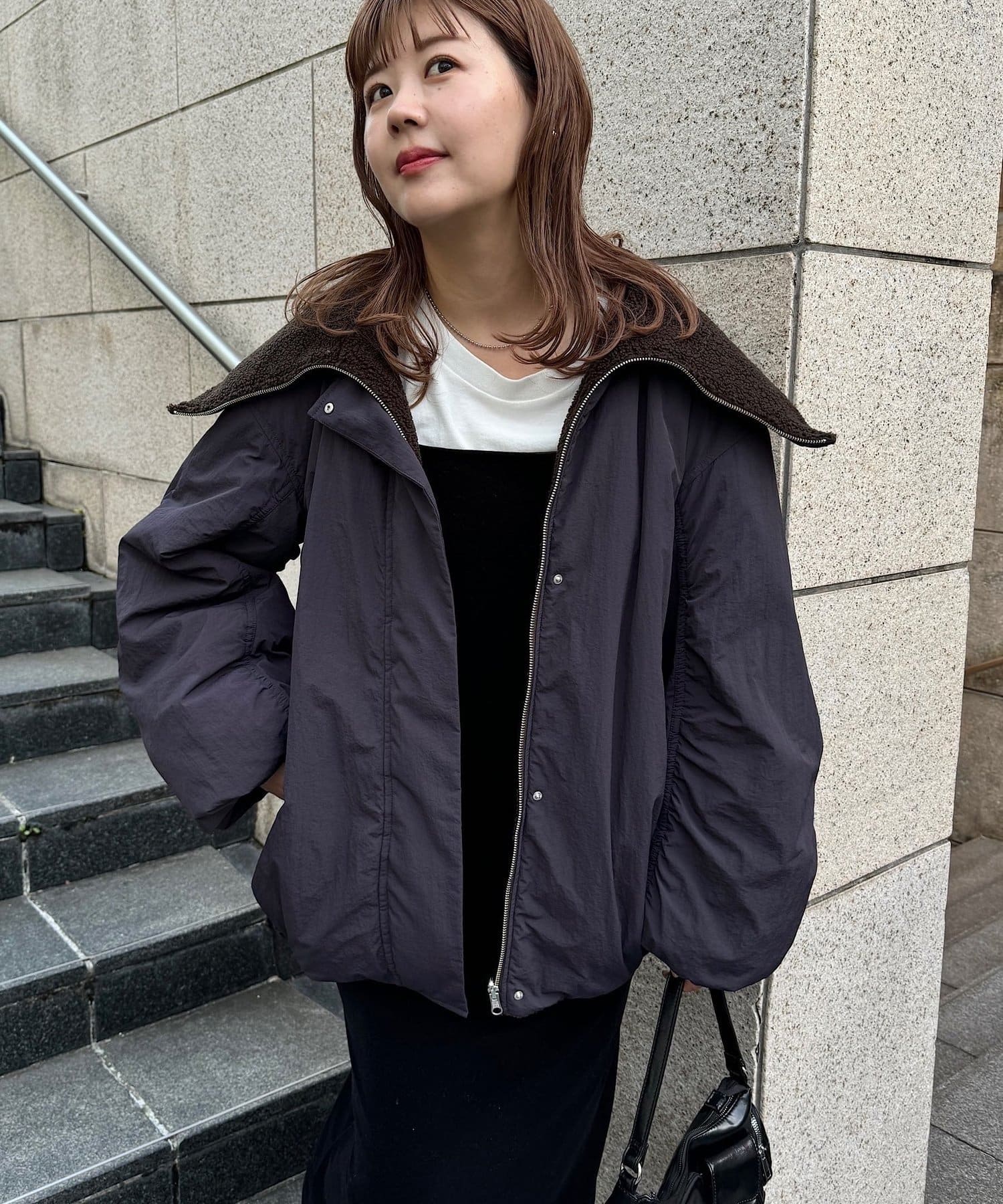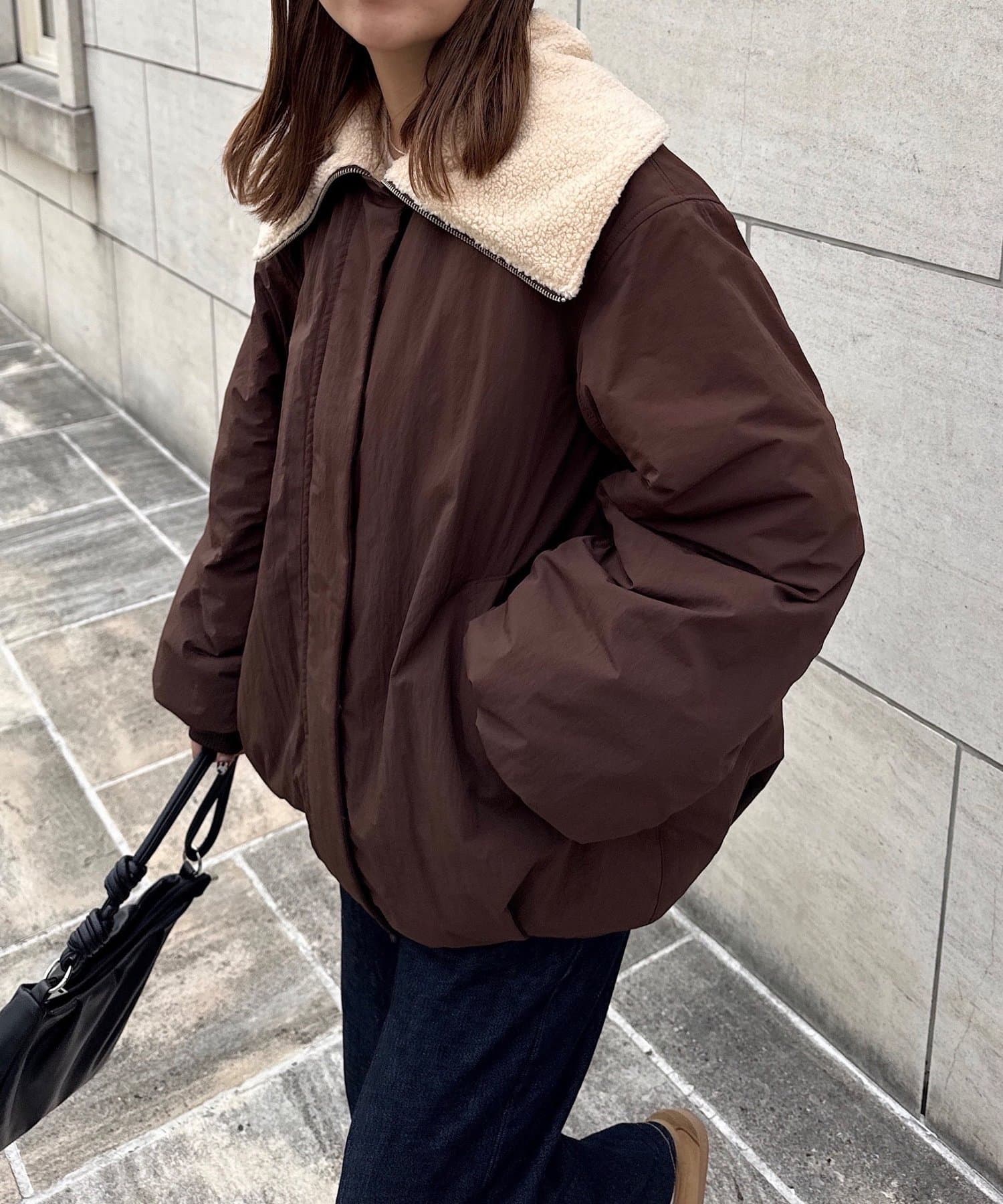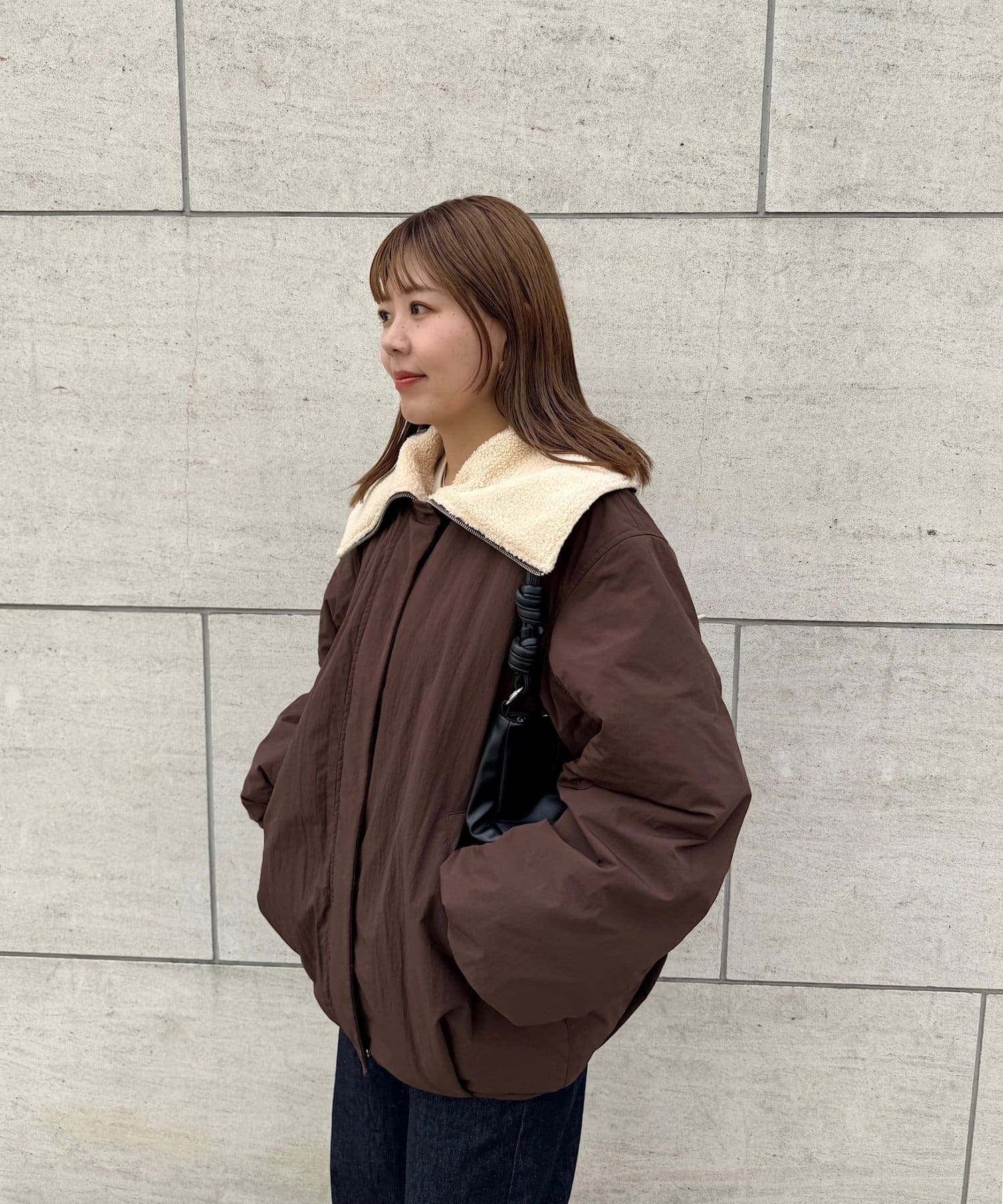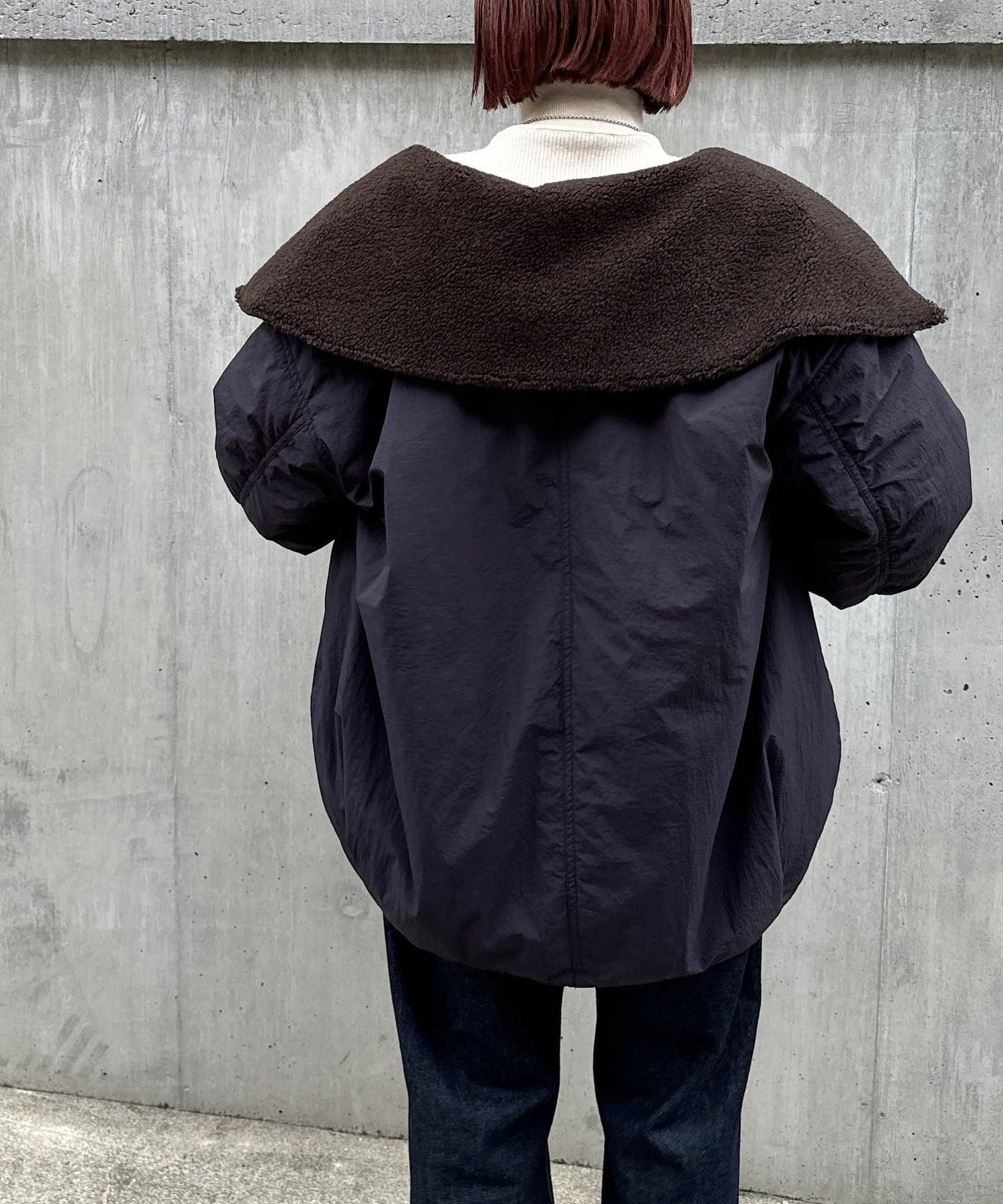 リバーシブルでボアとナイロンの質感をコーディネートによって楽しめます◎