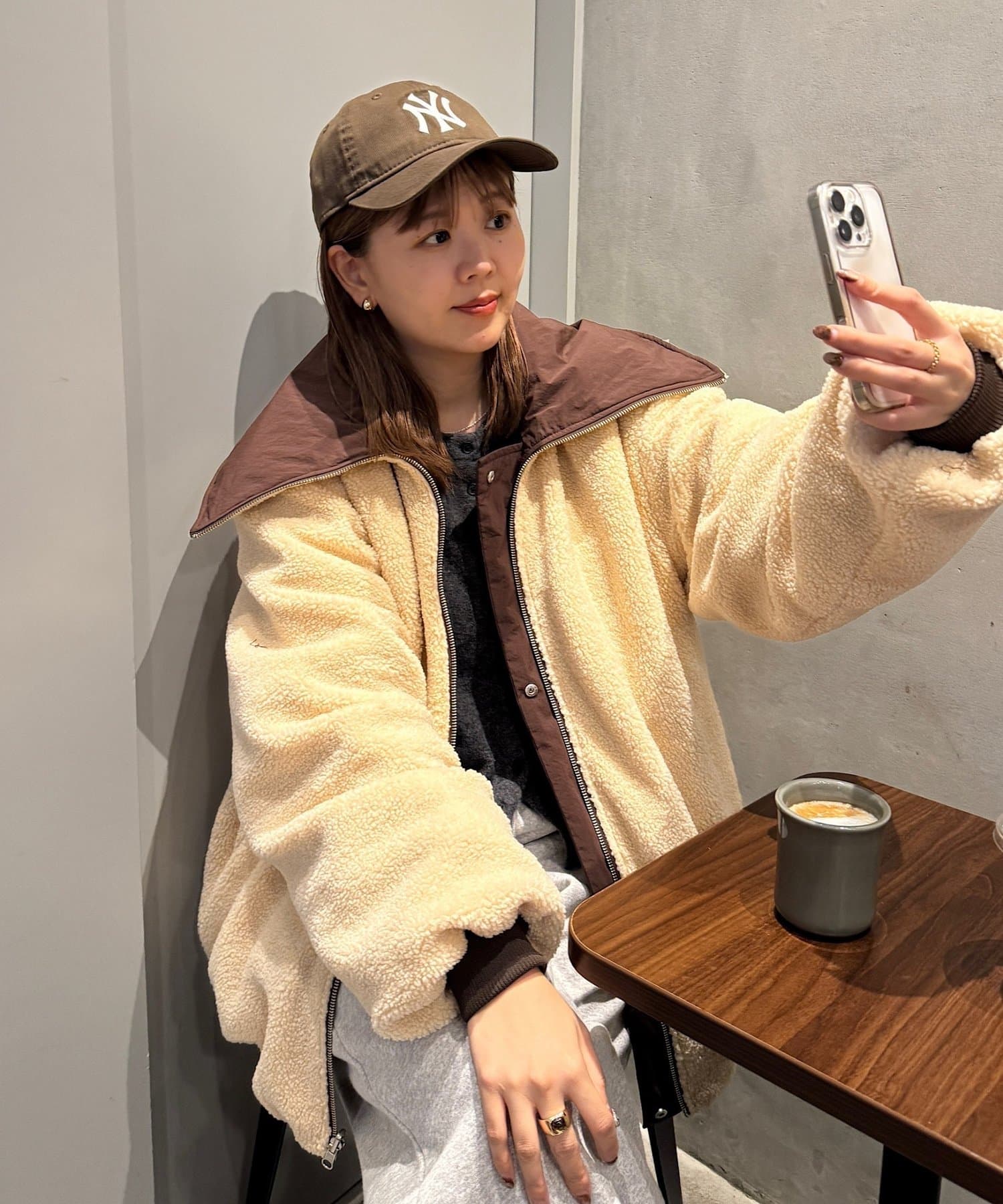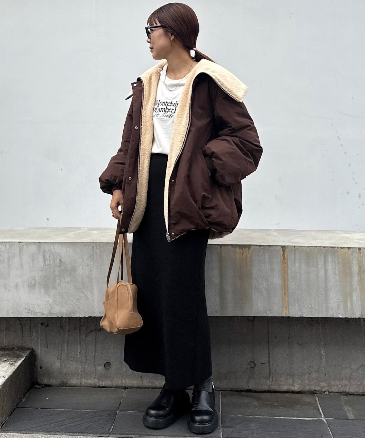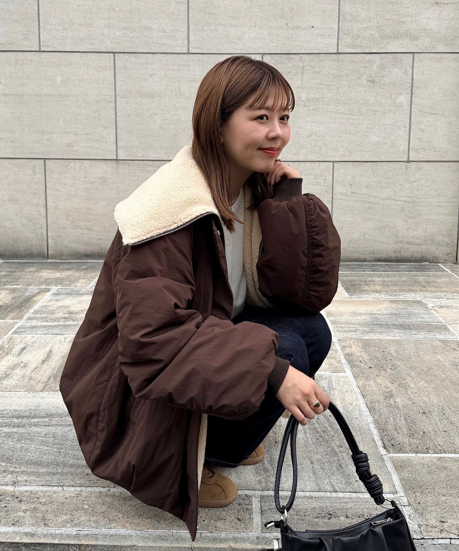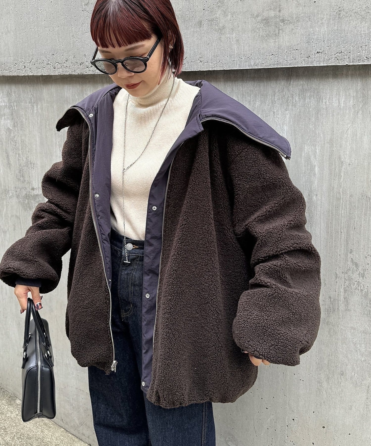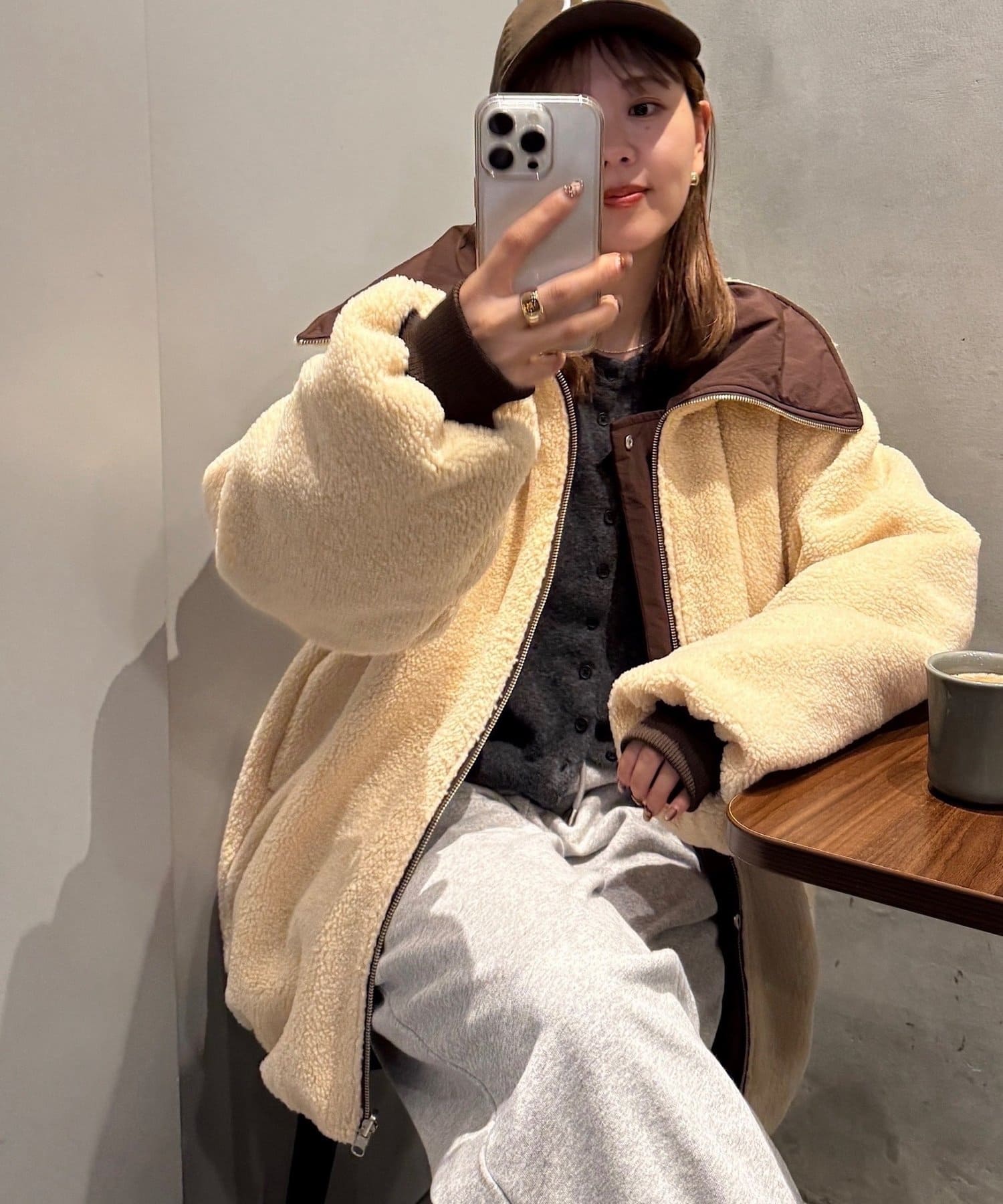 リバーシブルでボアとナイロンの質感をコーディネートによって楽しめます◎