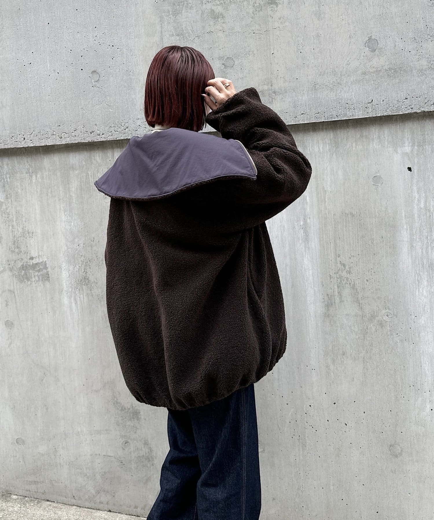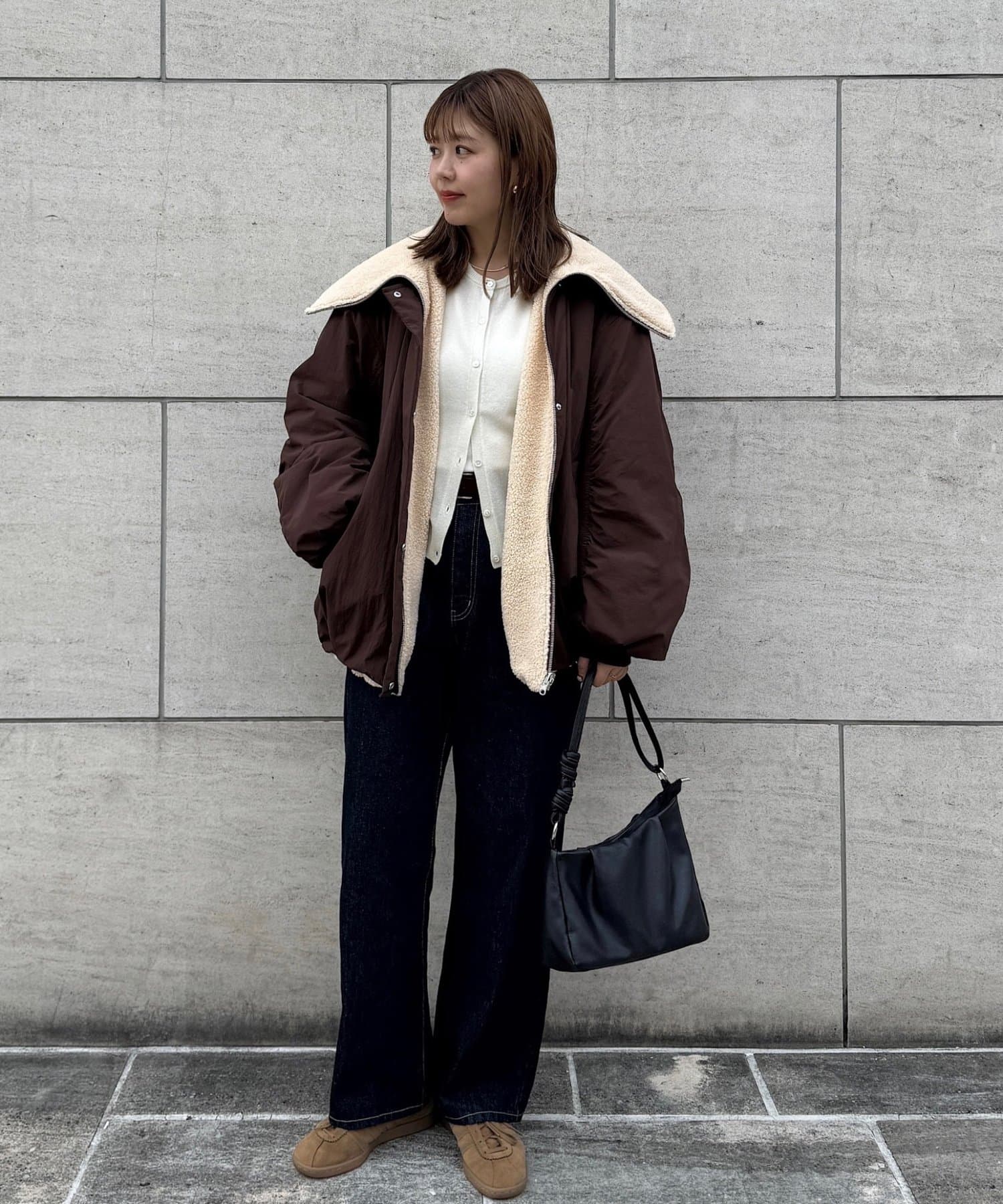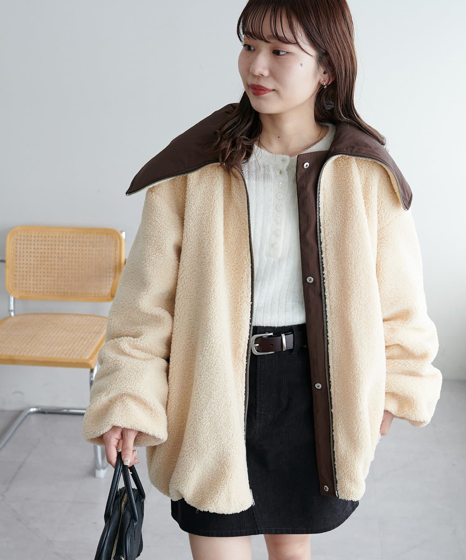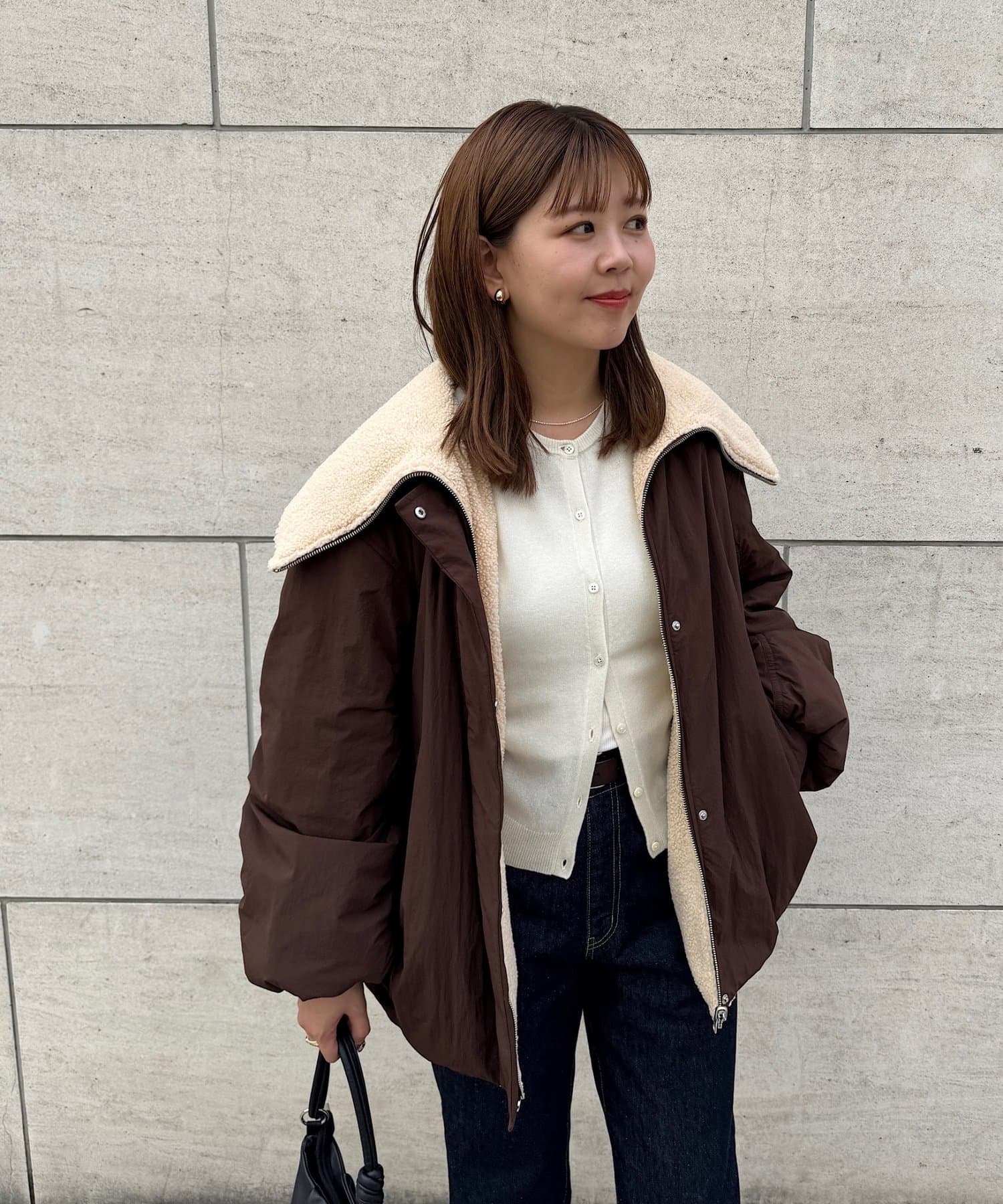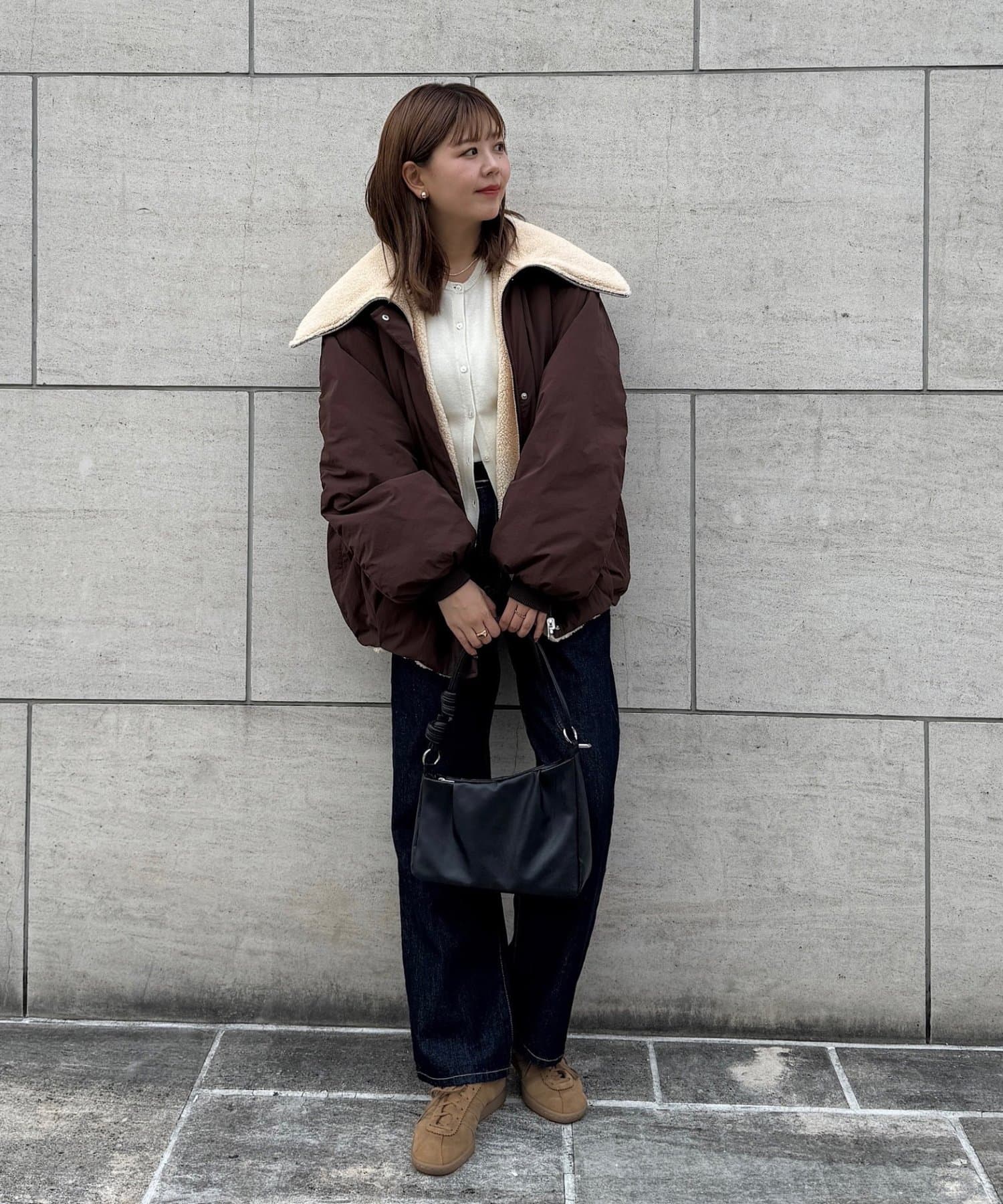 リバーシブルでボアとナイロンの質感をコーディネートによって楽しめます◎
