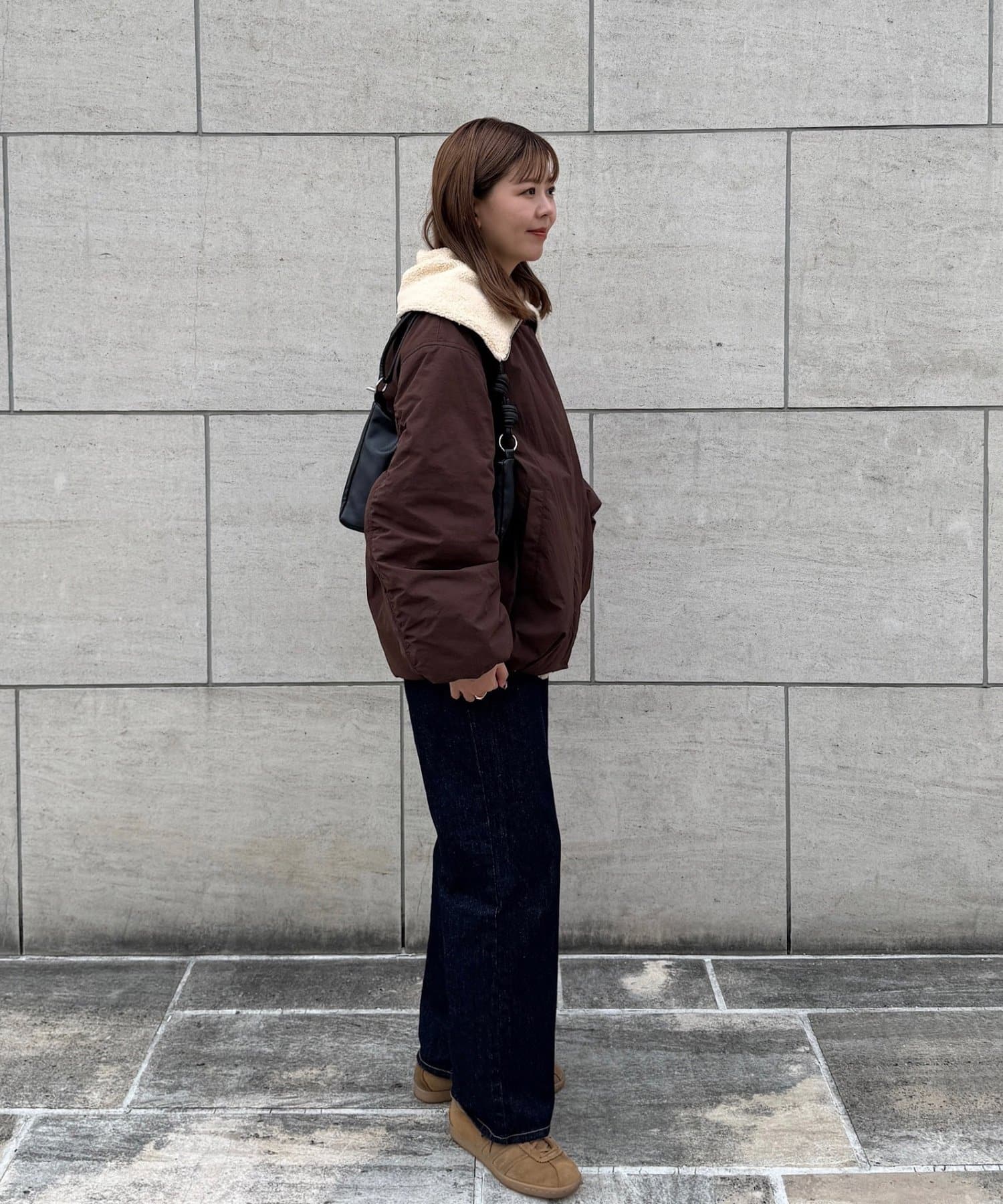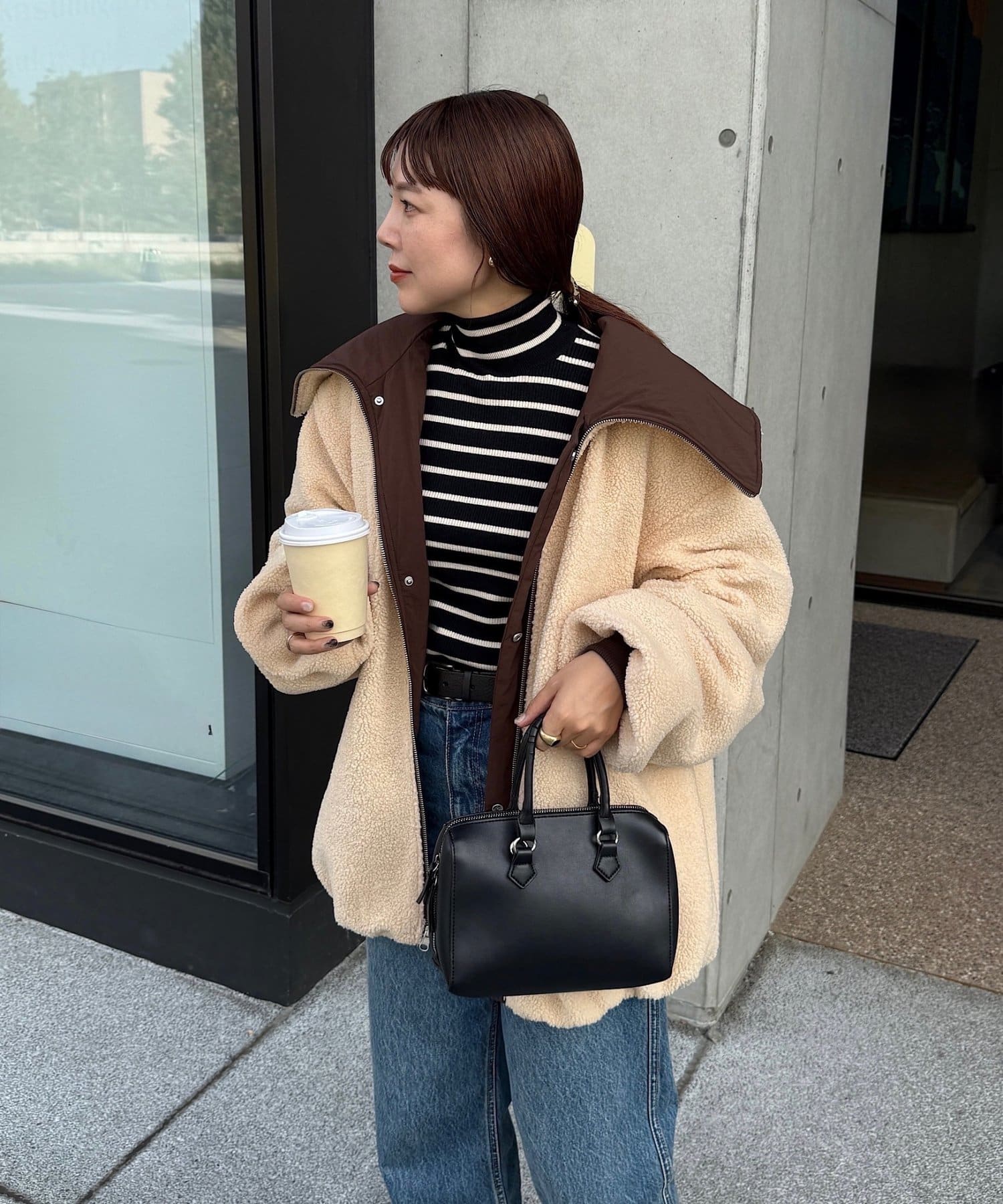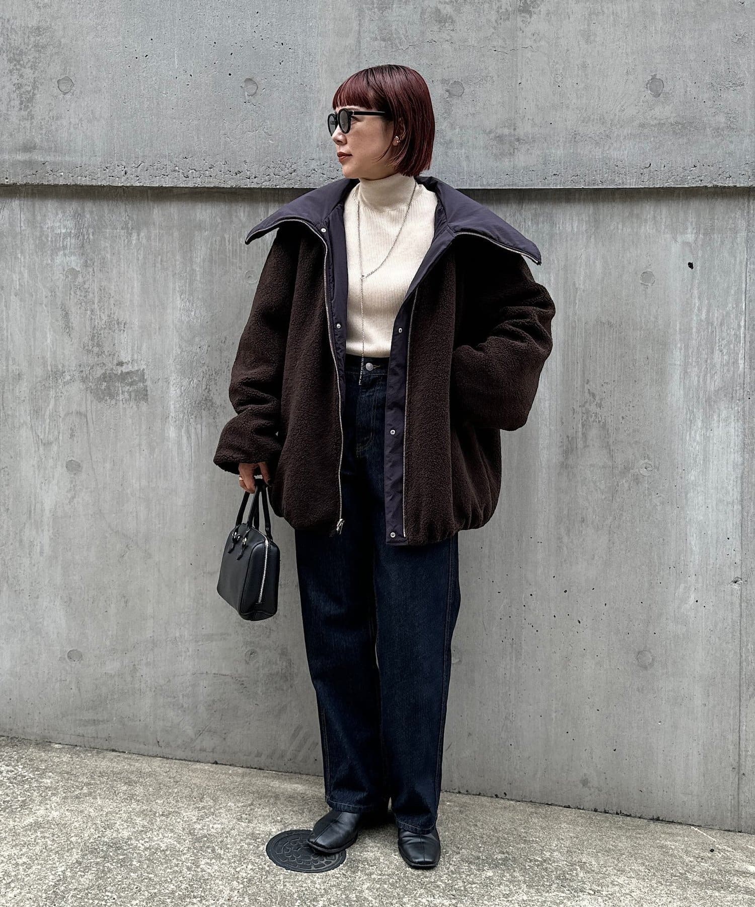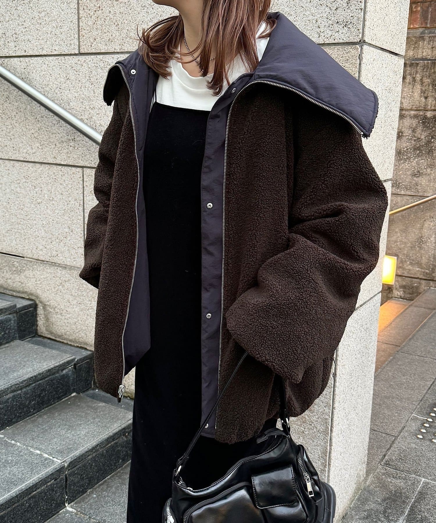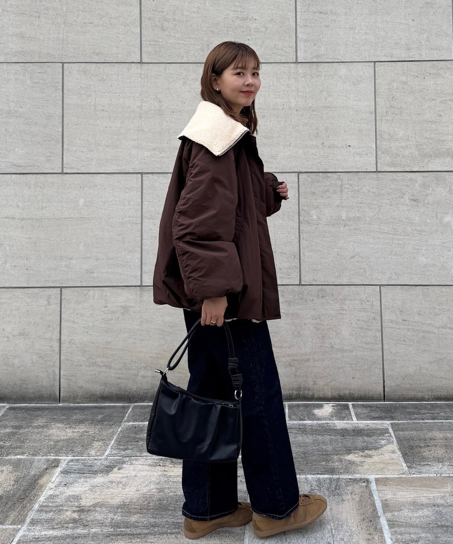 リバーシブルでボアとナイロンの質感をコーディネートによって楽しめます◎