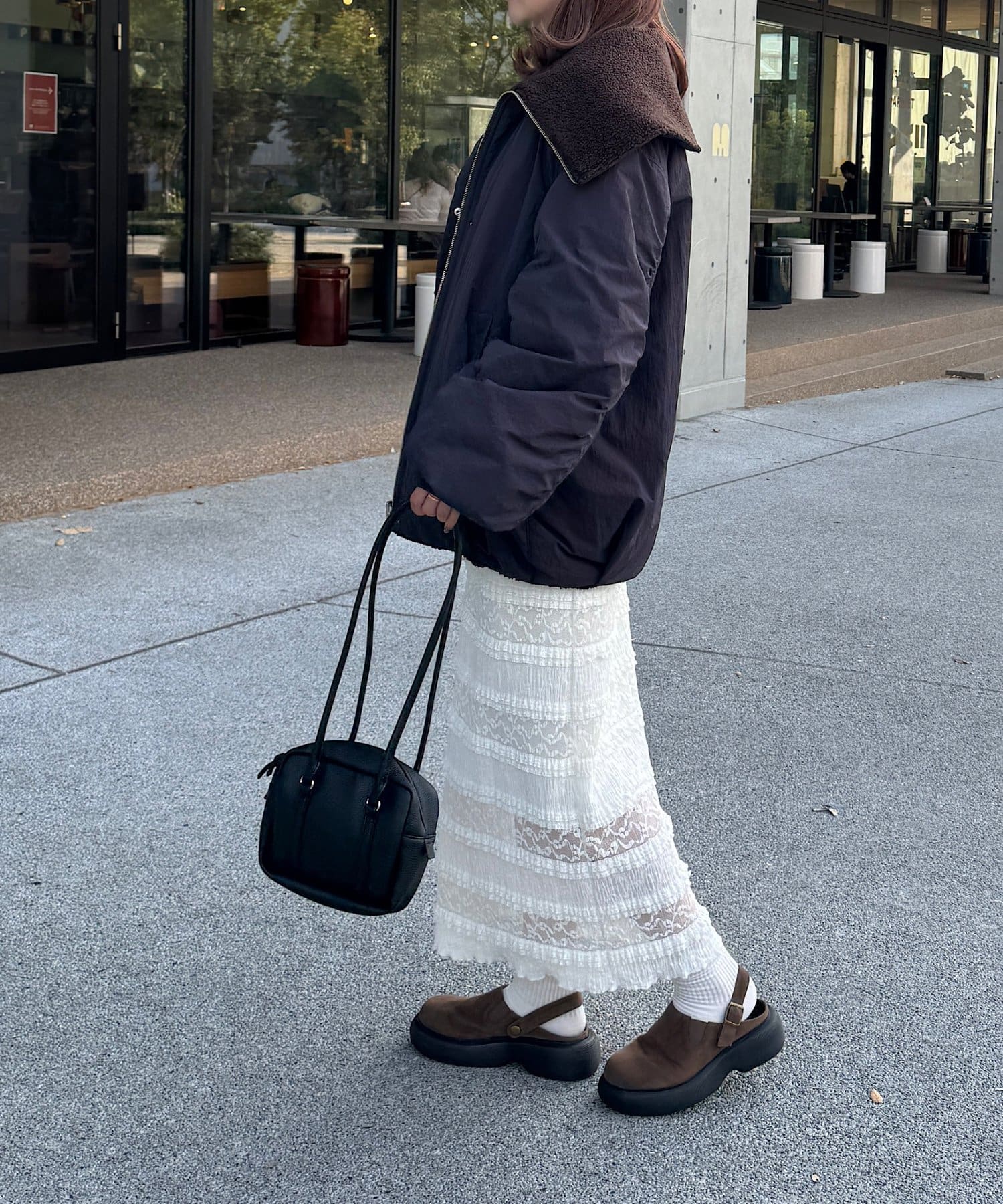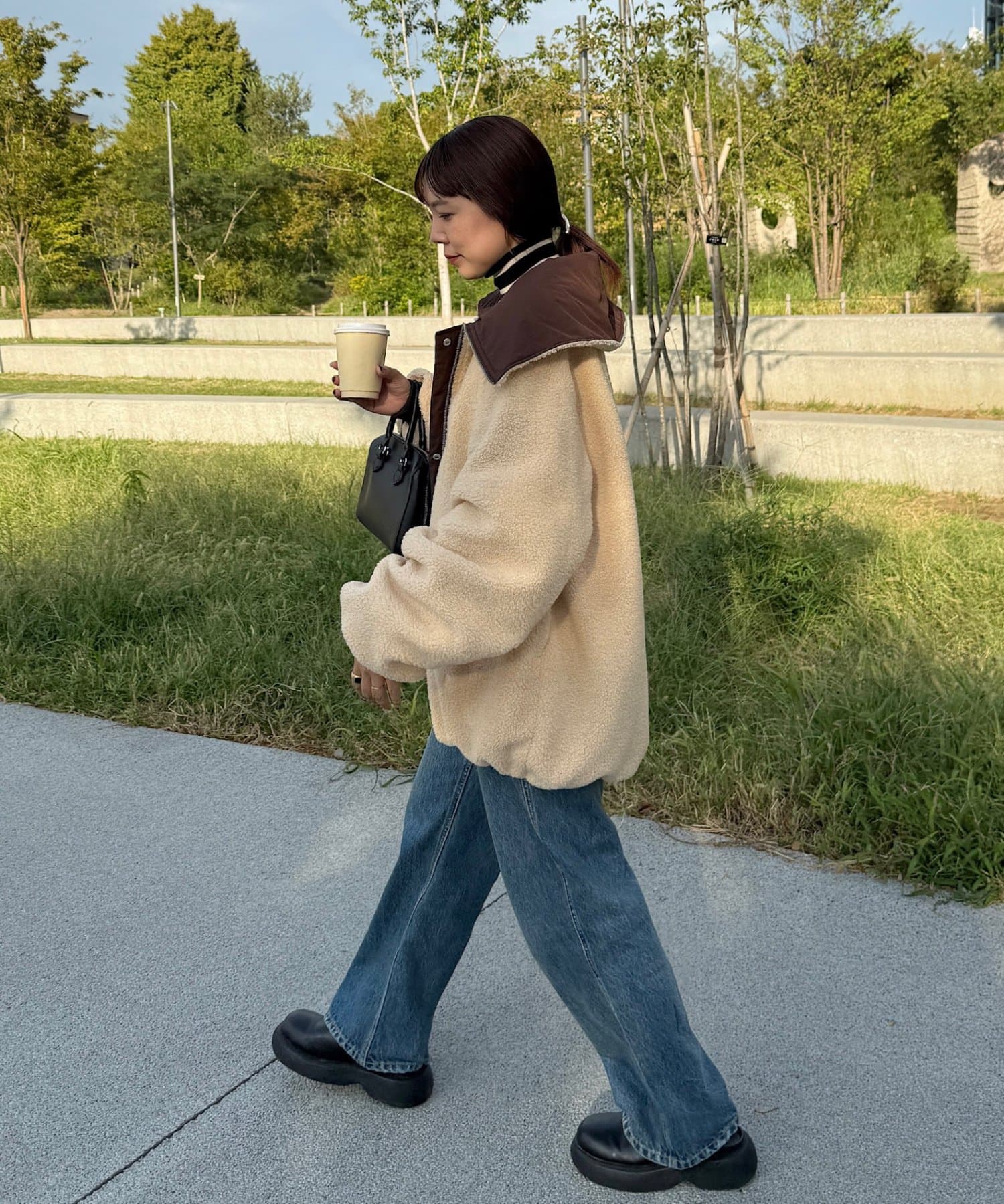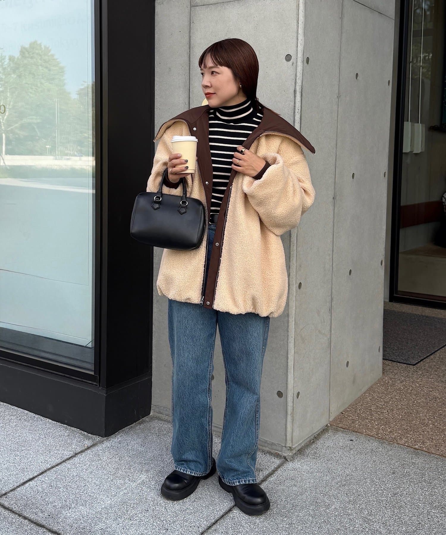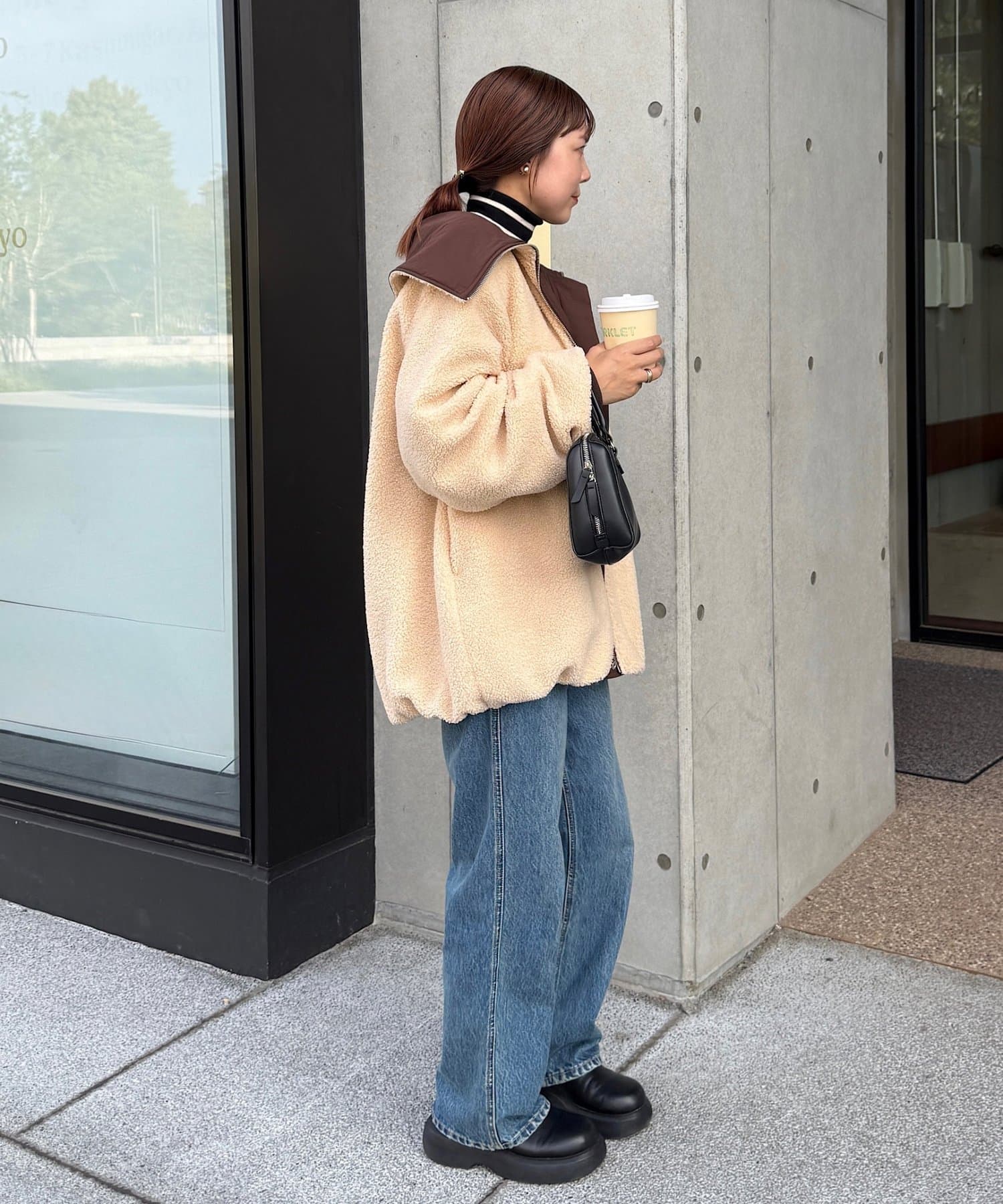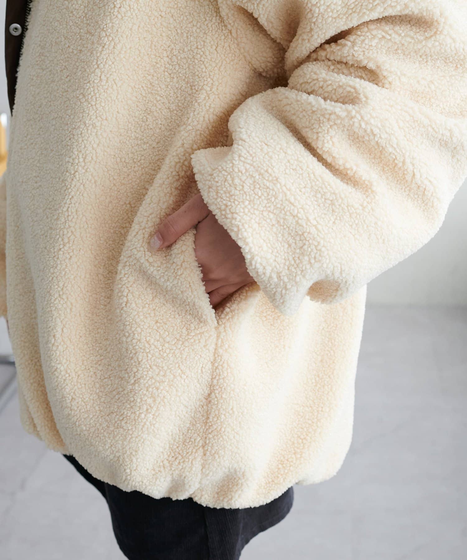 リバーシブルでボアとナイロンの質感をコーディネートによって楽しめます◎