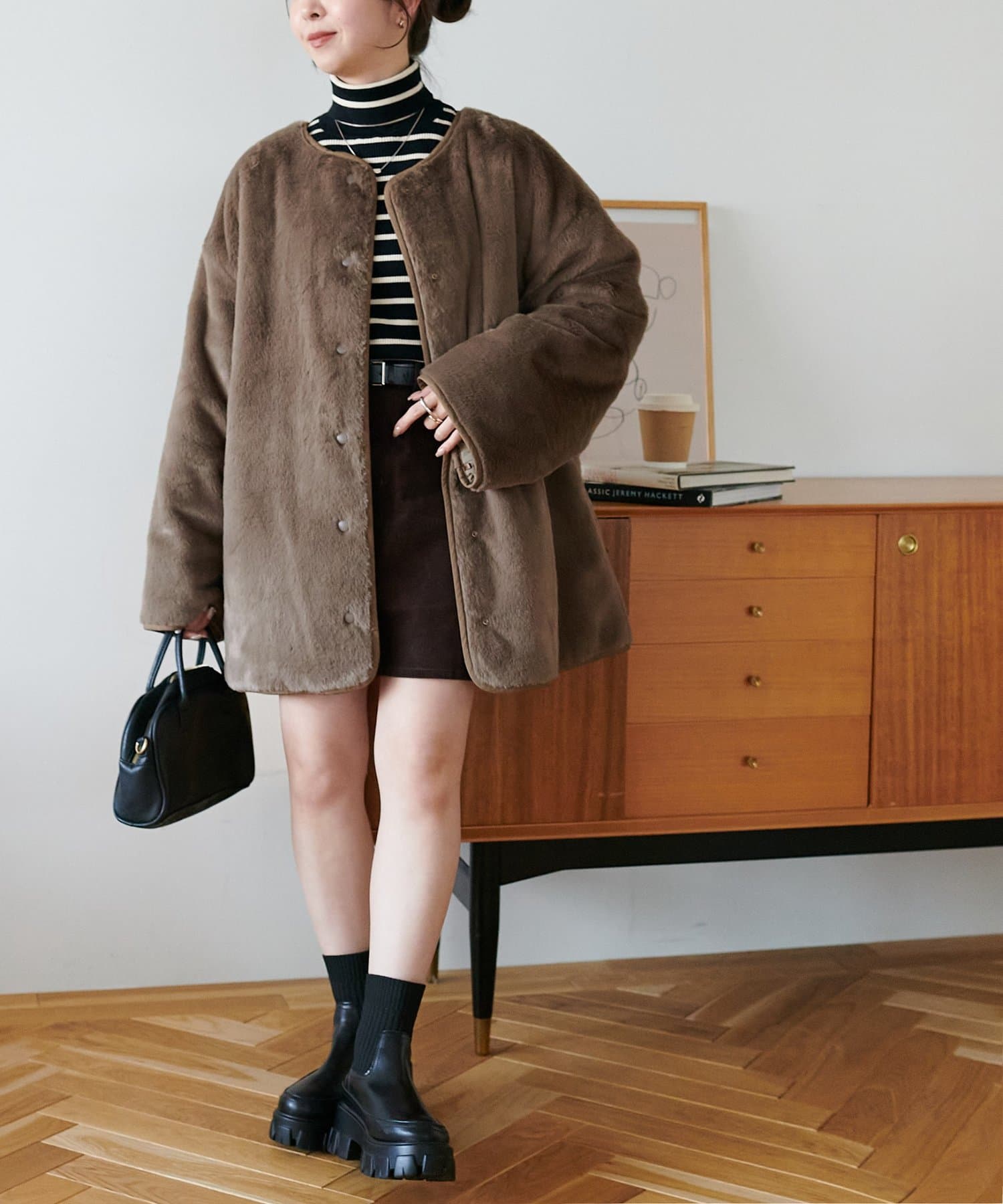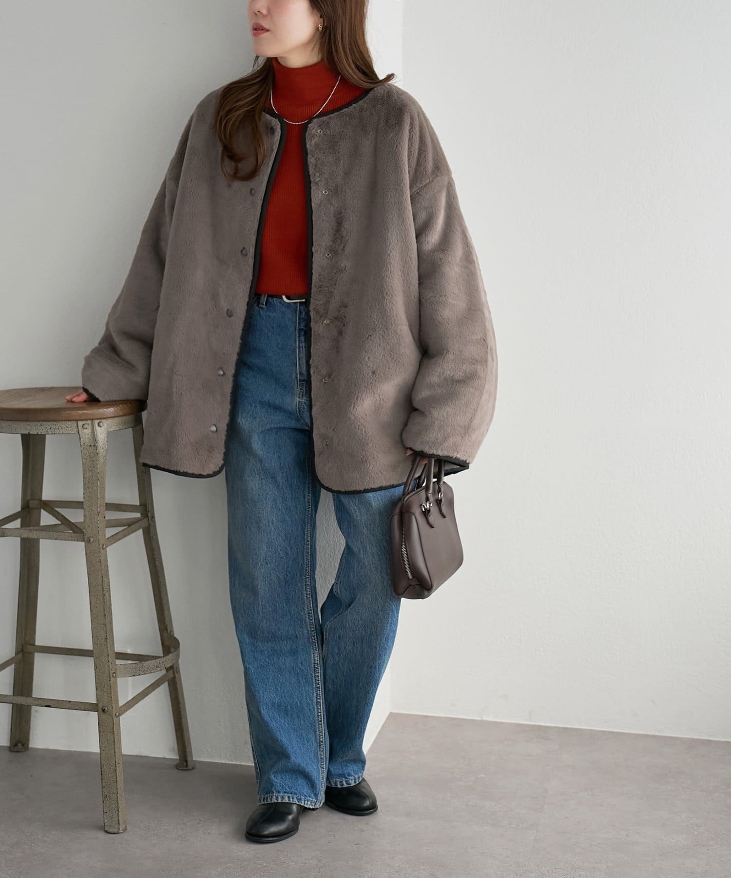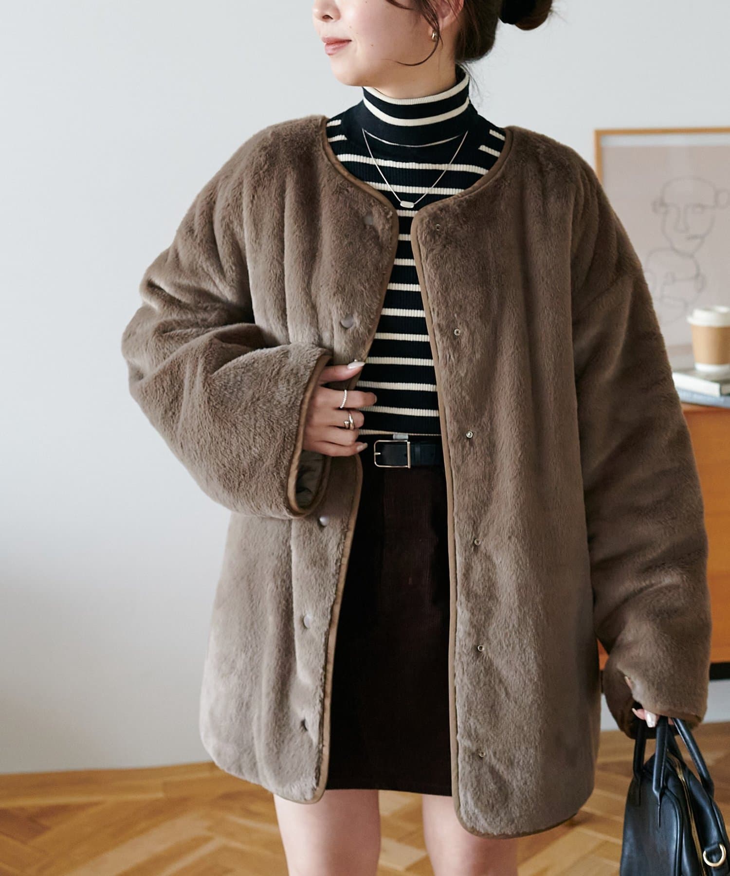 ・ファー面で着ると柔らかく女性らしい印象に仕上がります。