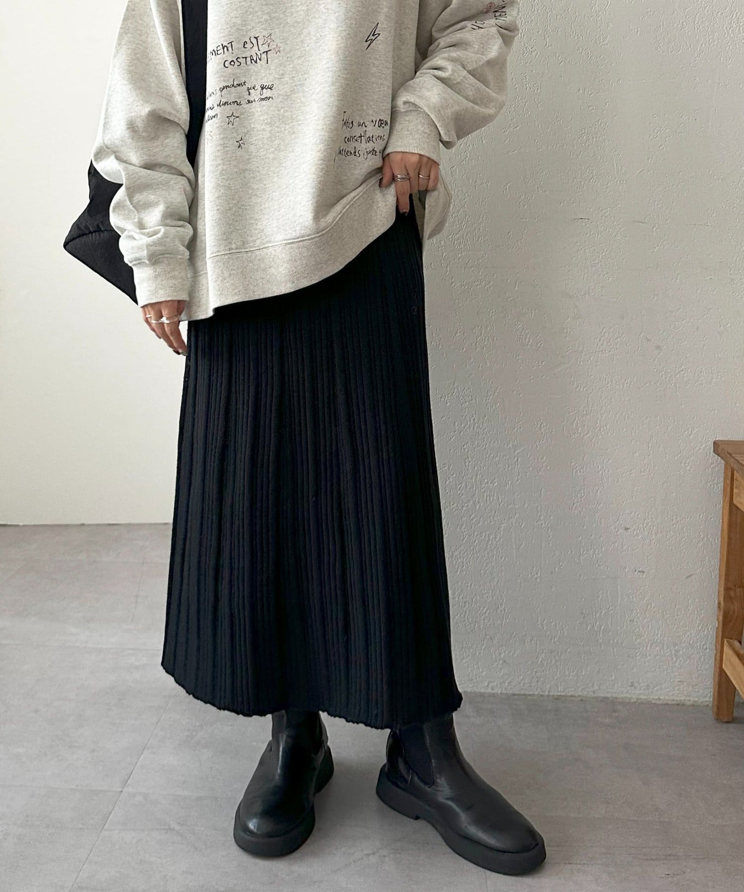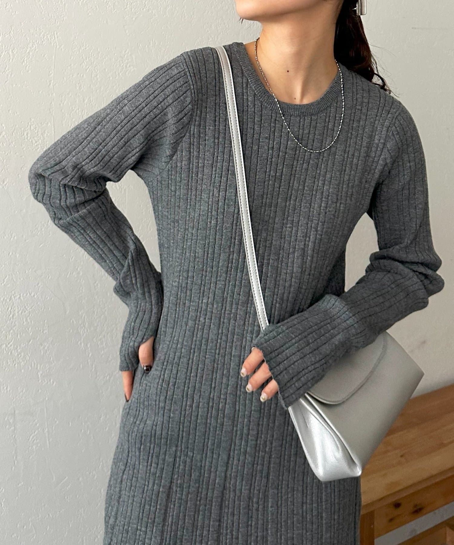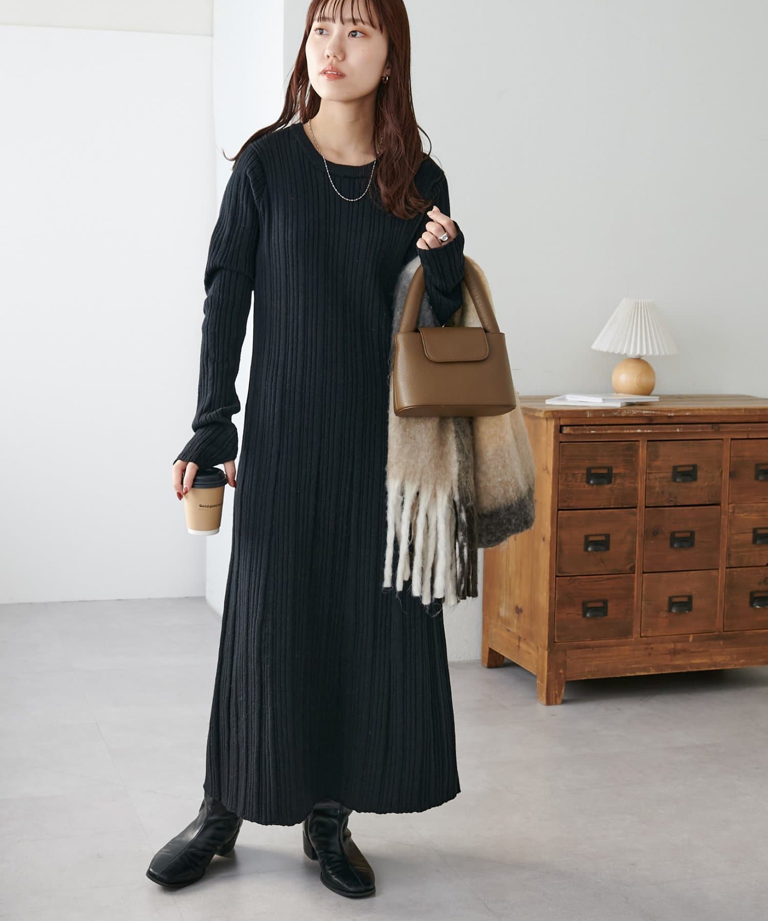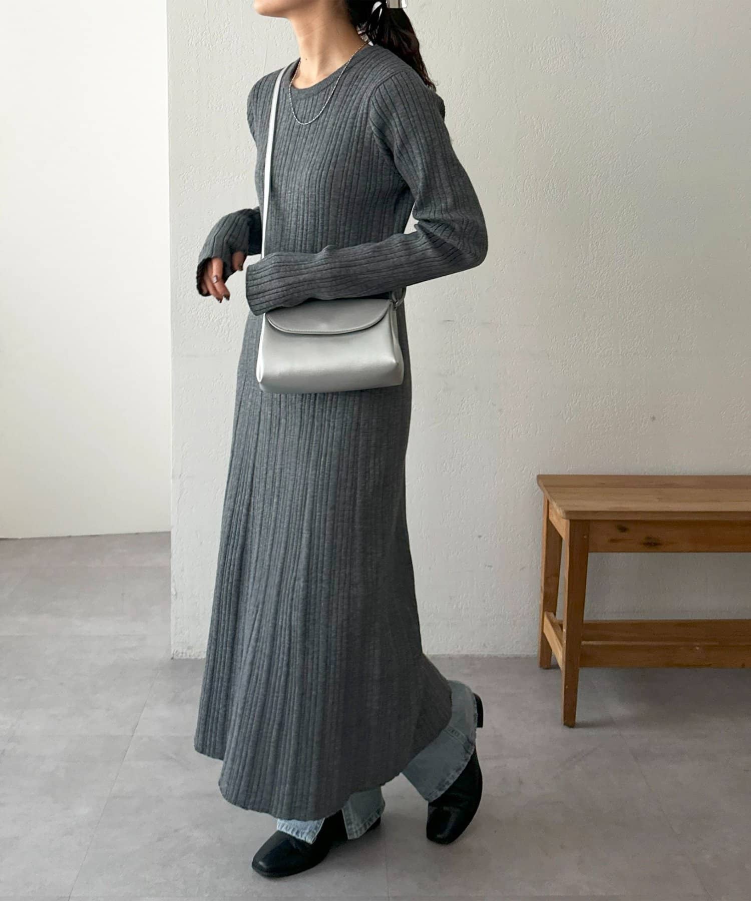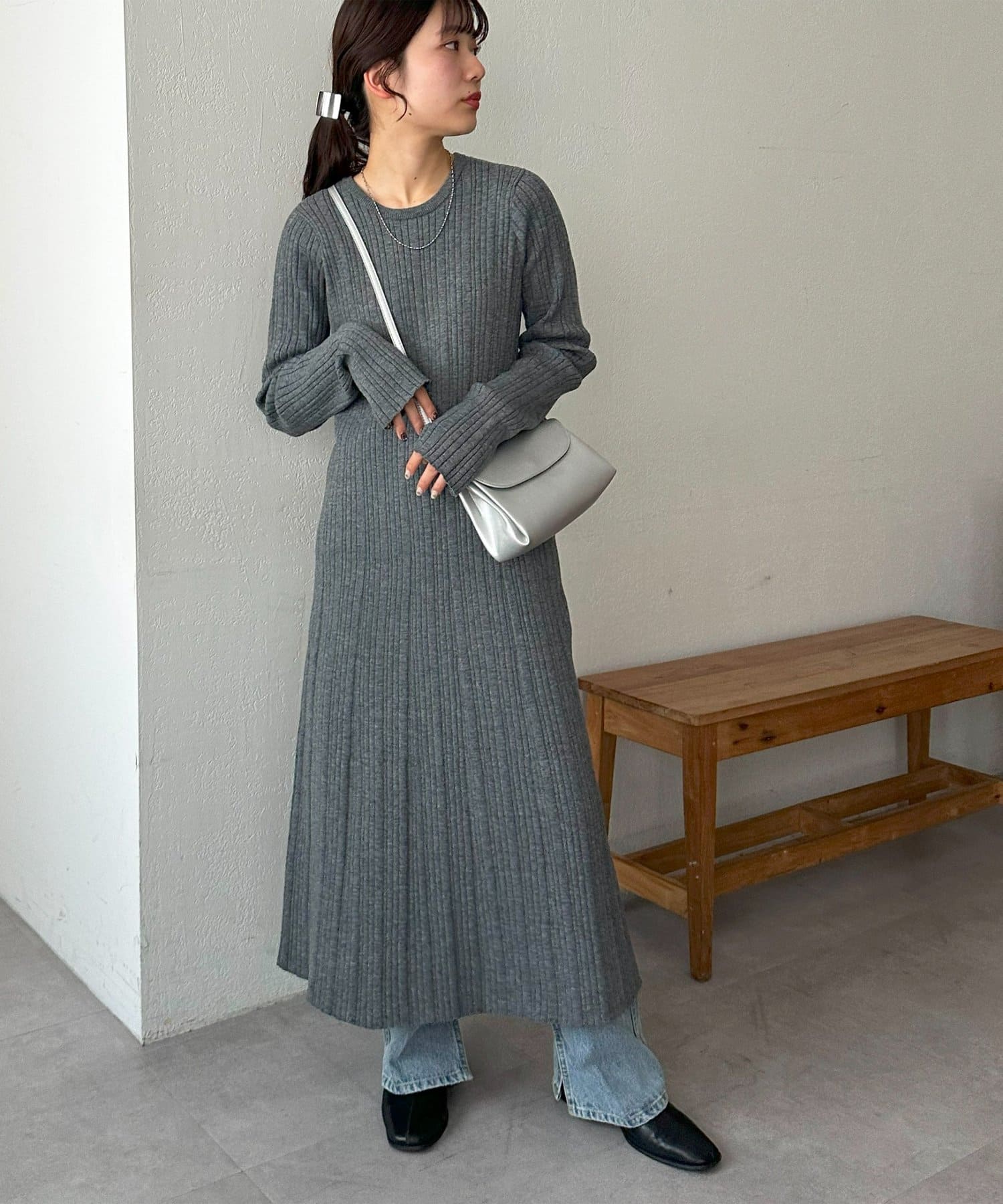 フレアシルエットになっていることで、重たく見えがちなニットワンピースも軽やかな印象になり着られている感なく、着こなせるアイテムです!