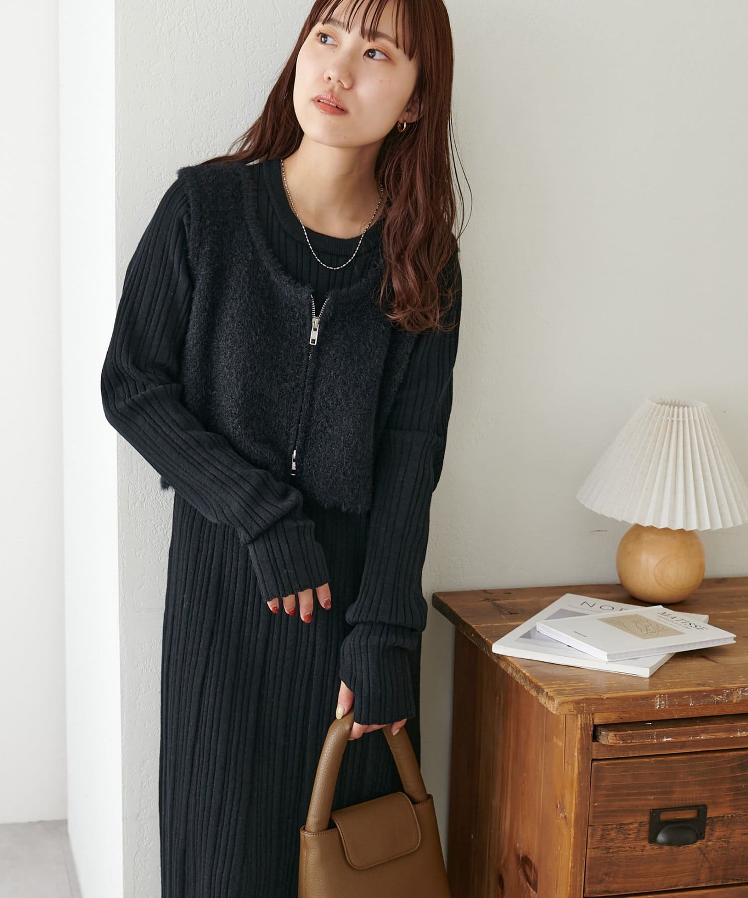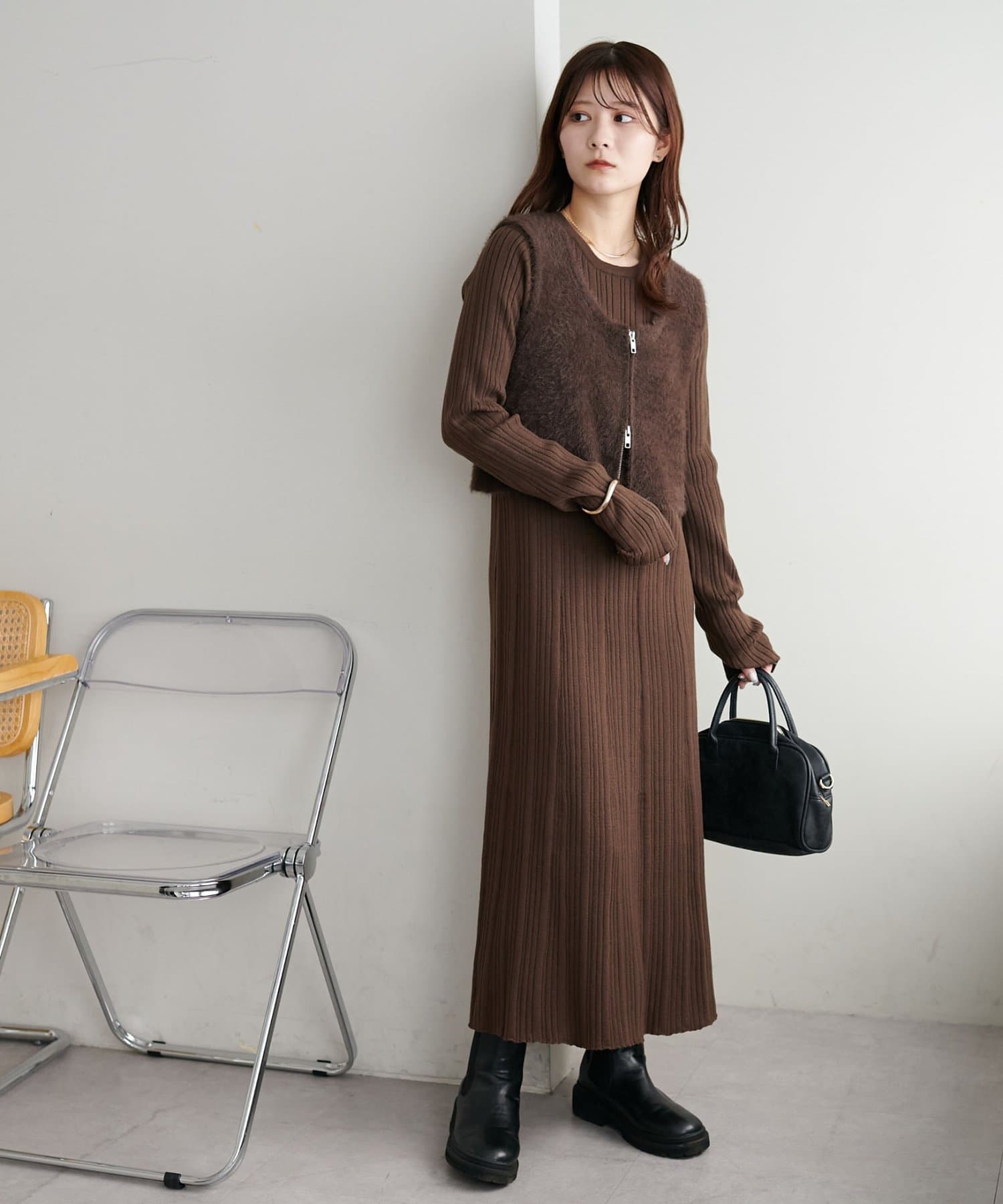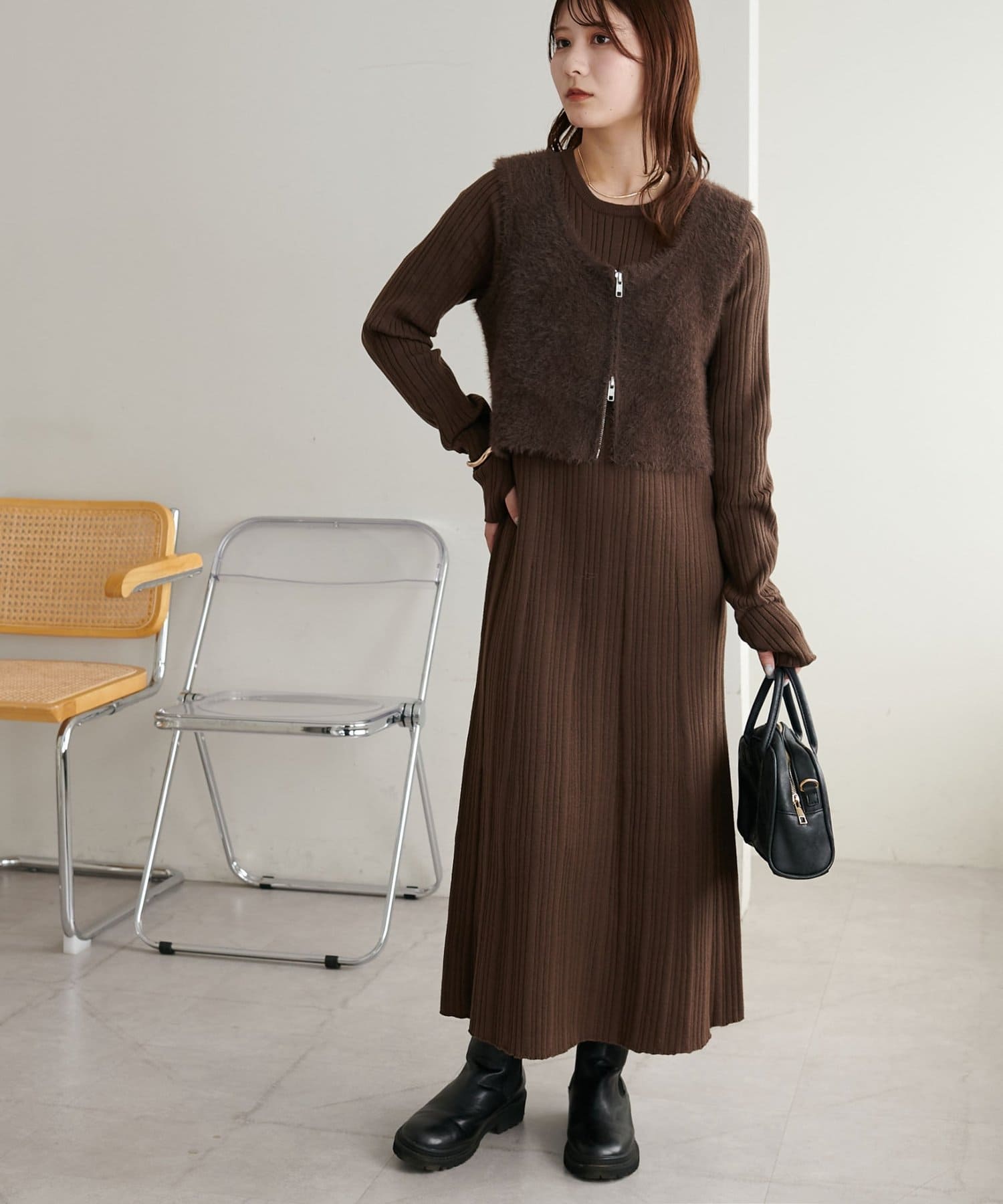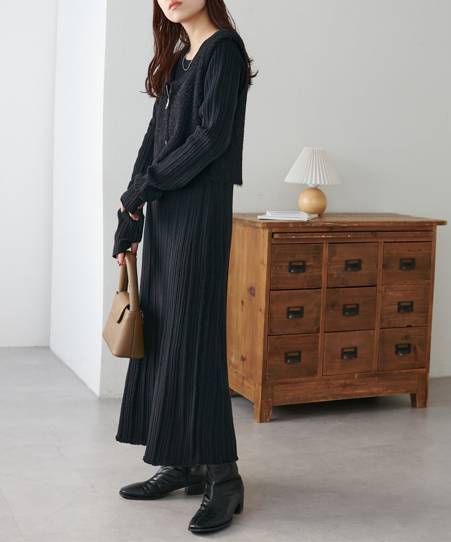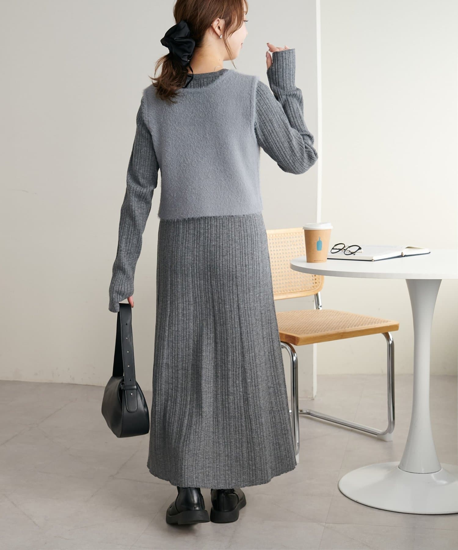 【セットアイテム】ベスト付ランダムリブニットワンピース《WEB限定》