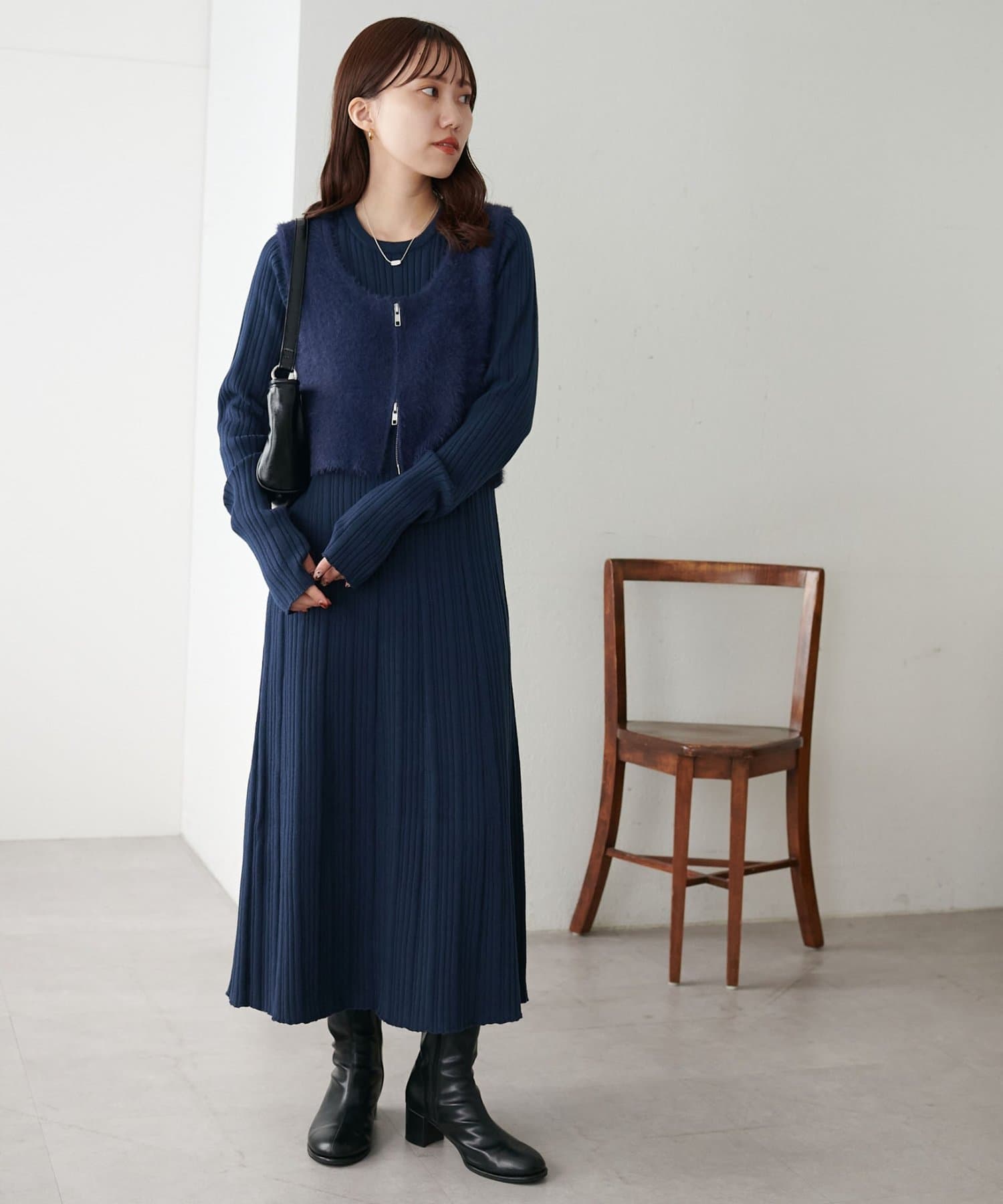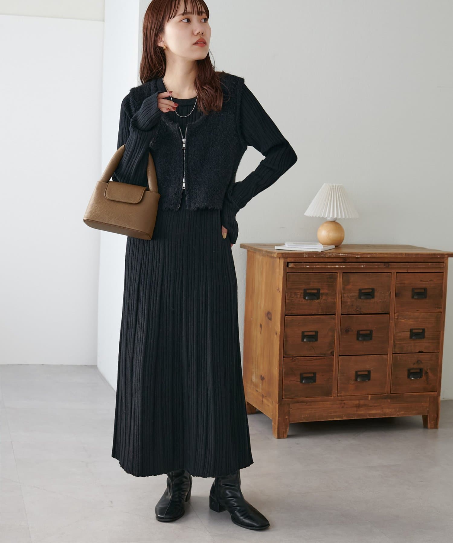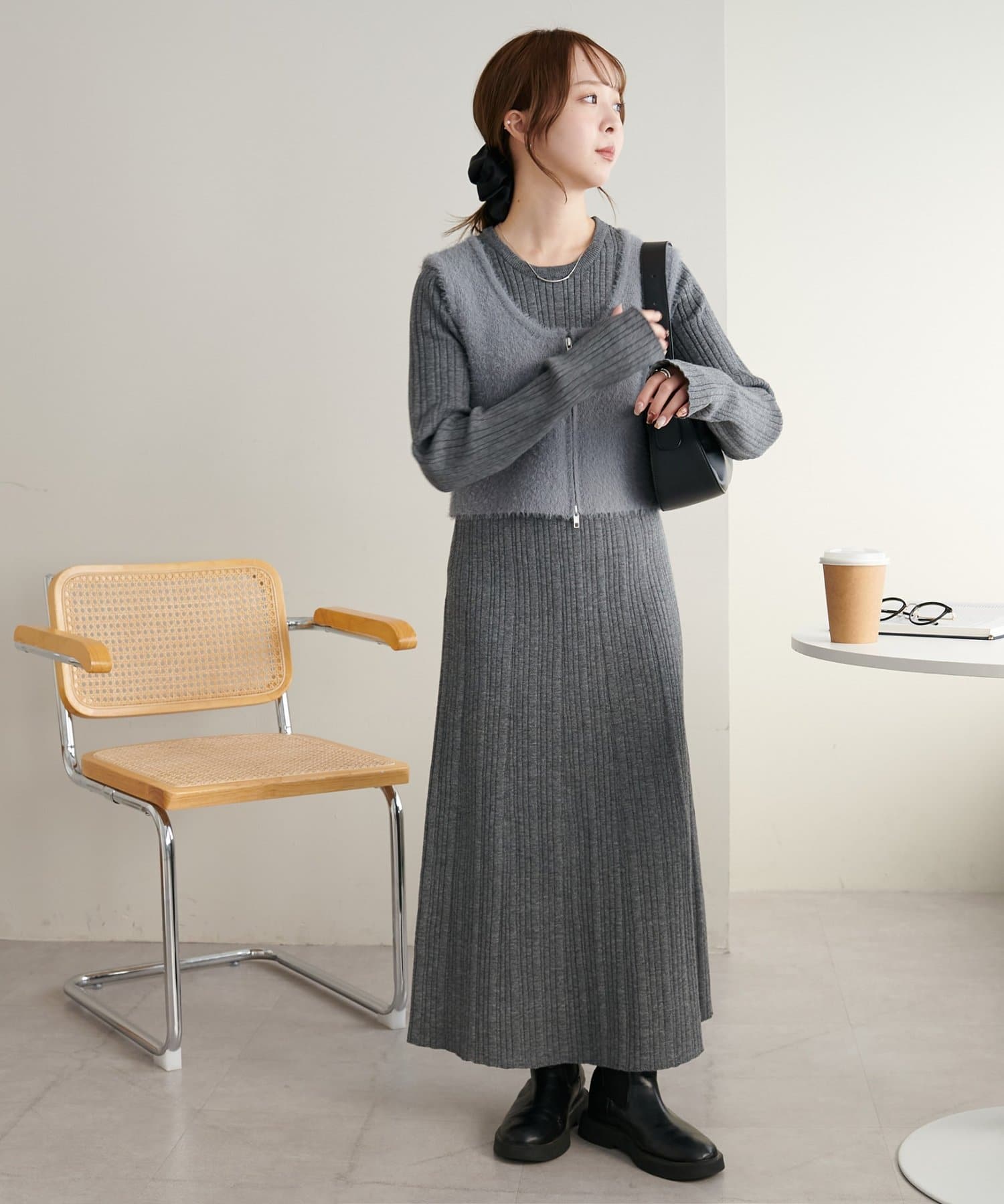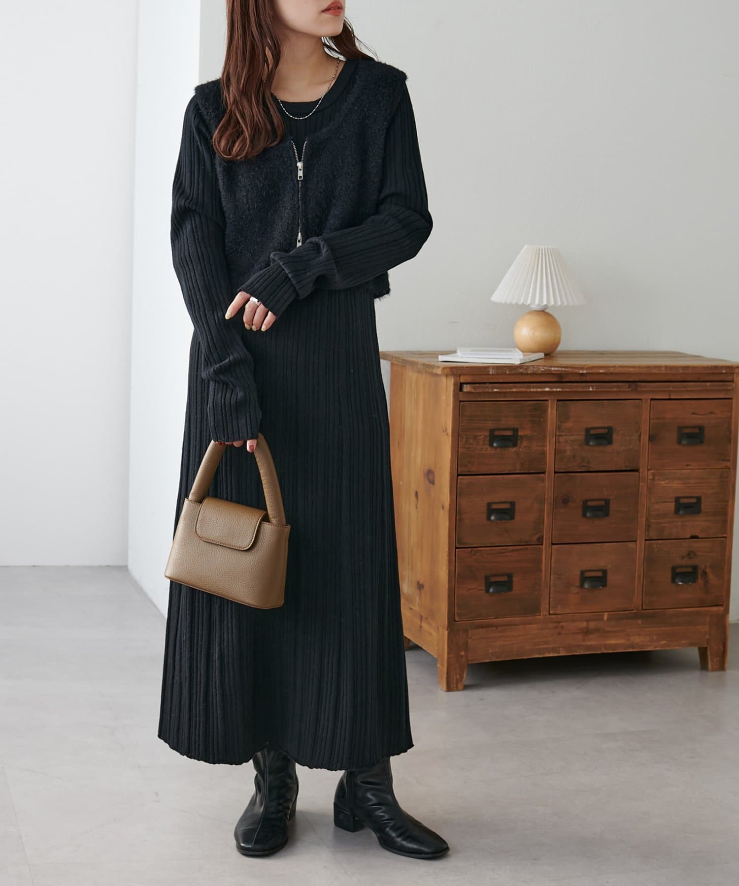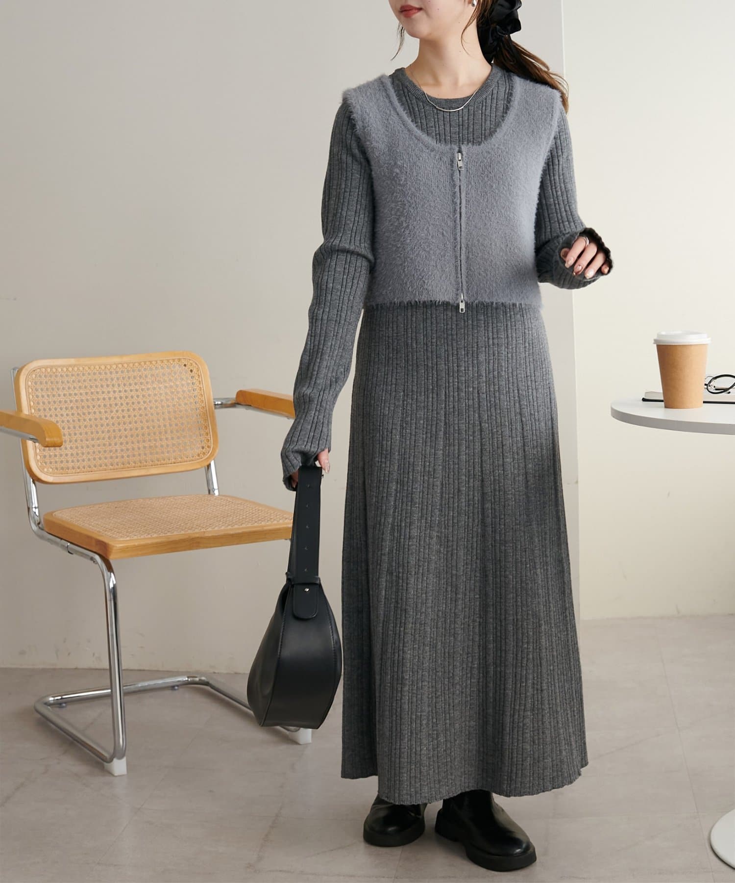 【セットアイテム】ベスト付ランダムリブニットワンピース《WEB限定》