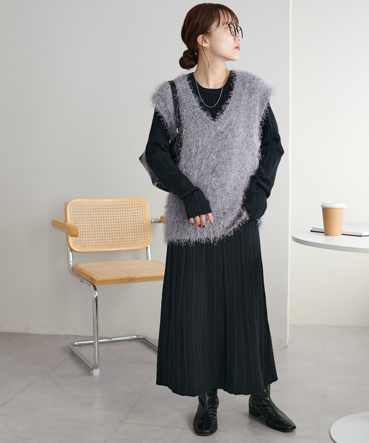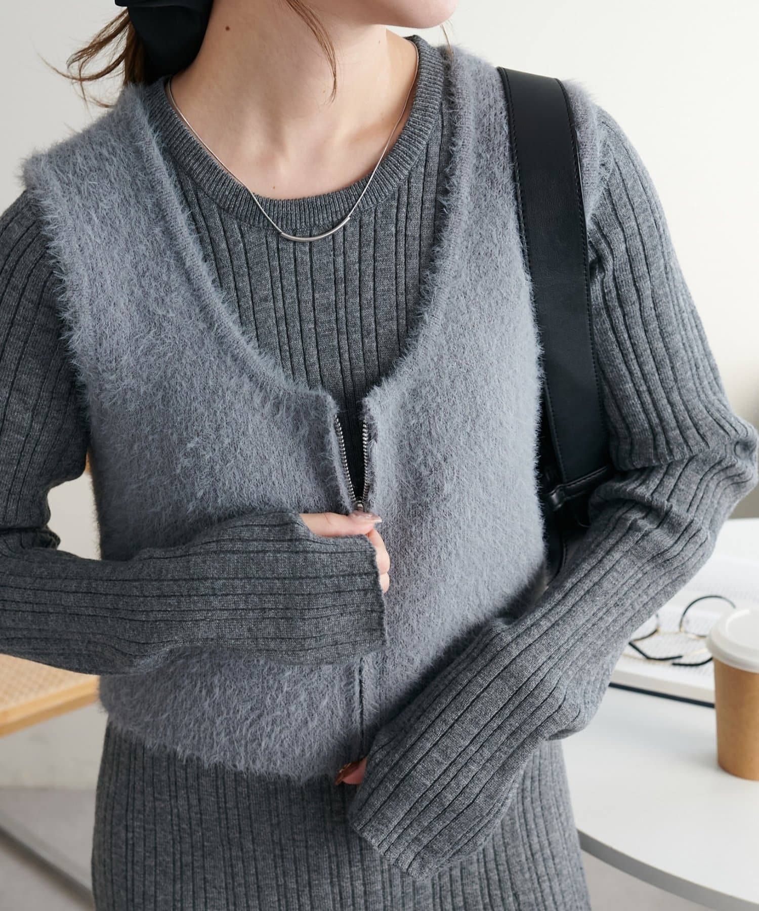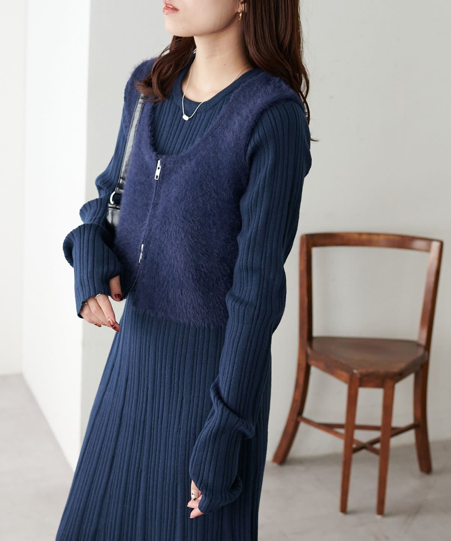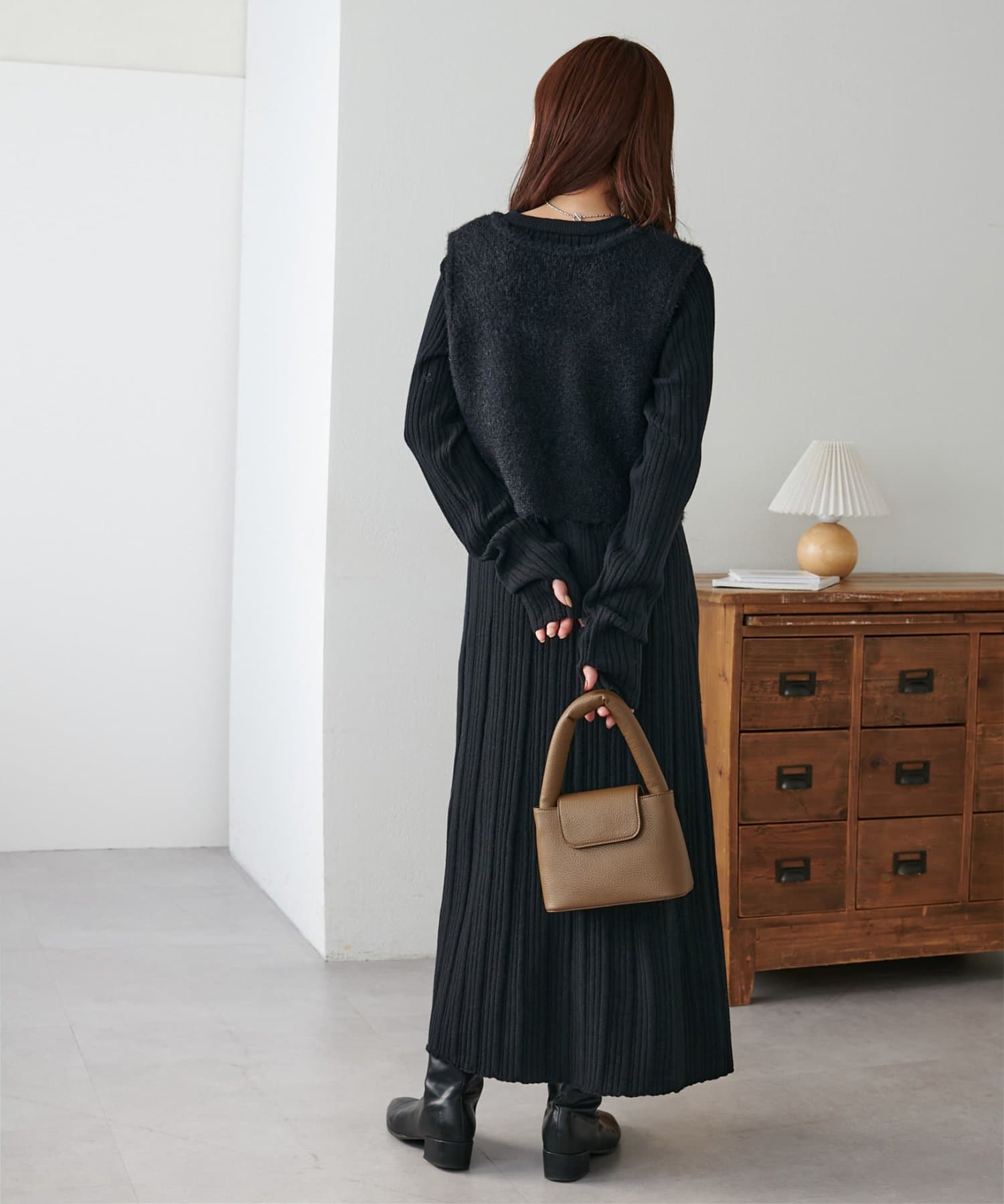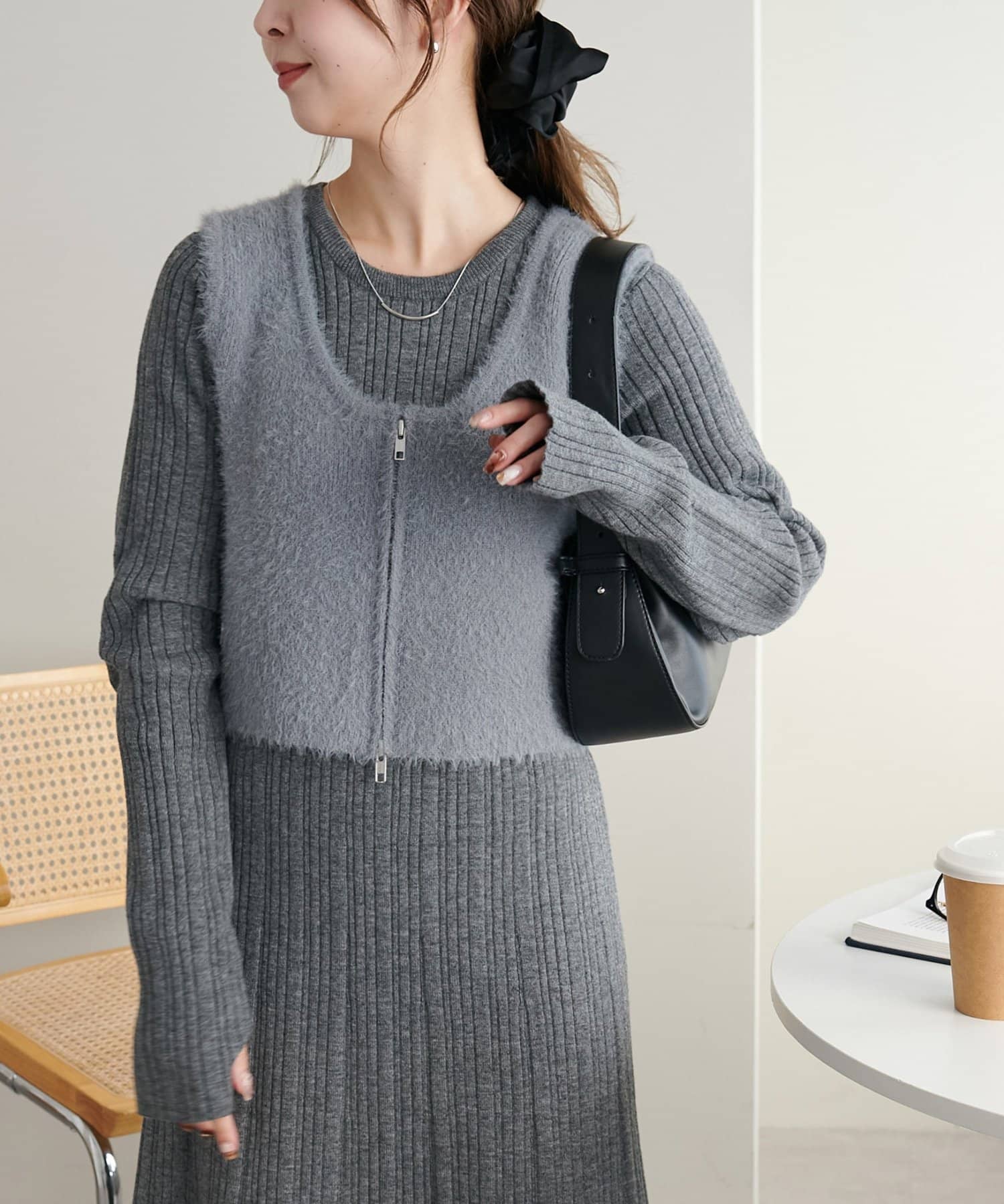 【セットアイテム】ベスト付ランダムリブニットワンピース《WEB限定》