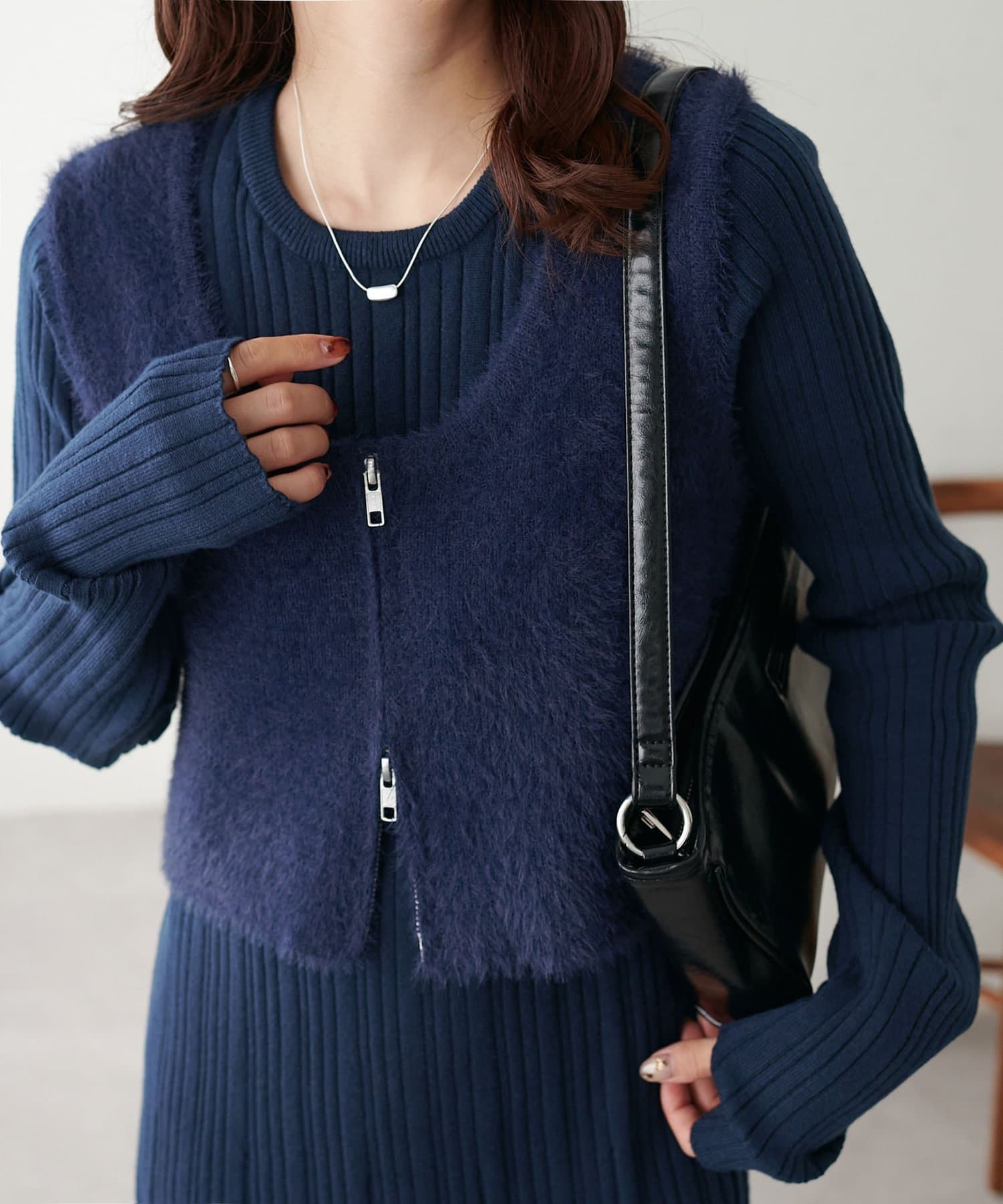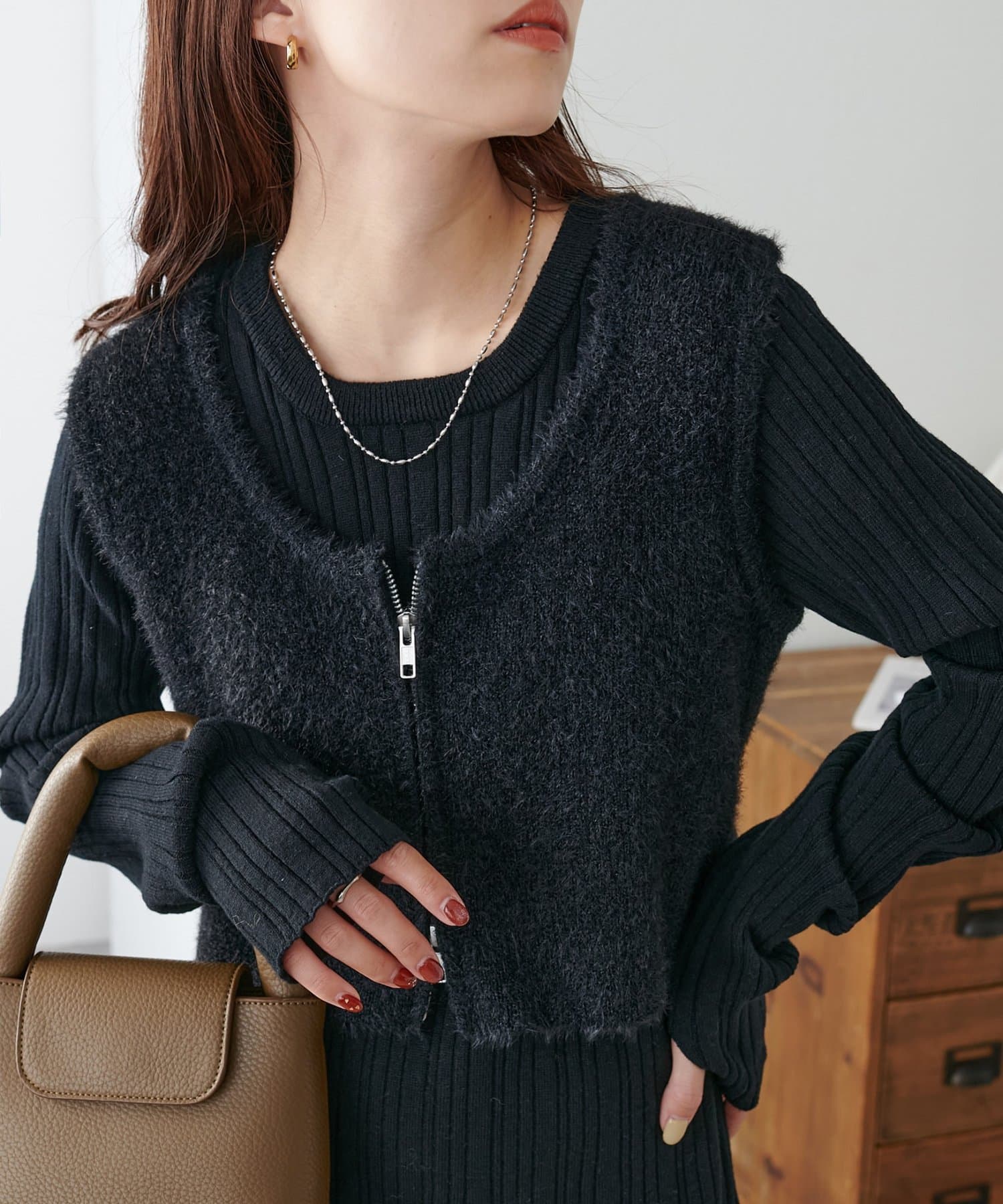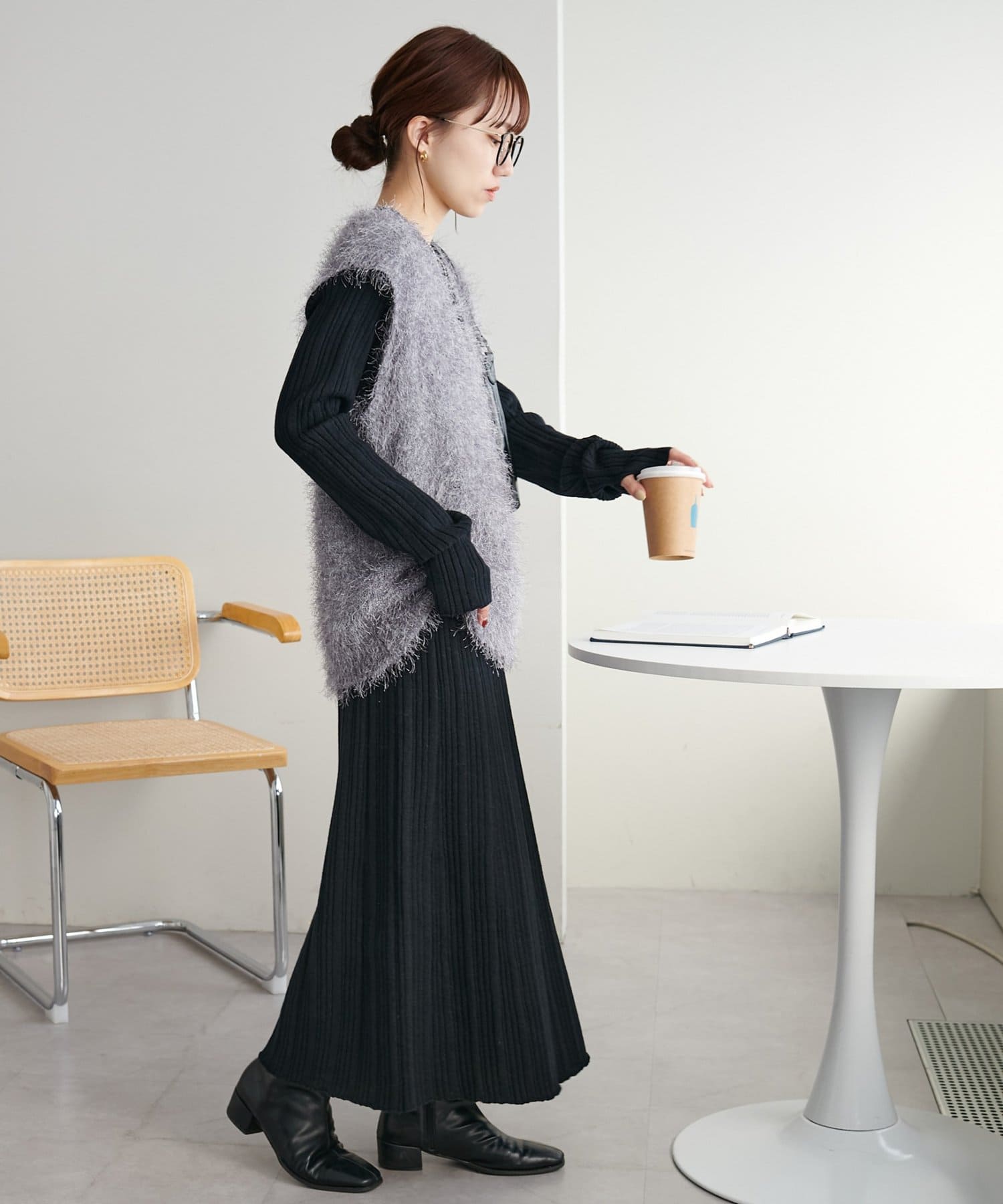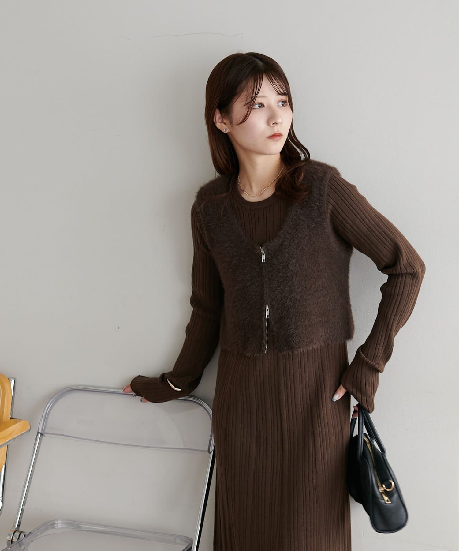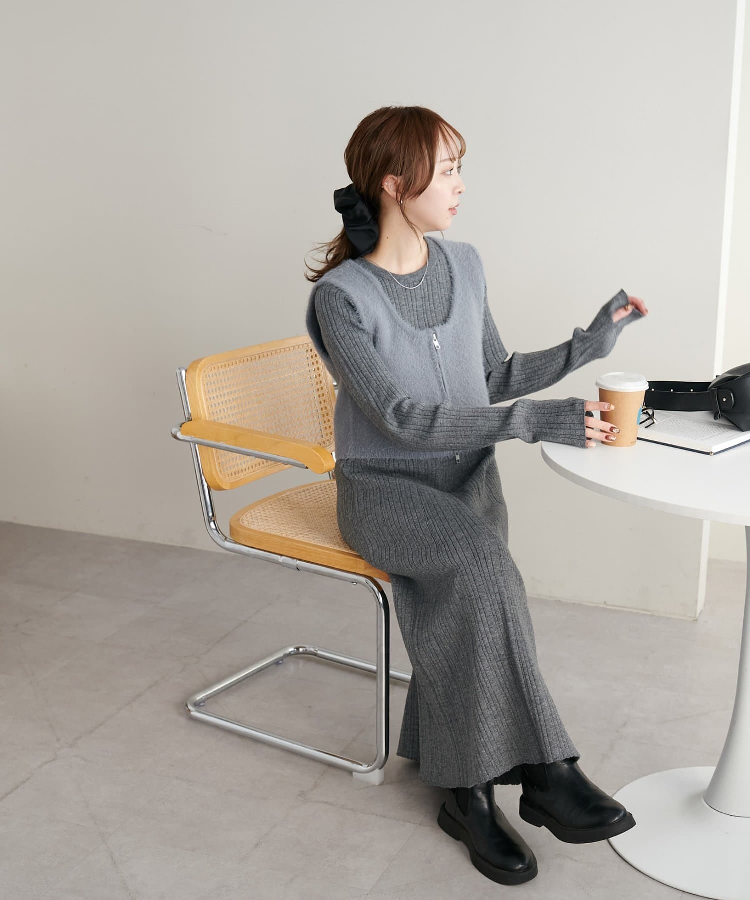 【セットアイテム】ベスト付ランダムリブニットワンピース《WEB限定》
