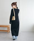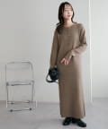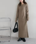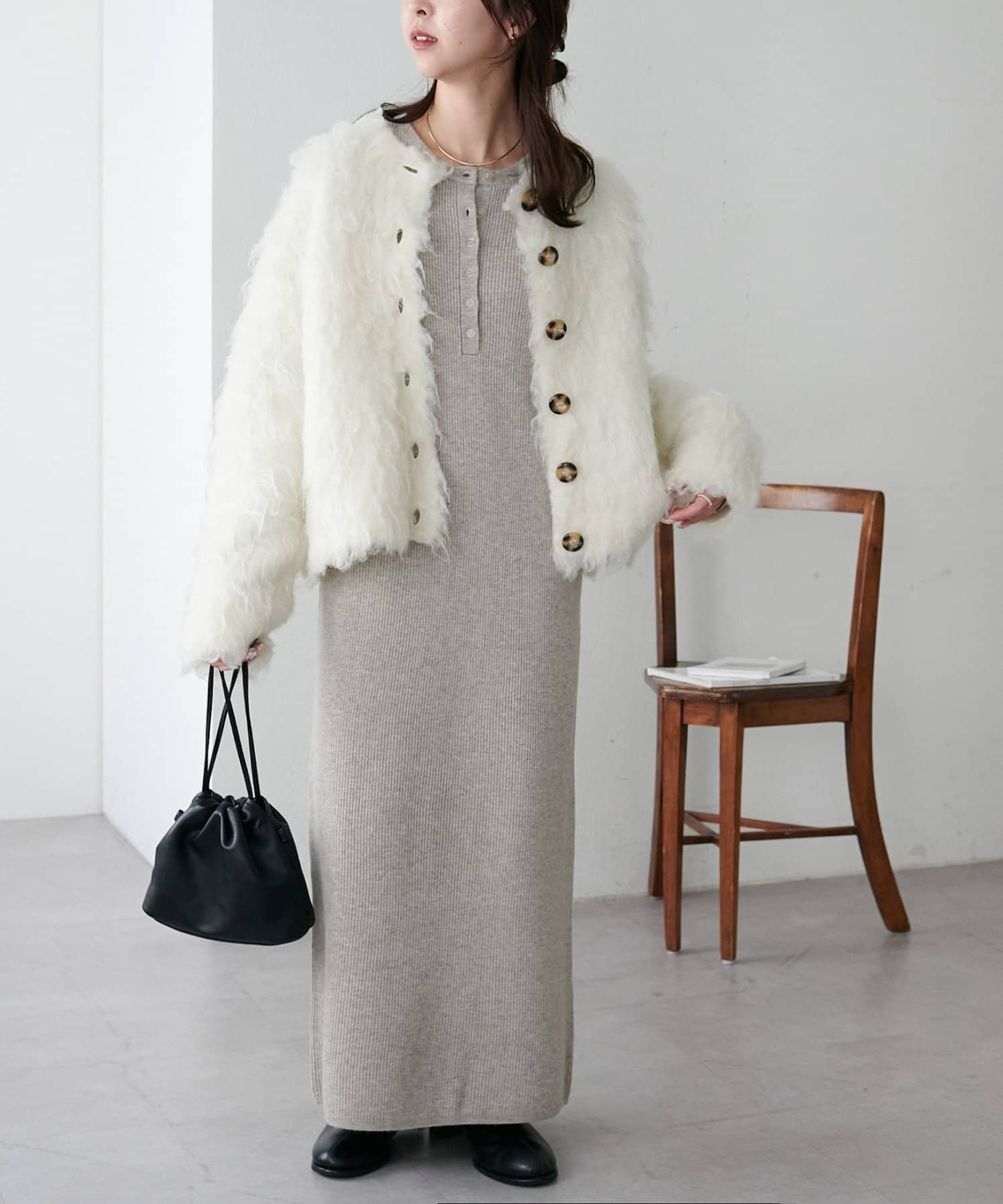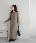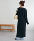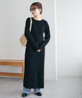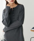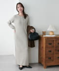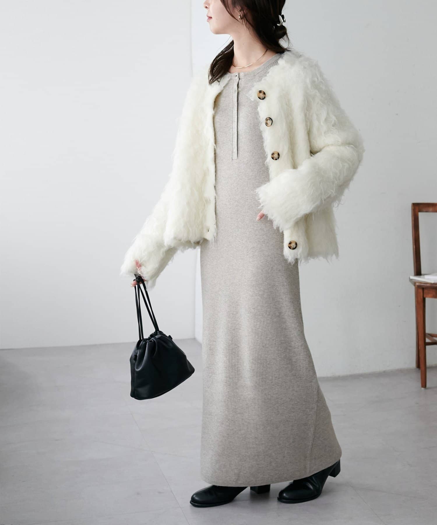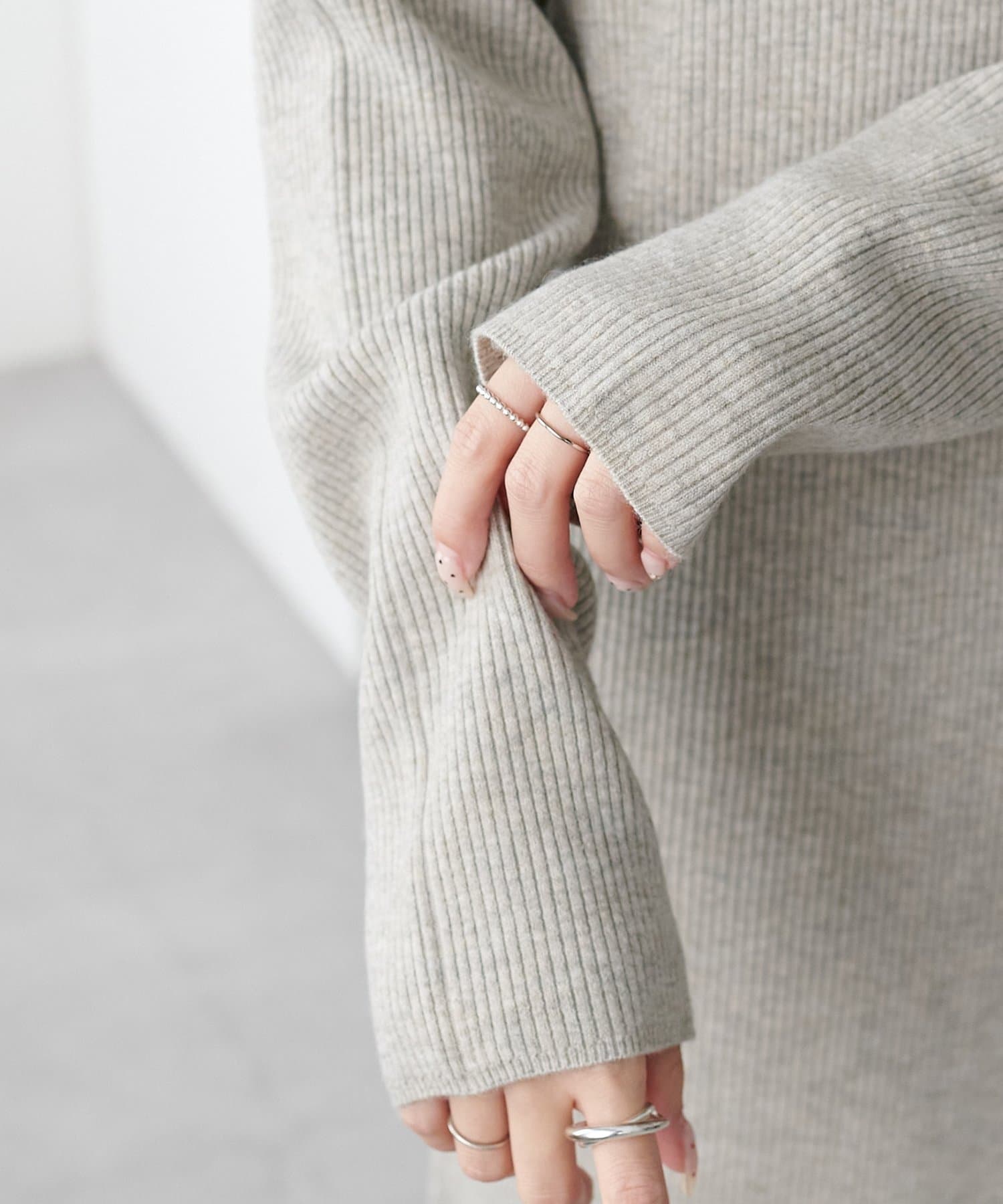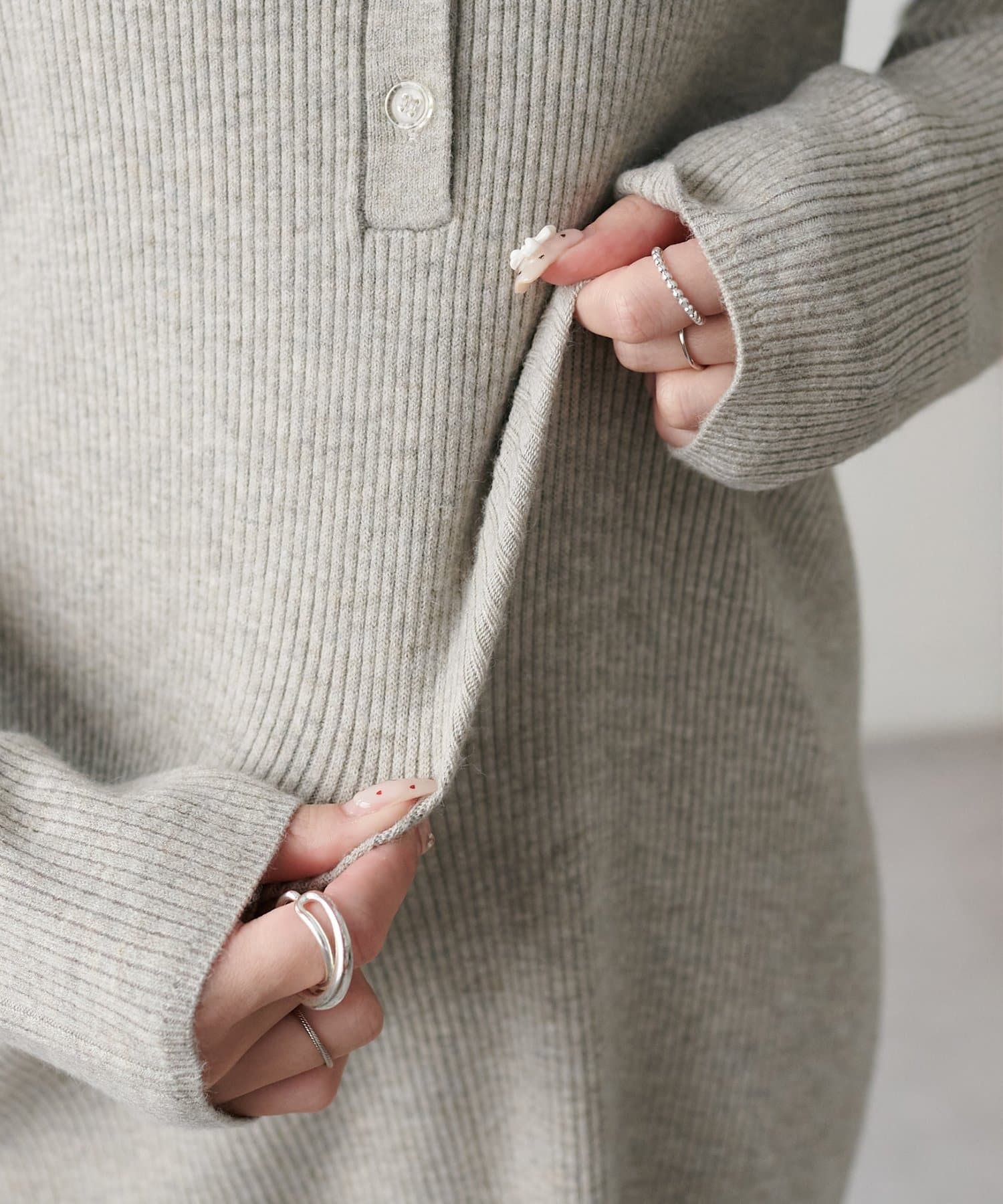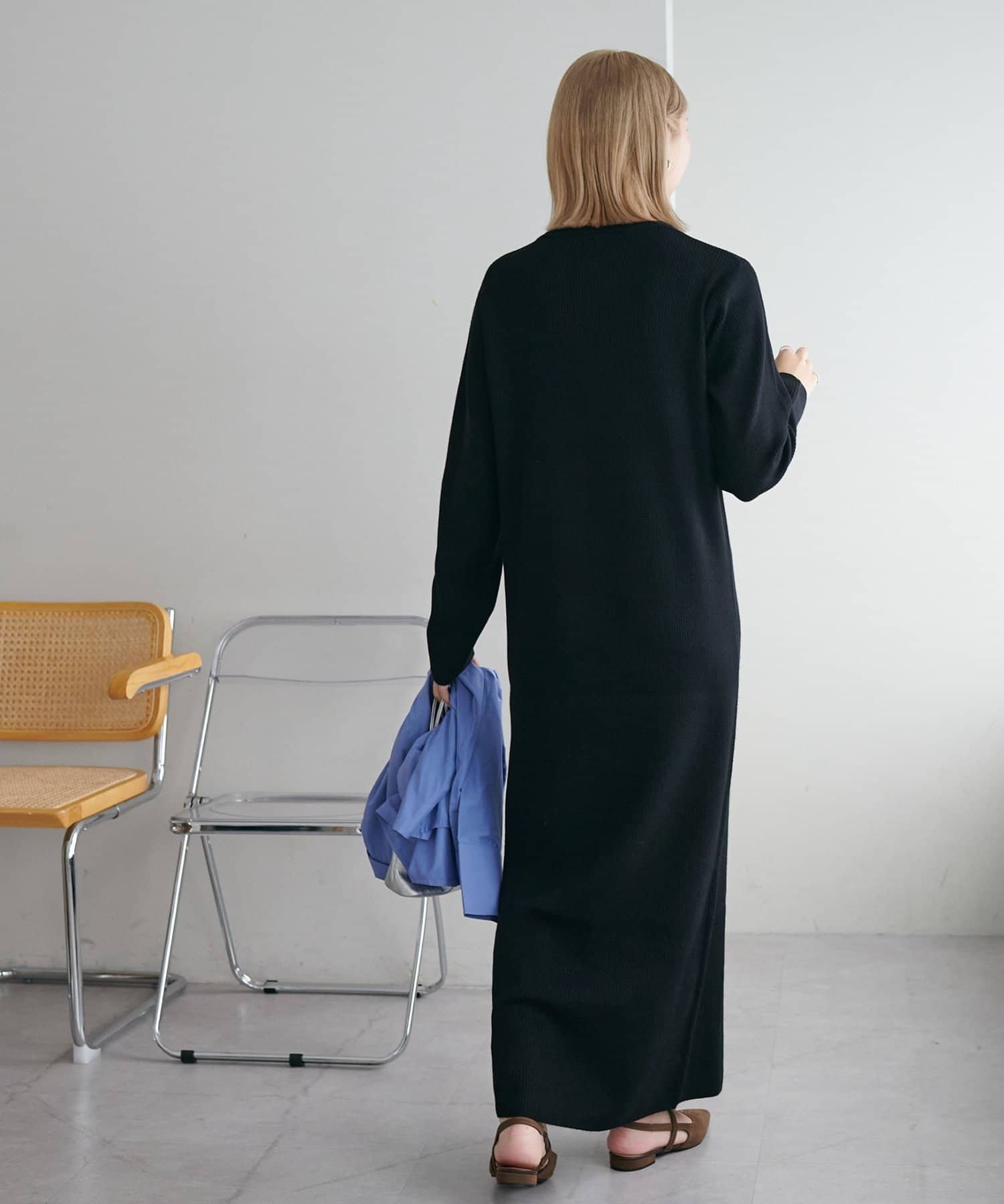 シンプルながらも女性らしさを引き立てるヘンリーネックデザインのリブニットワンピース。