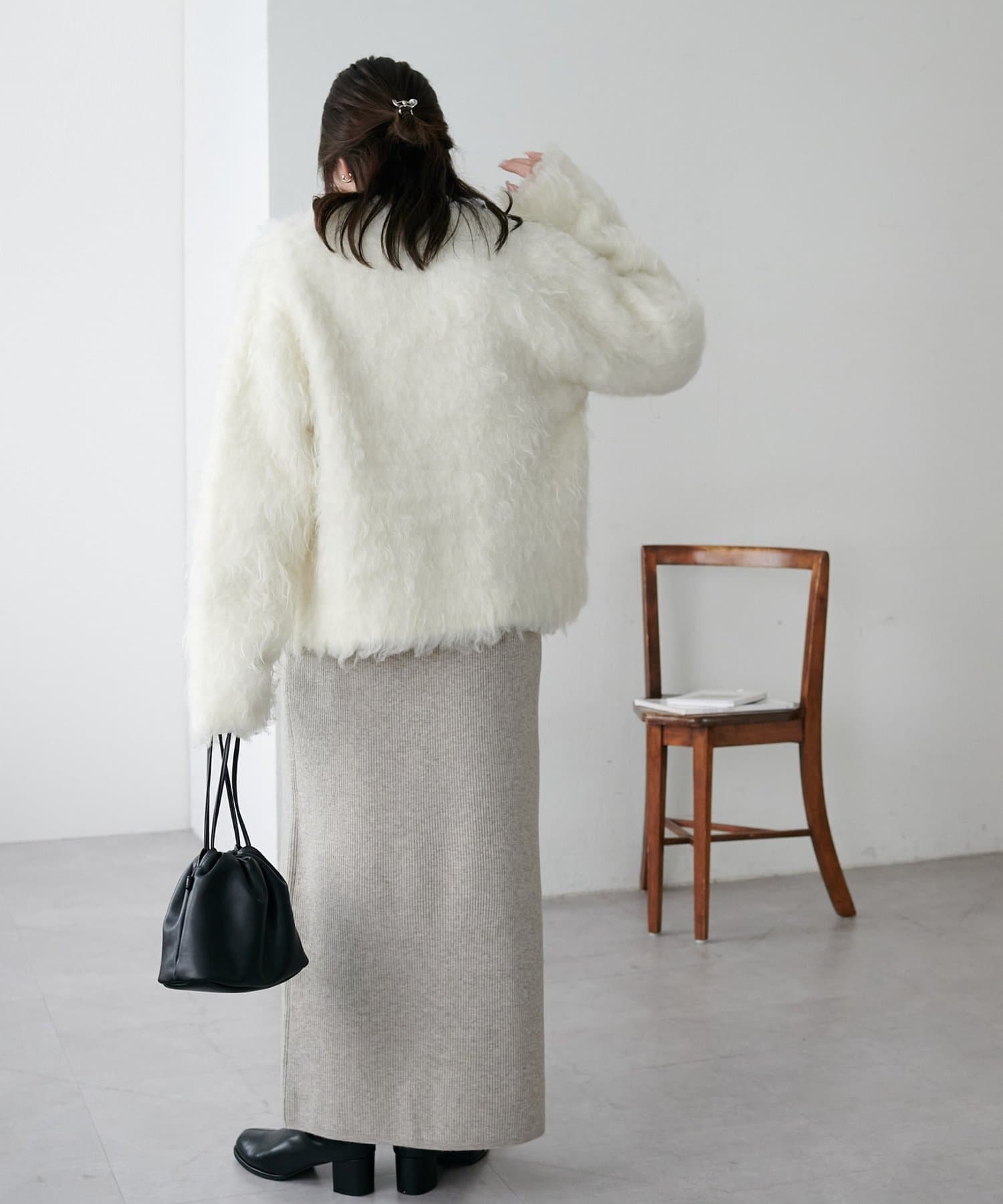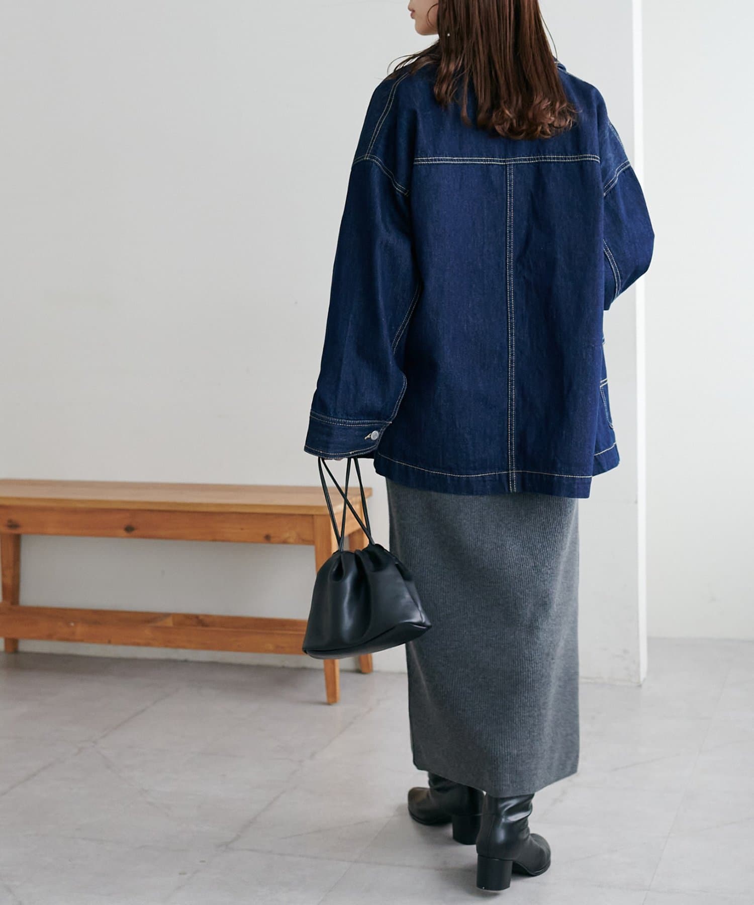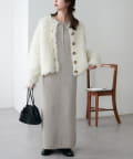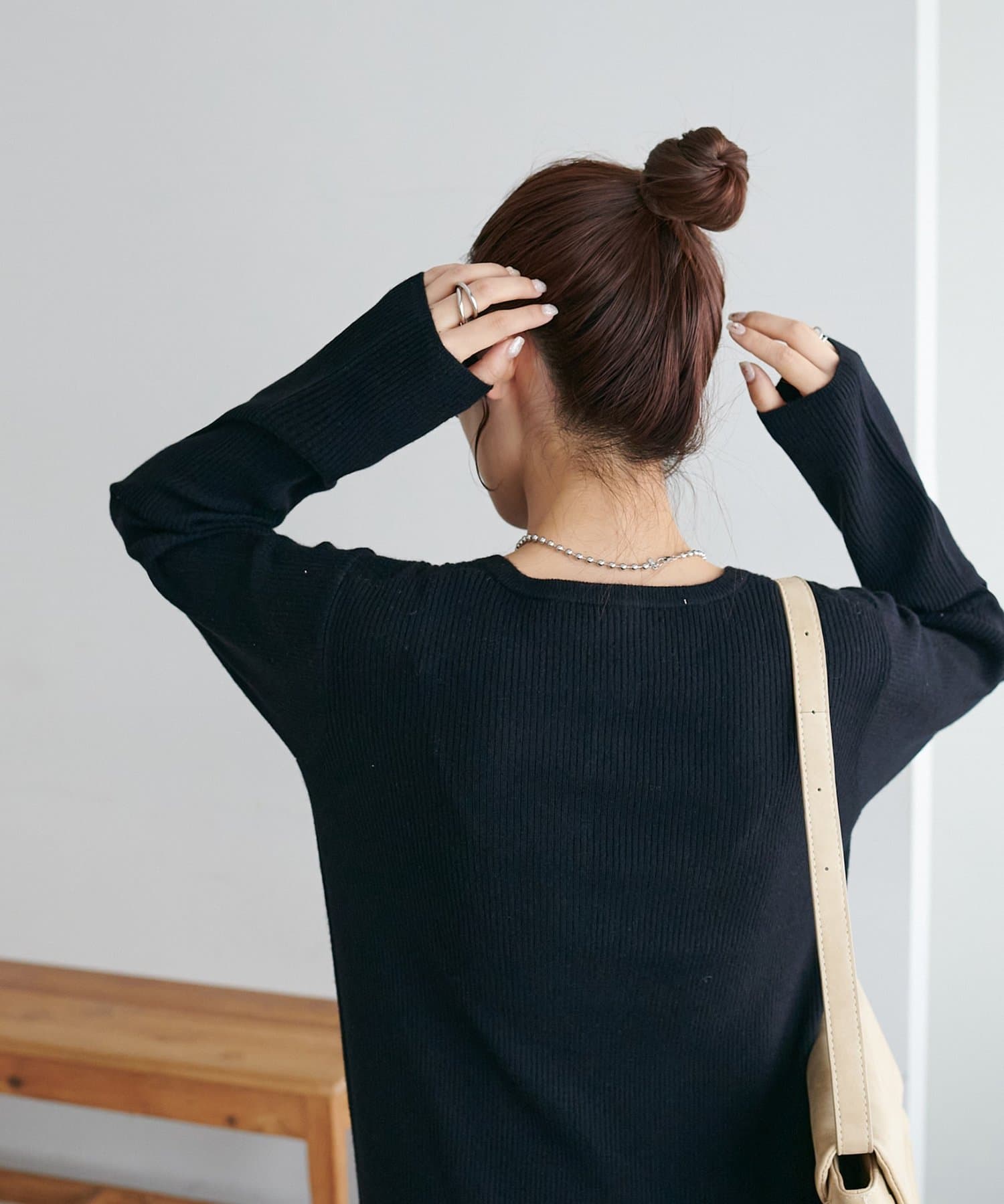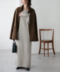 Iラインを強調したすっきりと見えるシルエットですが、凹凸感のあるリブ生地で体にフィットしすぎず着ていただけます◎