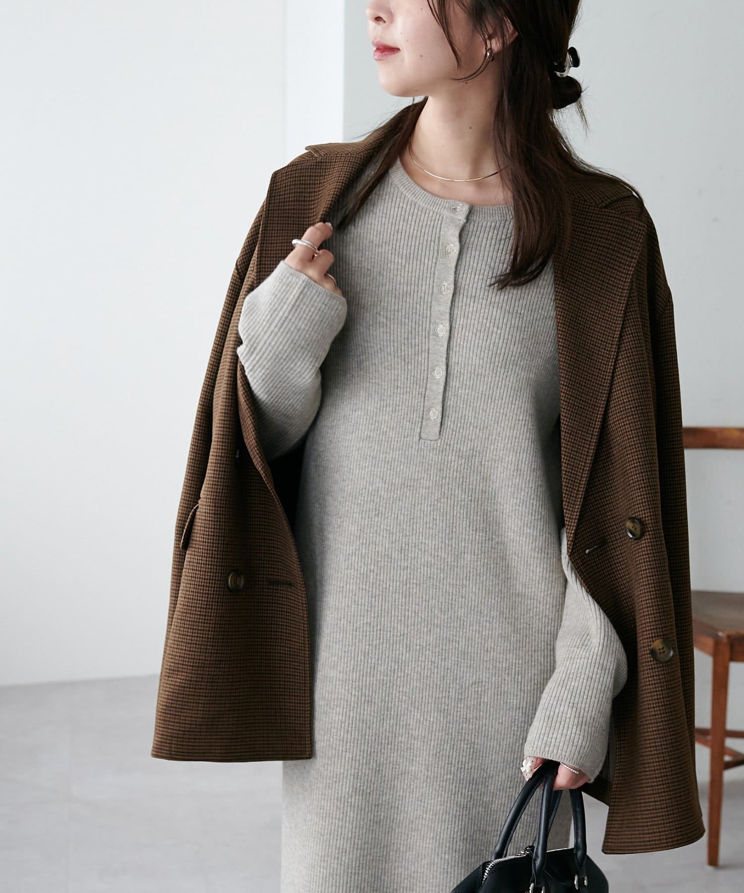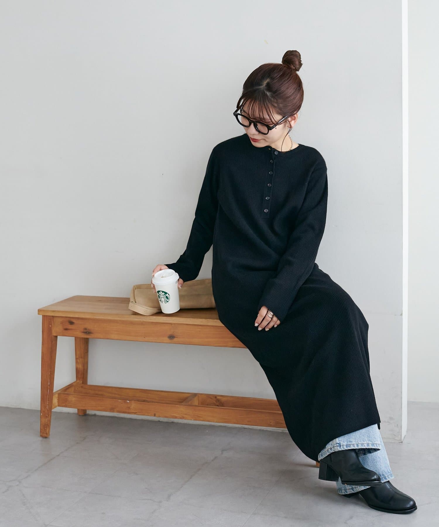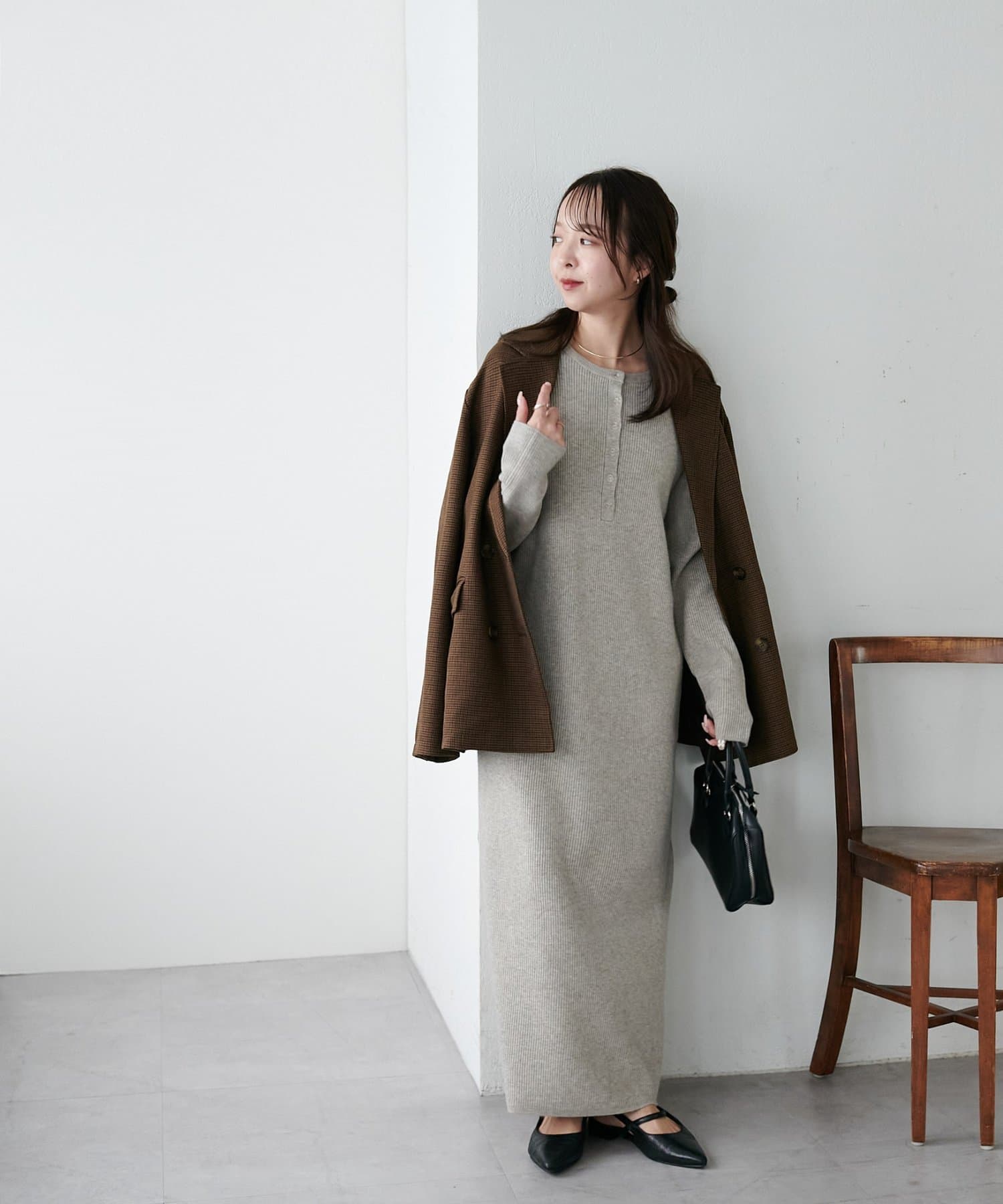 【高身長&低身長サイズあり】モチモチリブヘンリーワンピース《WEB限定カラーあり》