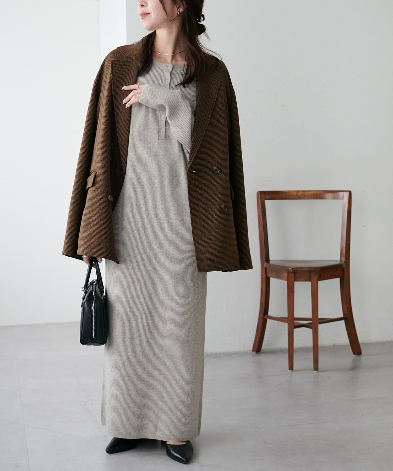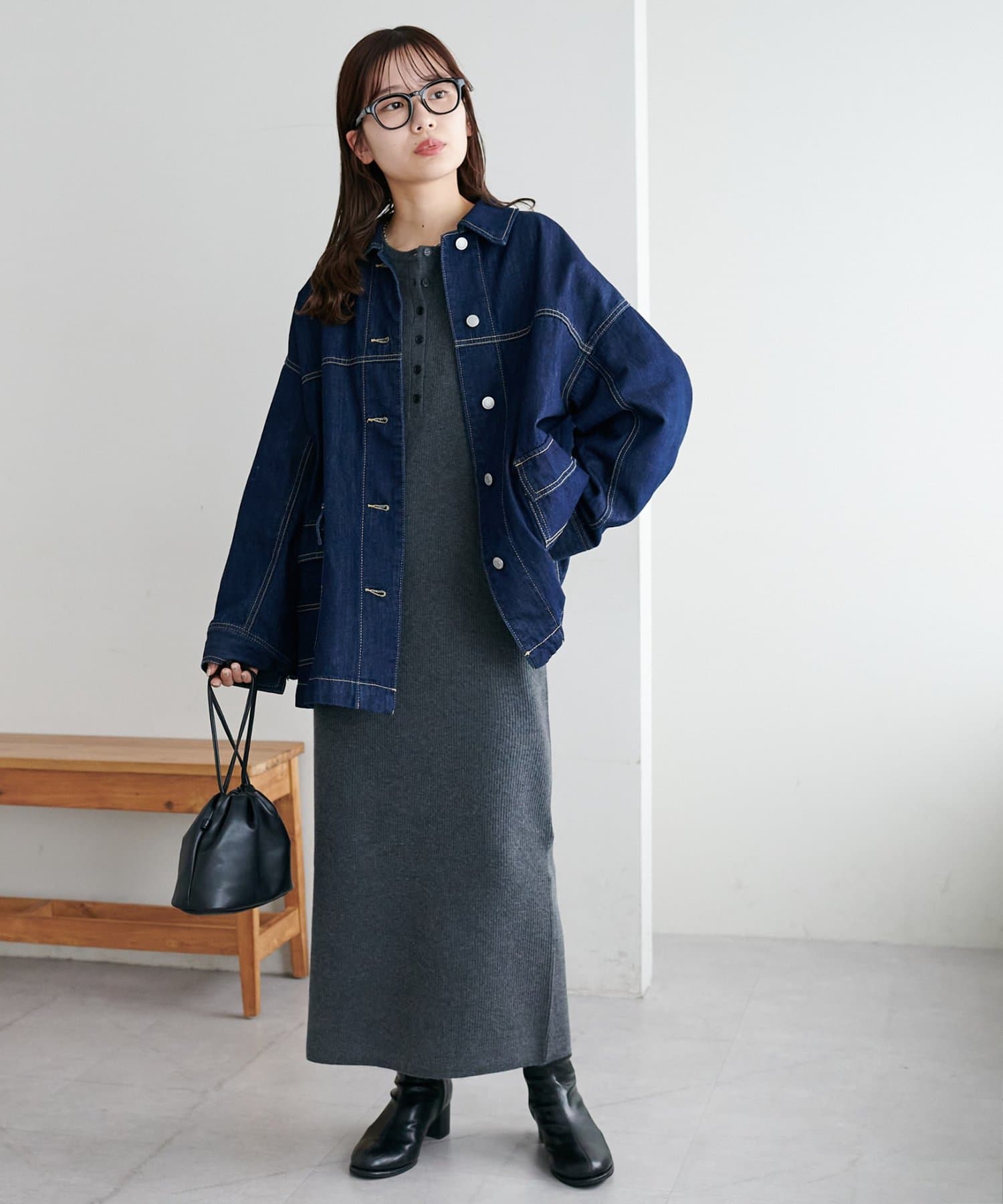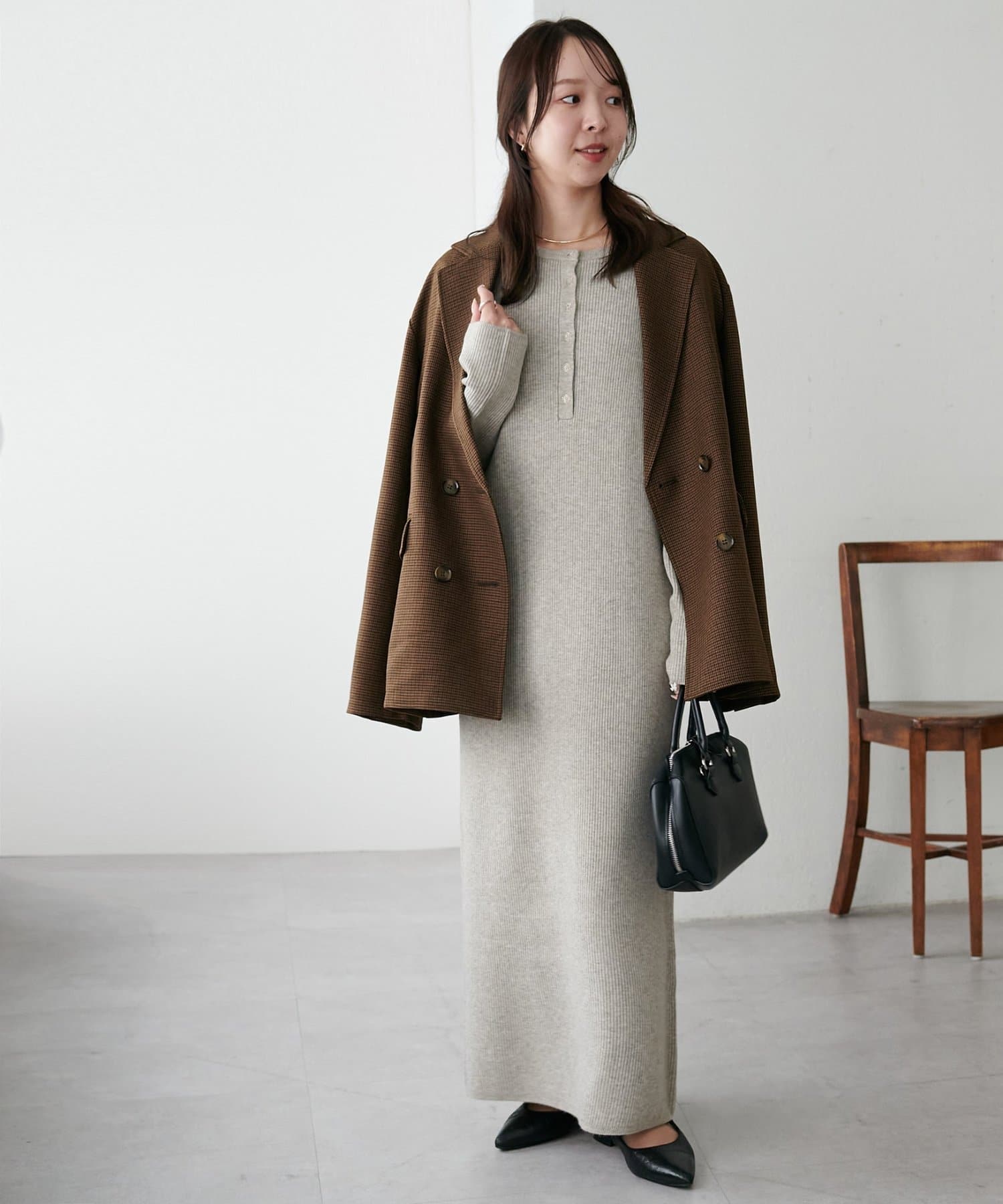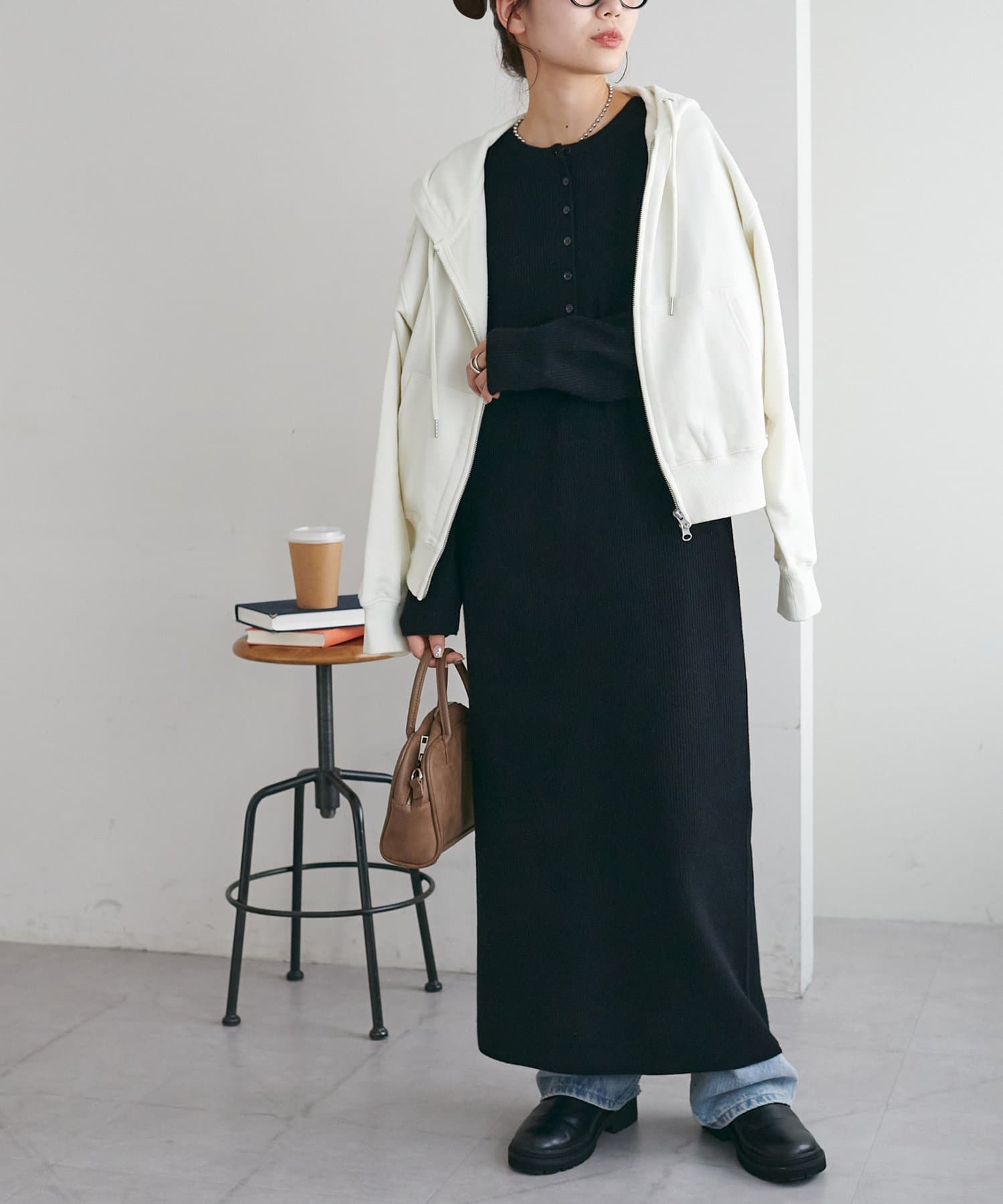【高身長&低身長サイズあり】モチモチリブヘンリーワンピース《WEB限定カラーあり》