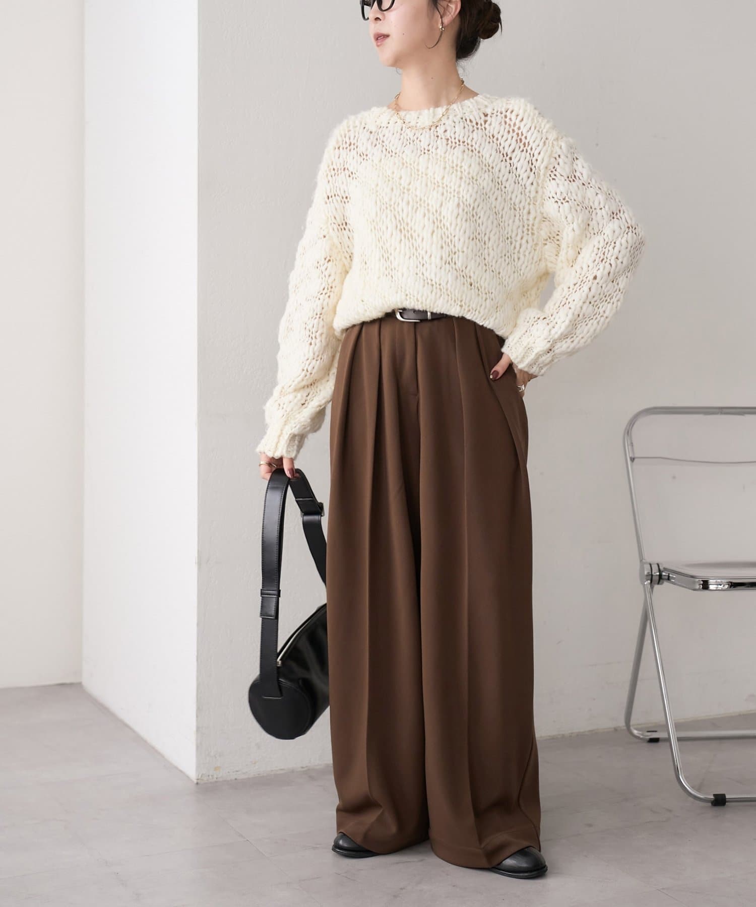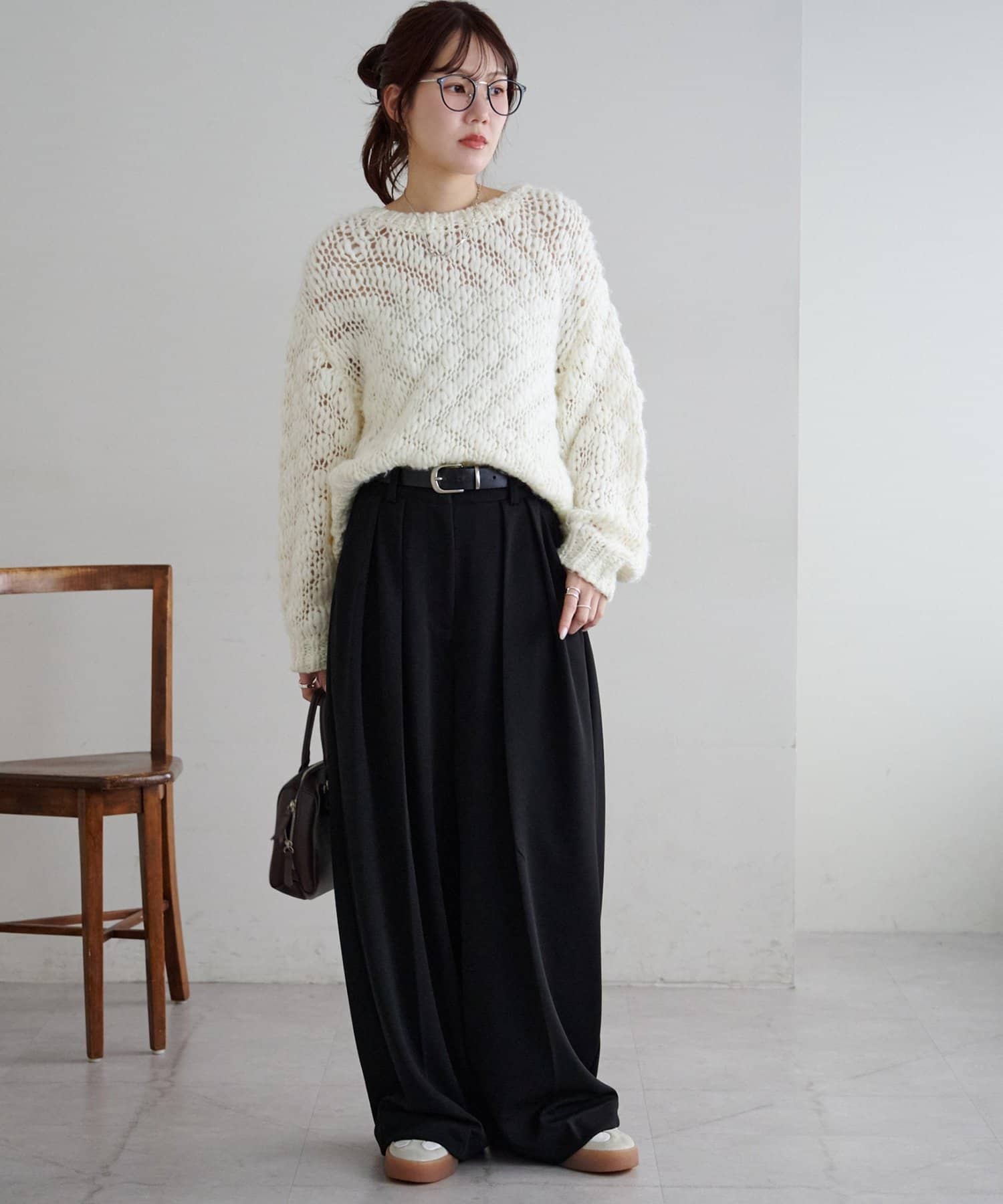 ボリューム感のあるワイドシルエットは、トップスを選ばず幅広いコーディネートにマッチ◎