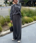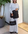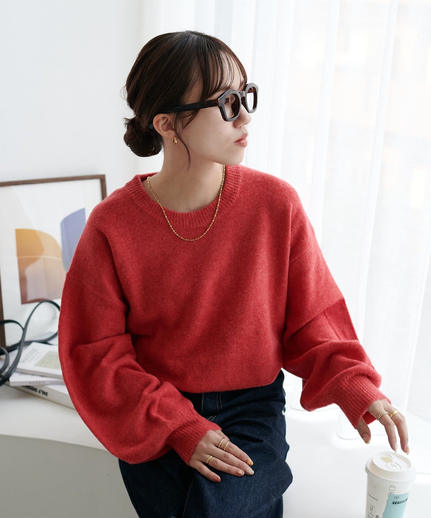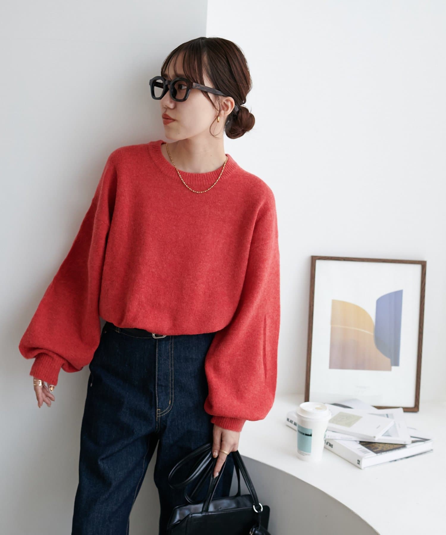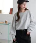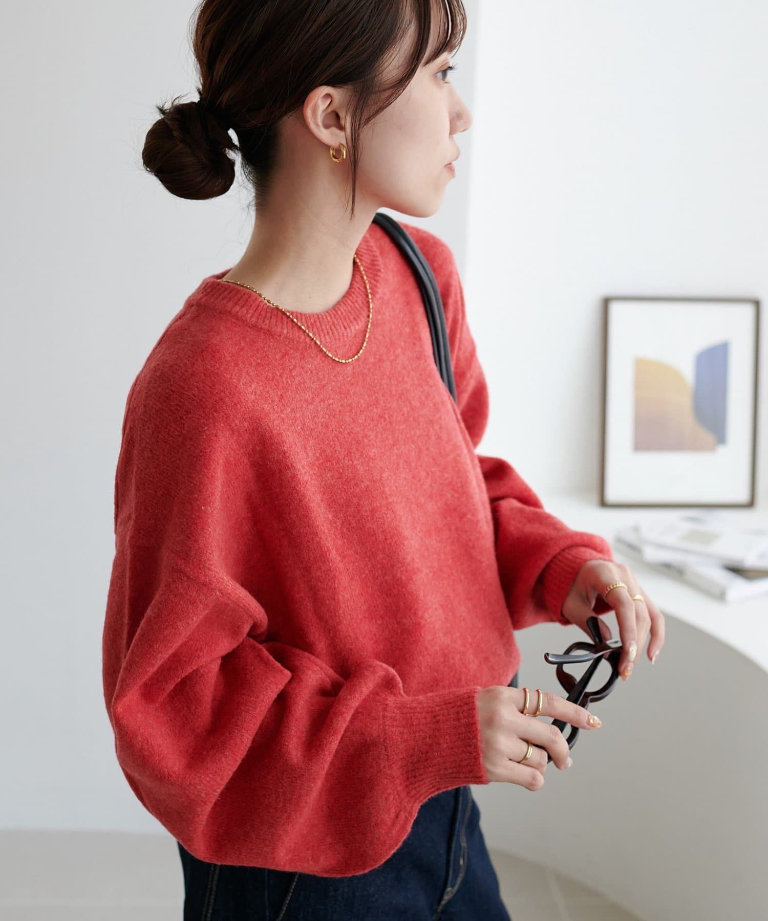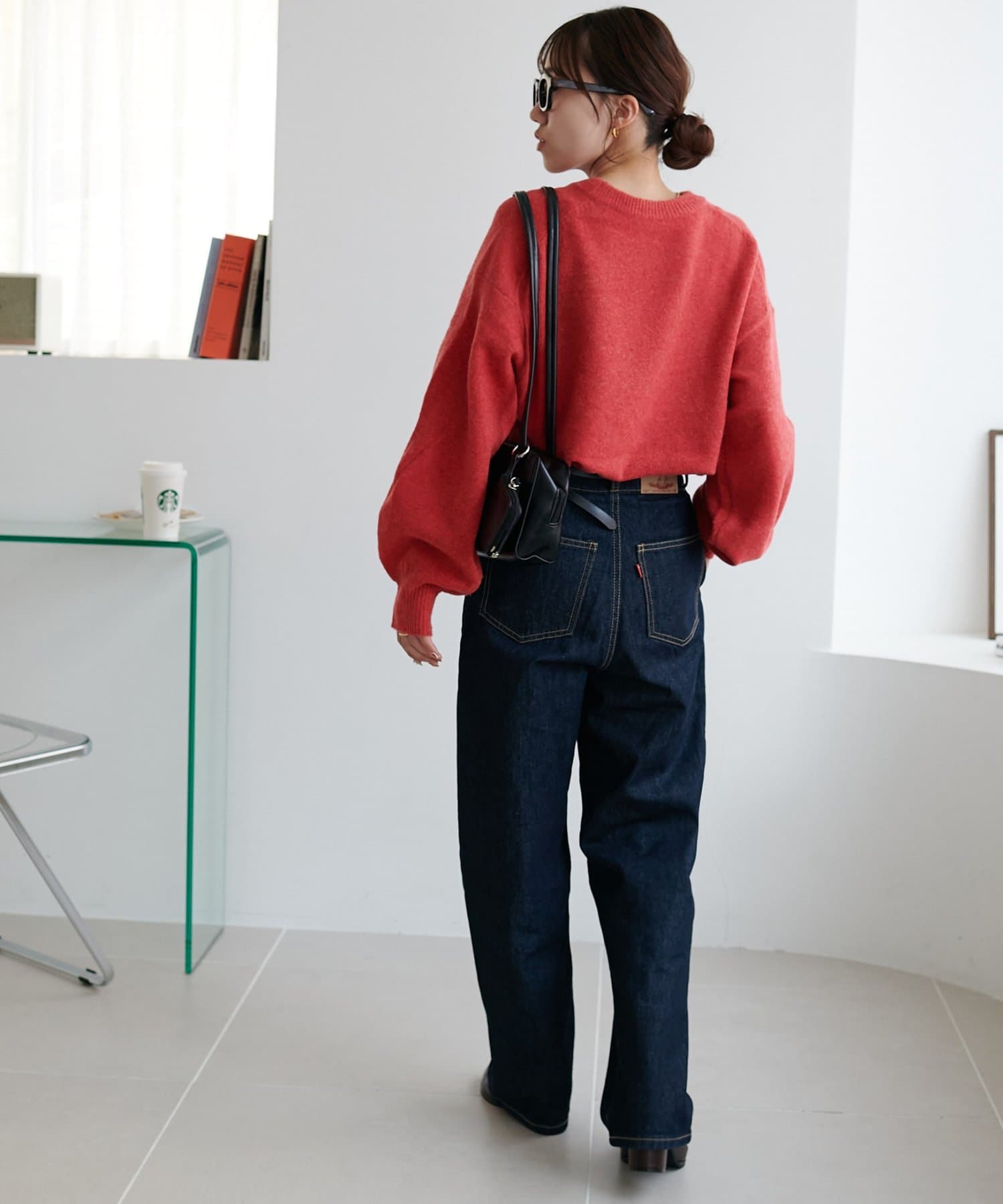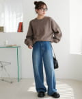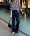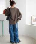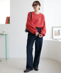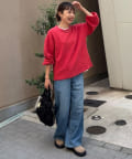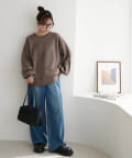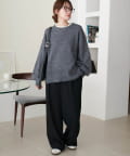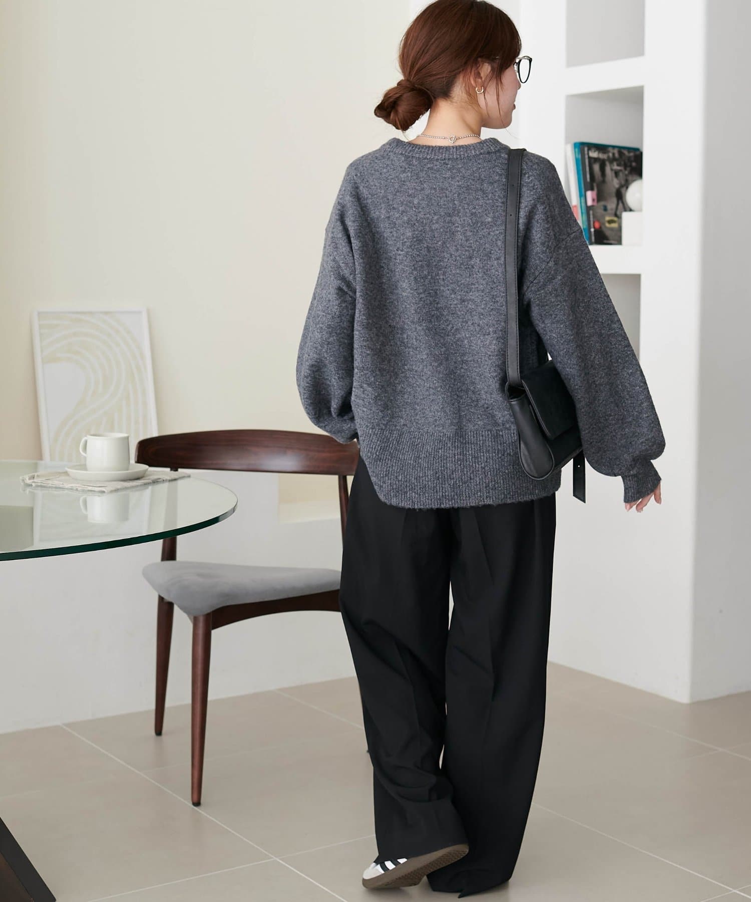 肩落ちシルエットと袖にゆったりとしたボリュームを持たせることで、抜け感のあるリラックススタイルに。