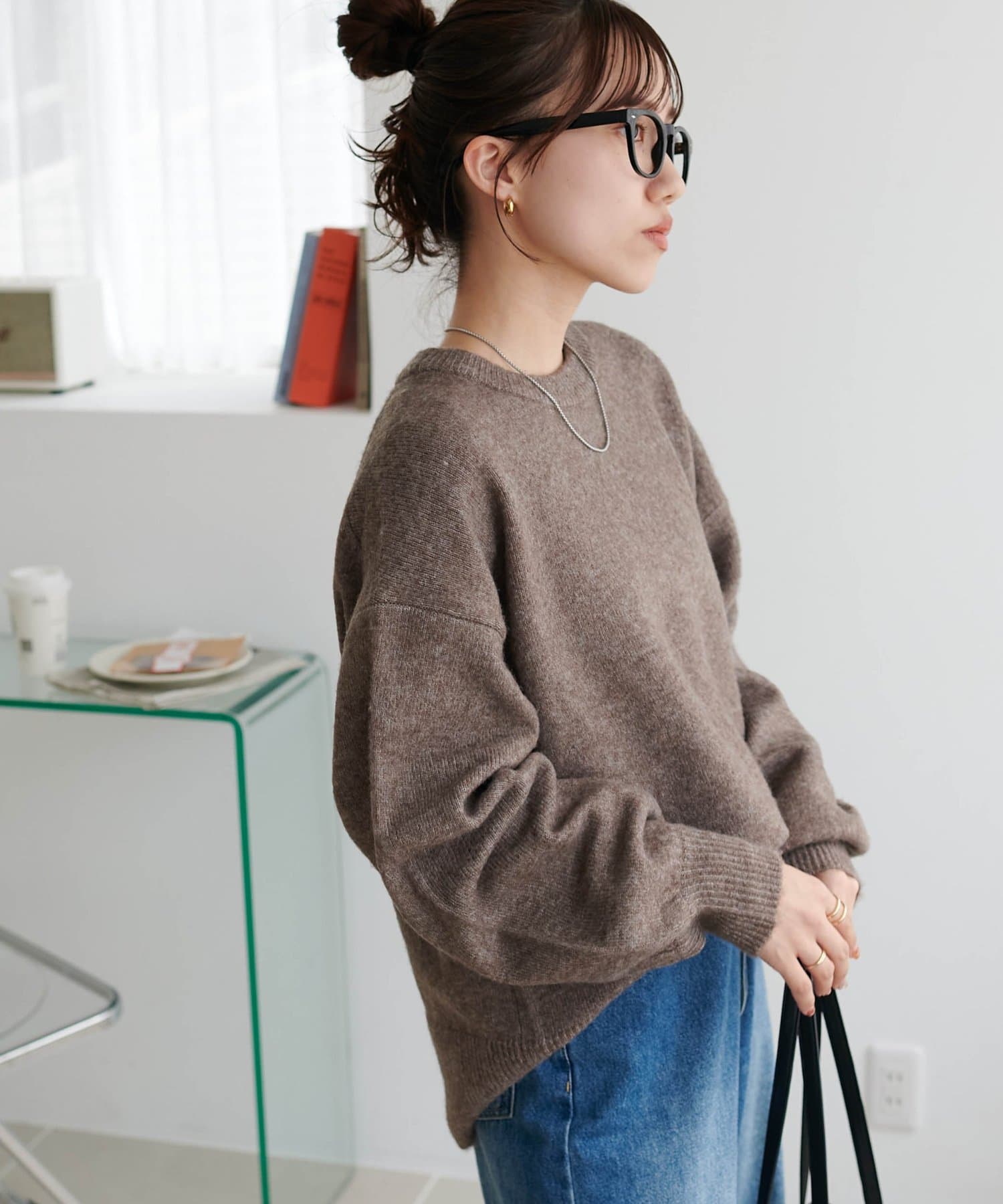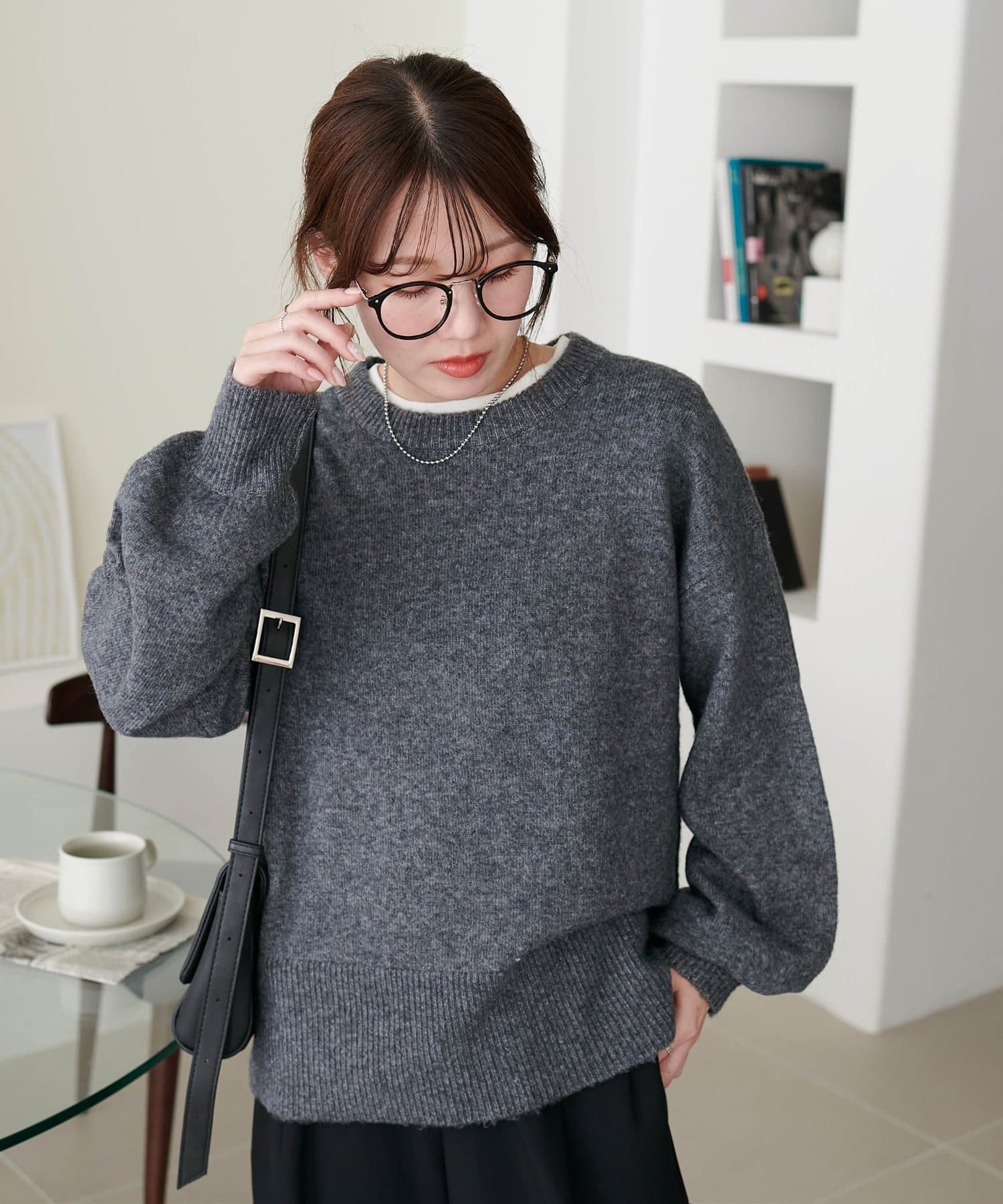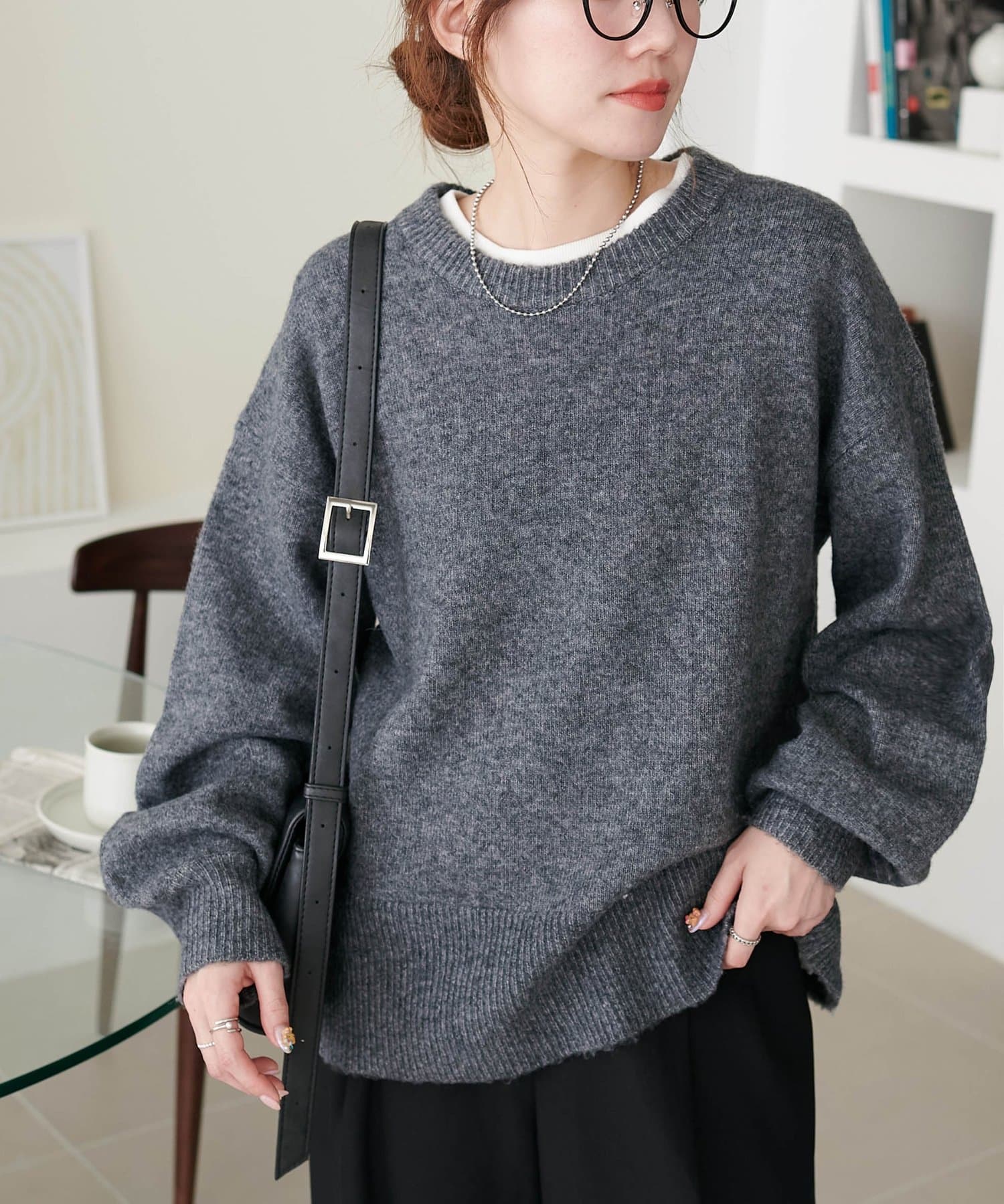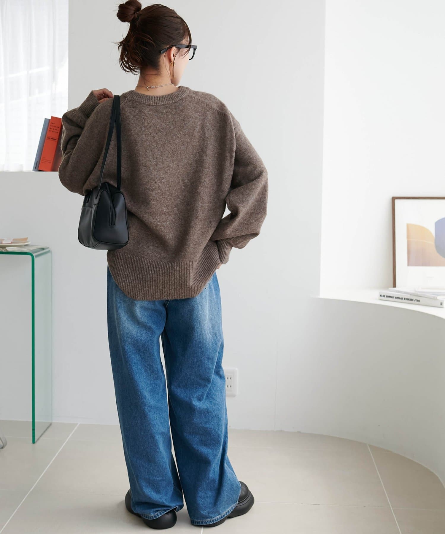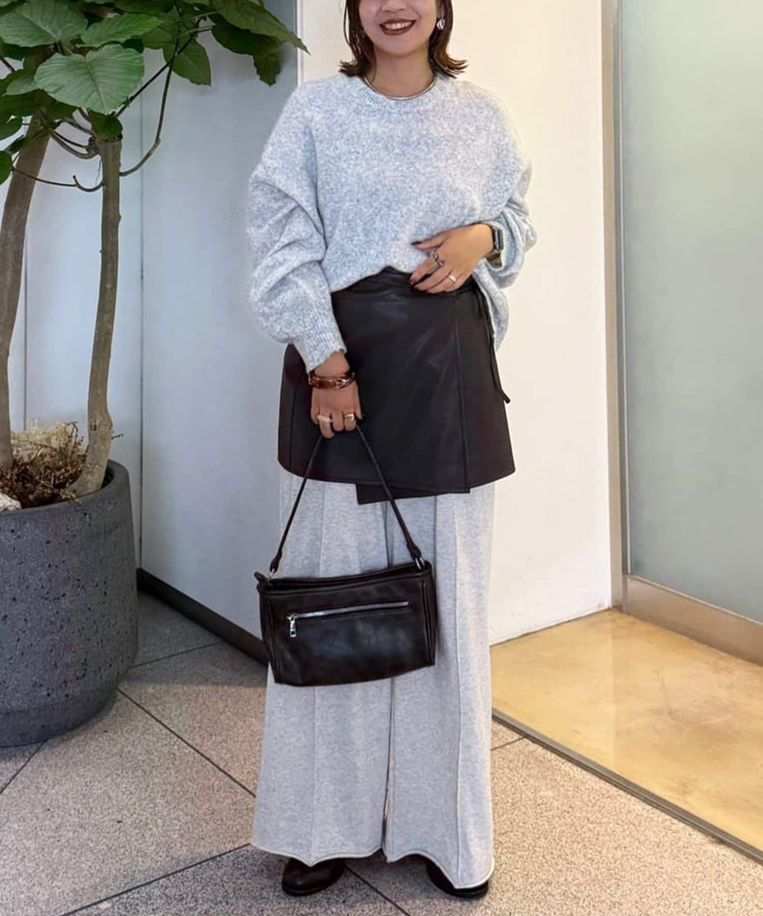155cmスタッフ:程よいゆとりと軽い着心地で、重ね着してももたつきません。パンツ・スカートどちらにも合わせやすいニットです!