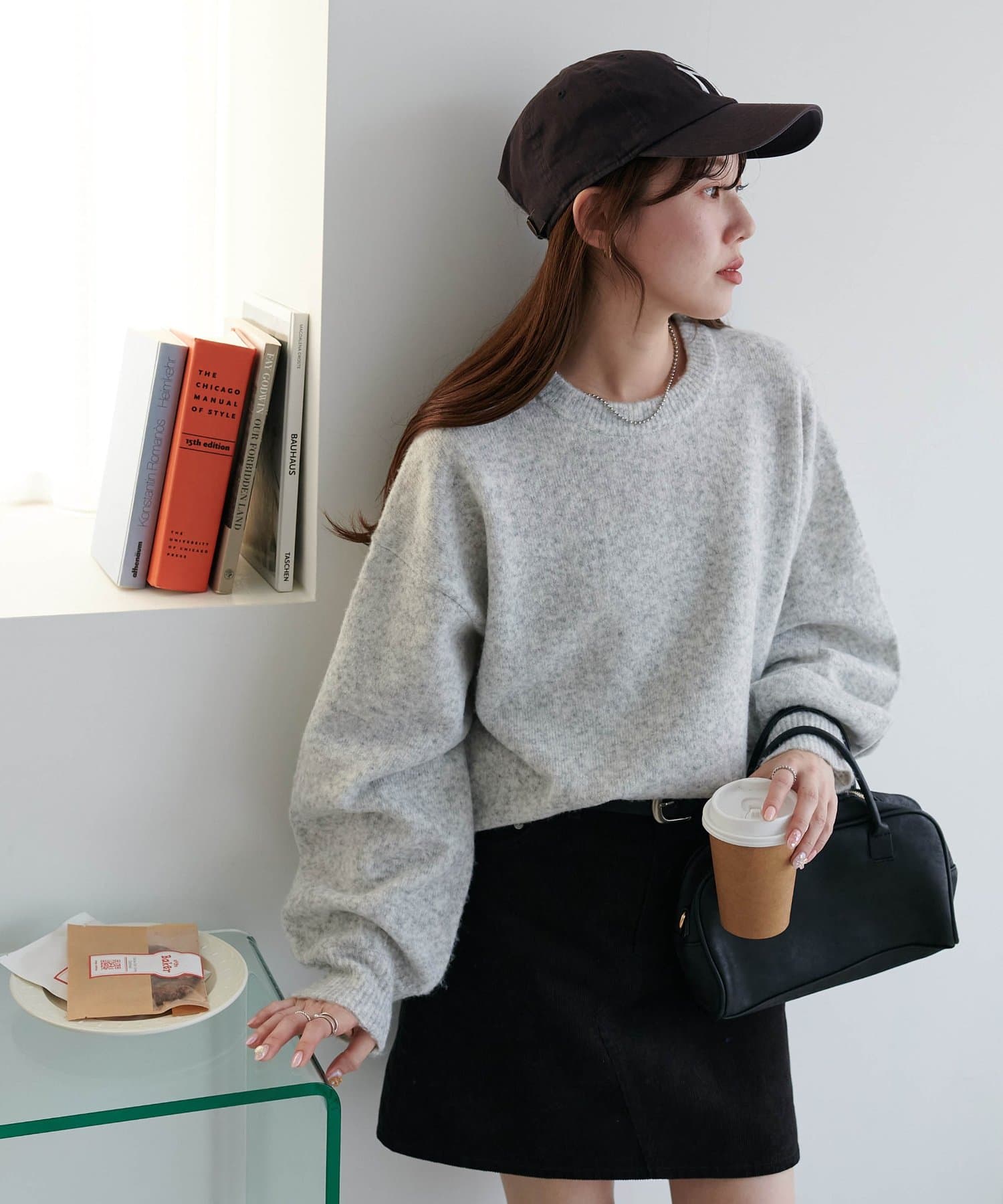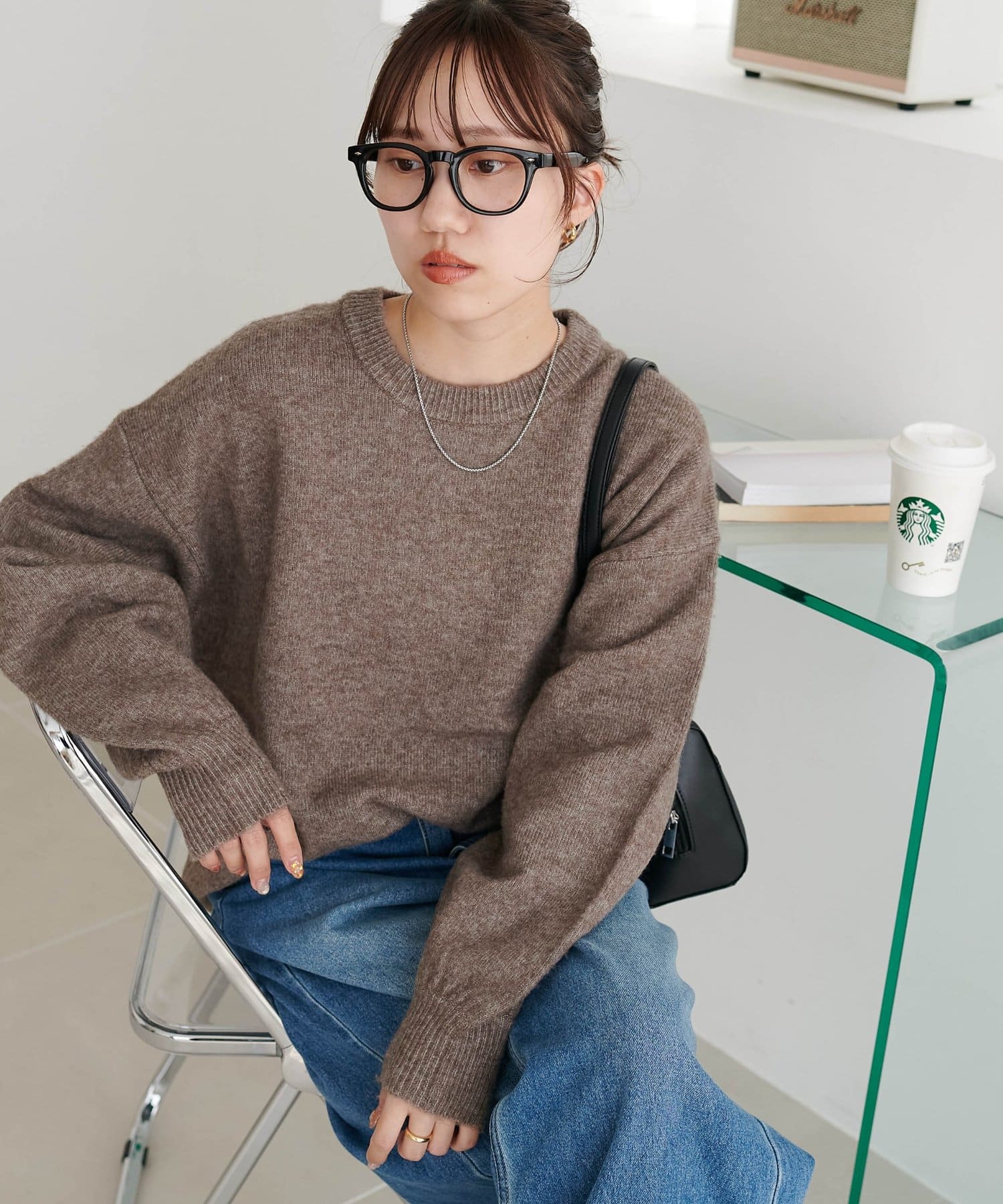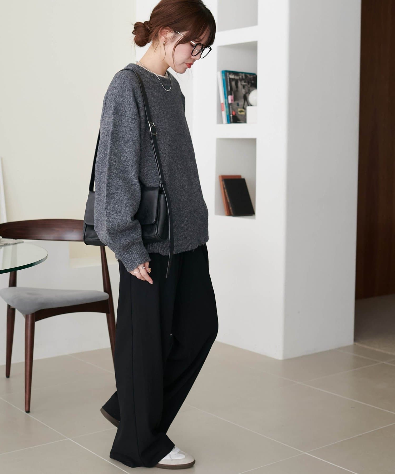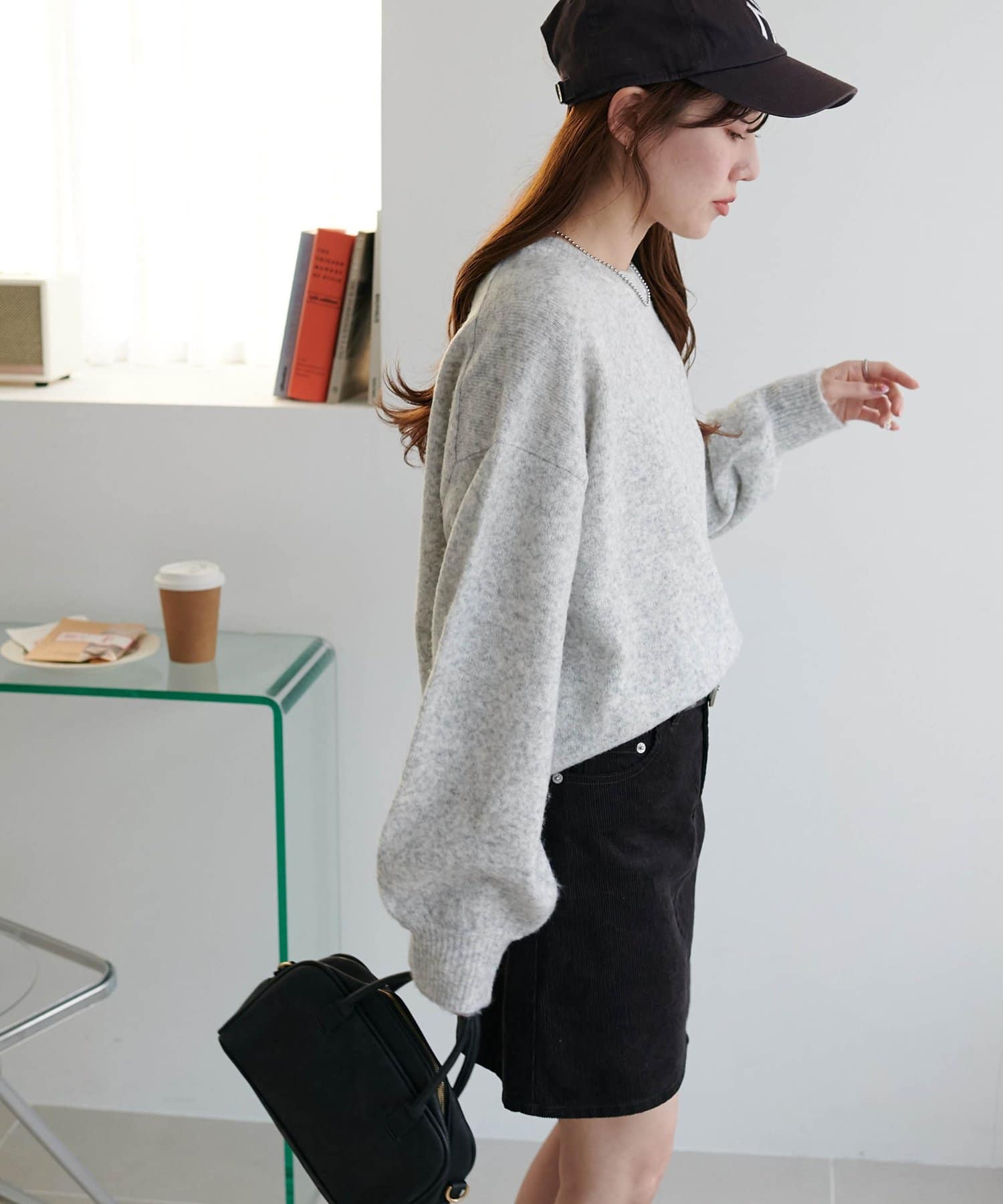155cmスタッフ:程よいゆとりと軽い着心地で、重ね着してももたつきません。パンツ・スカートどちらにも合わせやすいニットです!