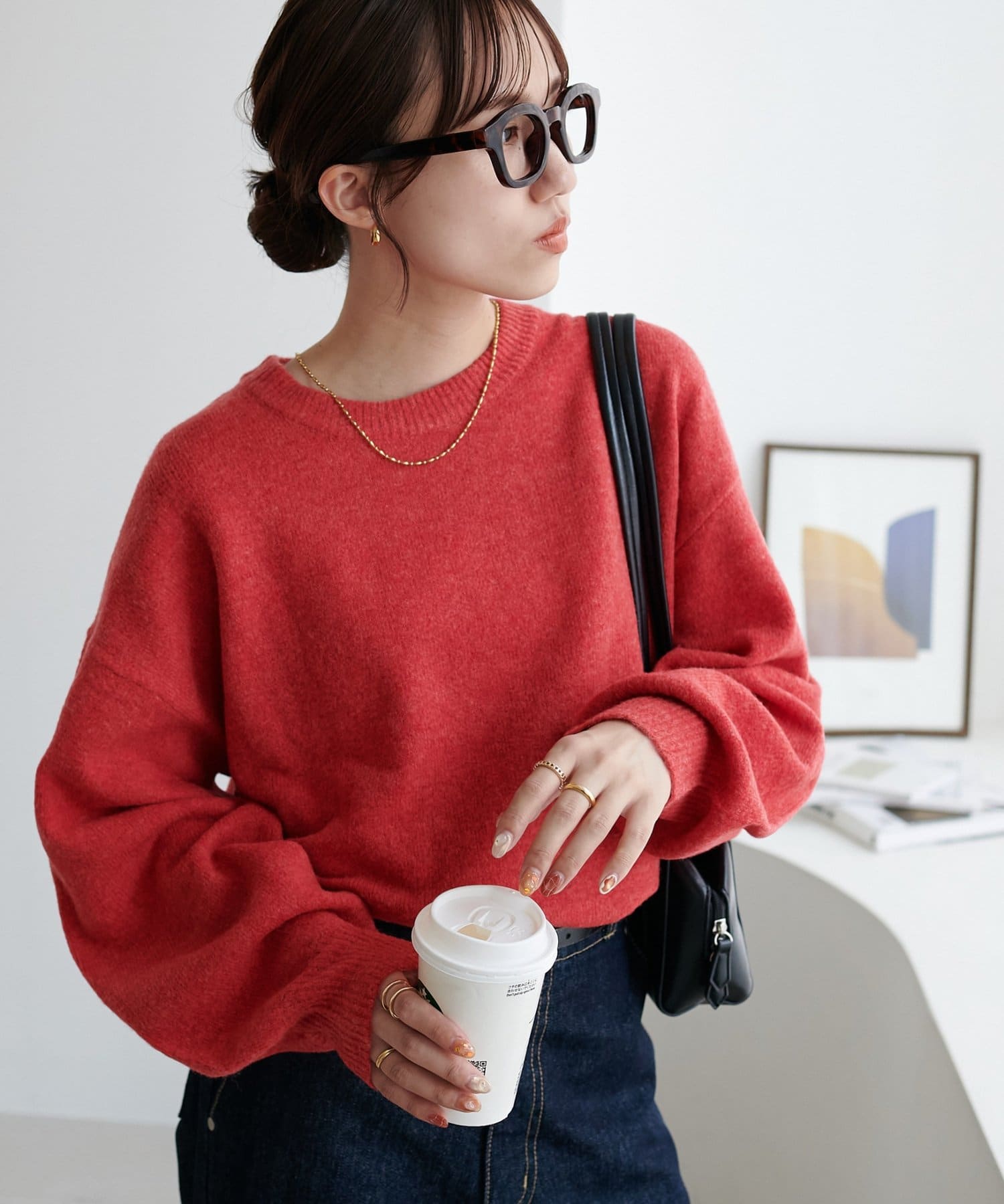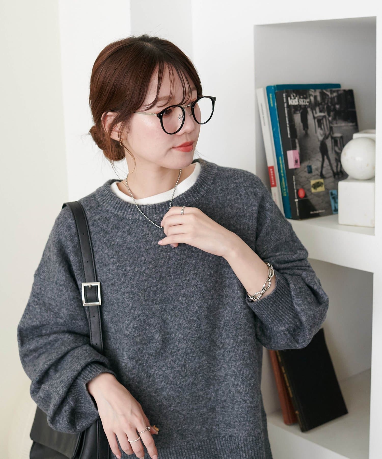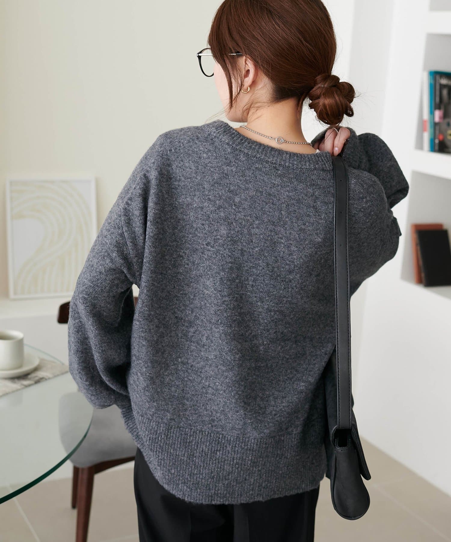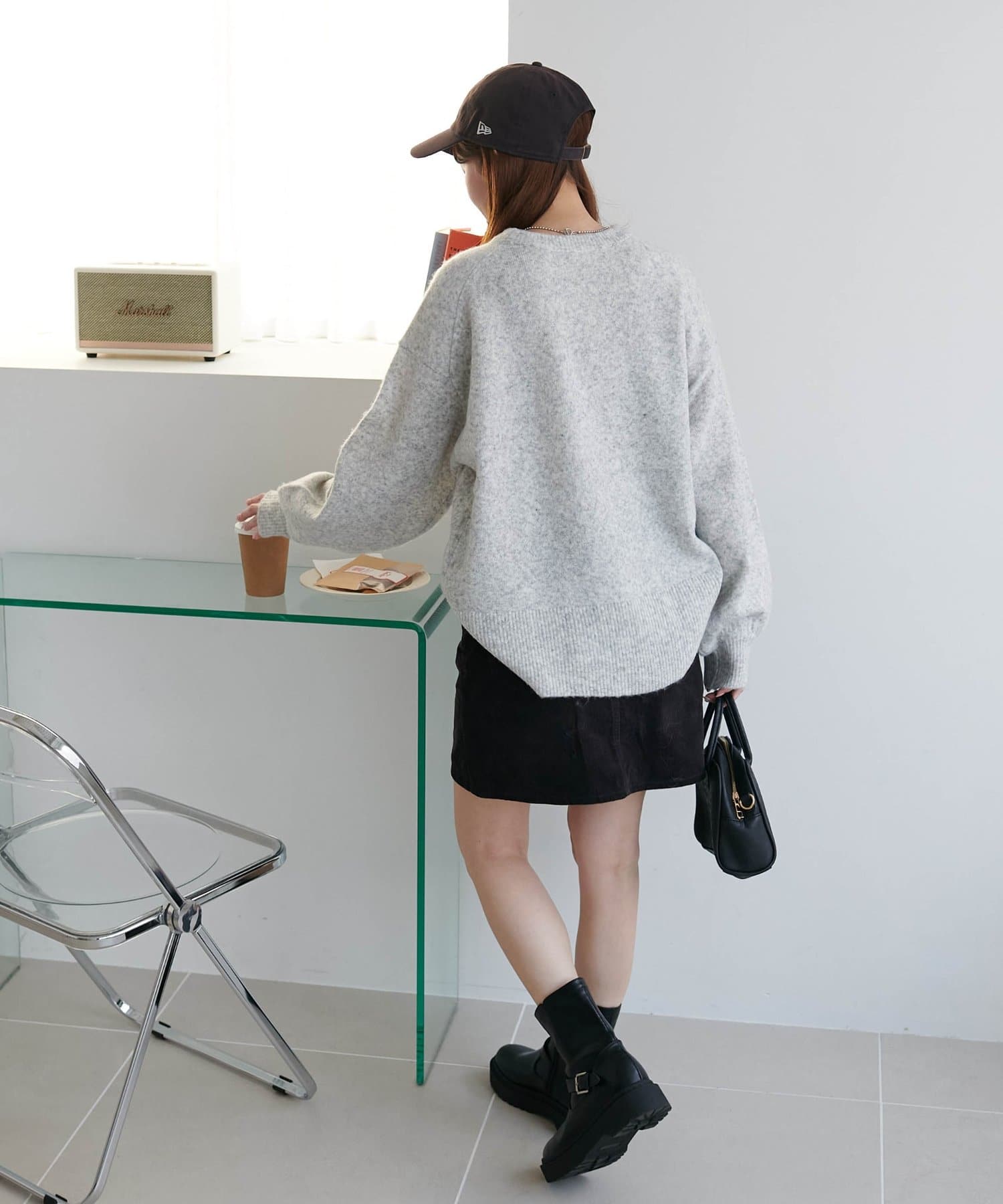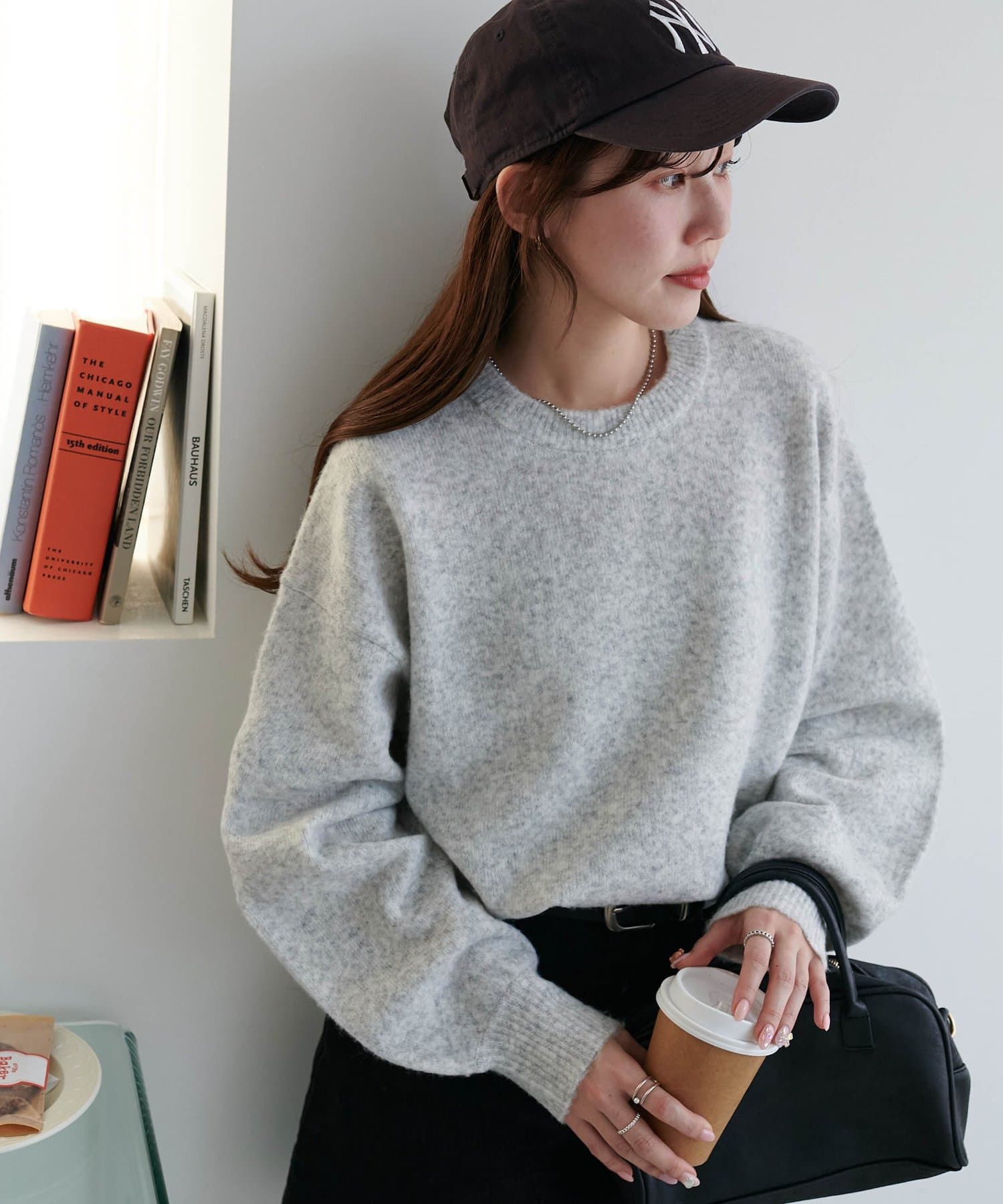 155cmスタッフ:程よいゆとりと軽い着心地で、重ね着してももたつきません。パンツ・スカートどちらにも合わせやすいニットです!
