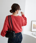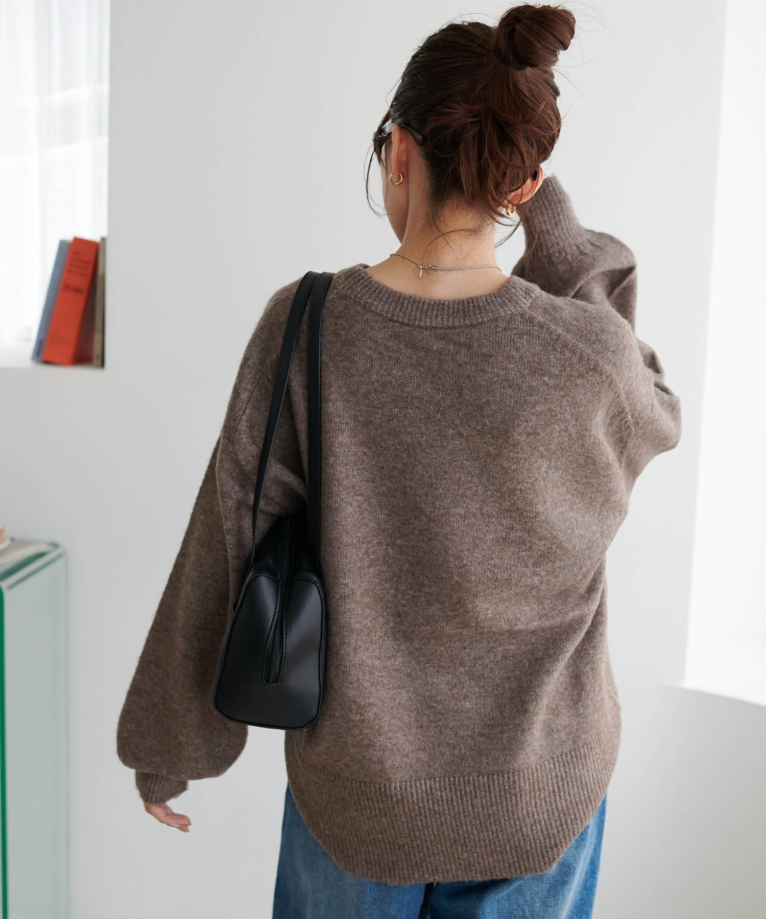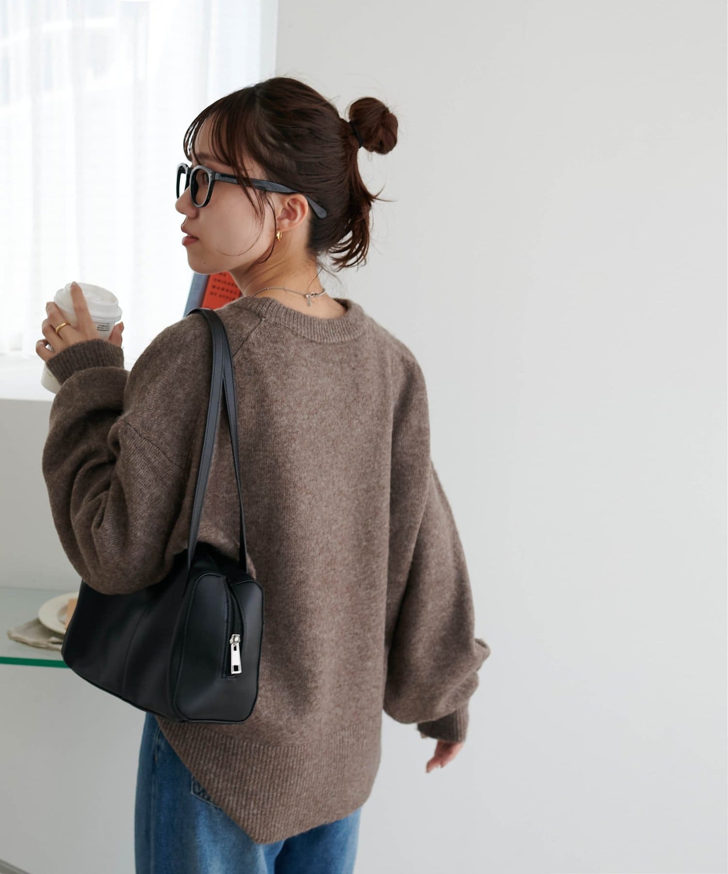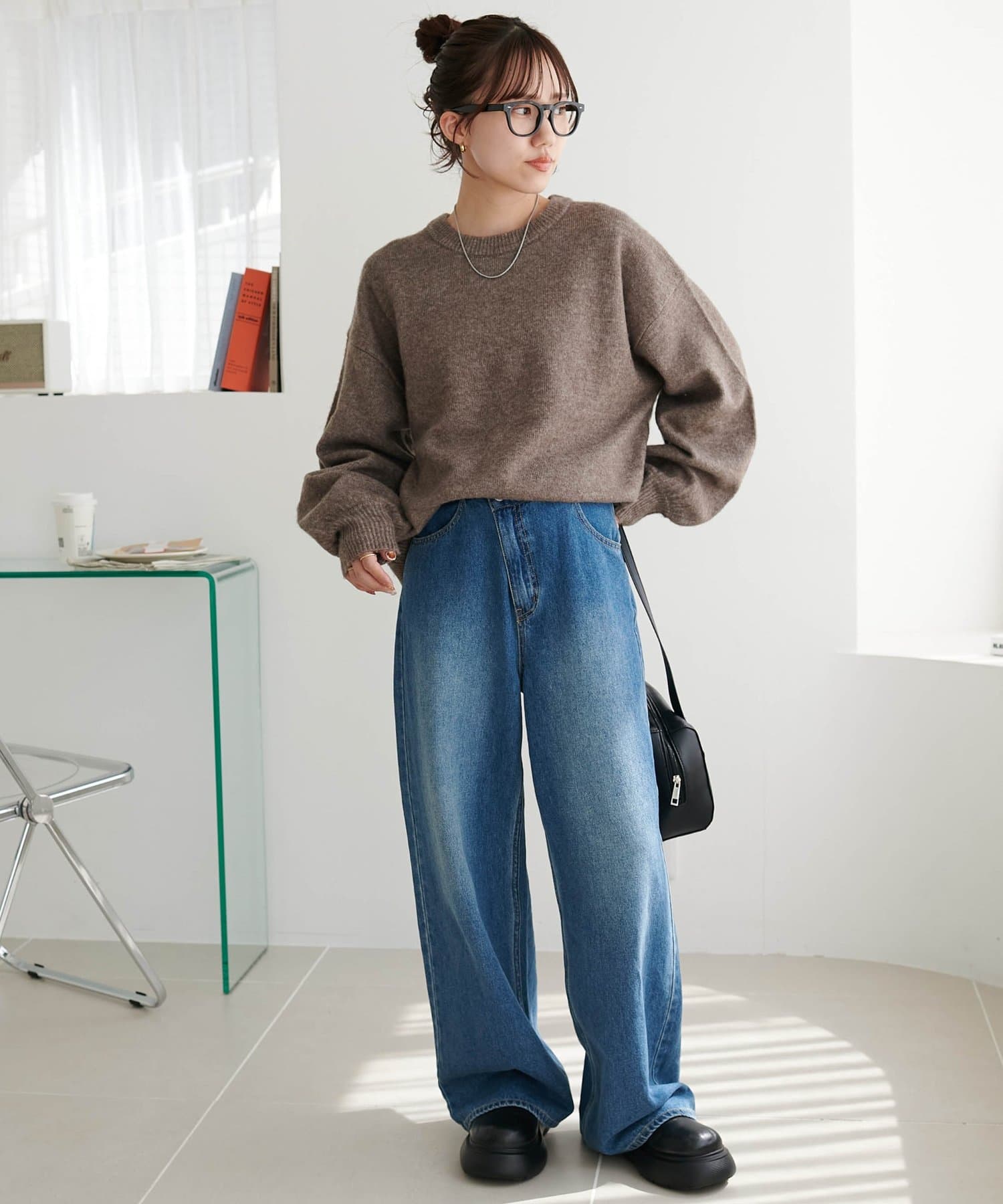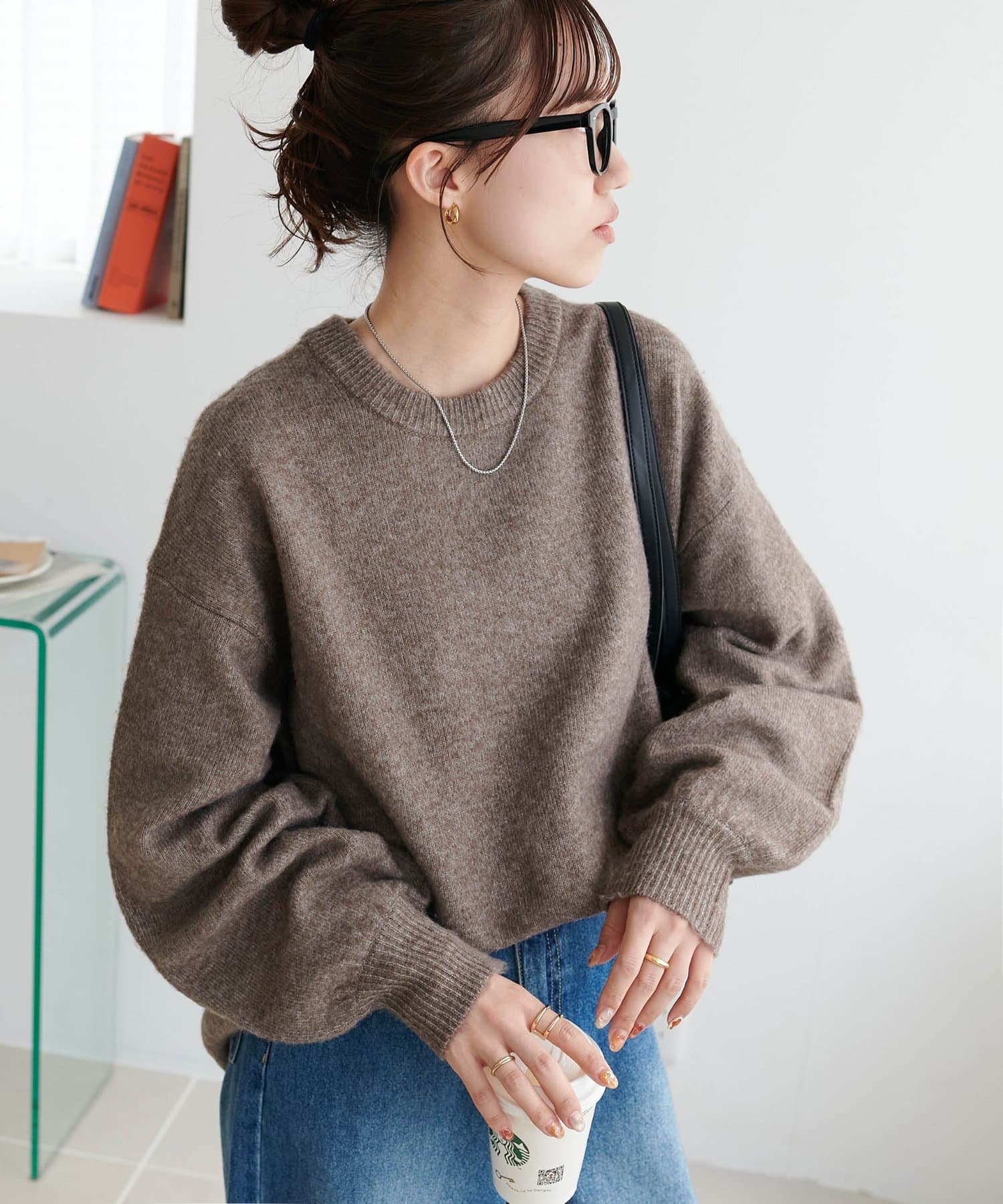 155cmスタッフ:程よいゆとりと軽い着心地で、重ね着してももたつきません。パンツ・スカートどちらにも合わせやすいニットです!