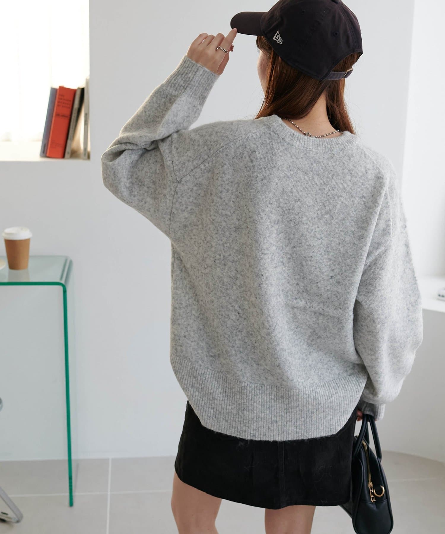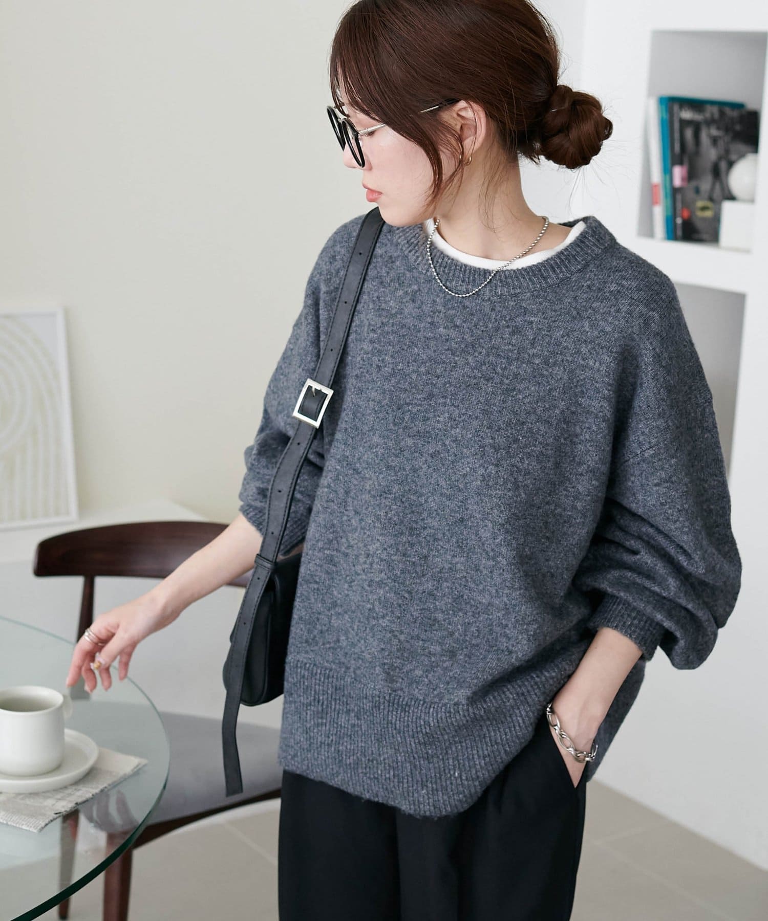 メランジ特有の奥行きある色合いが、シンプルながらも表情豊かな印象を与えるプルオーバー。