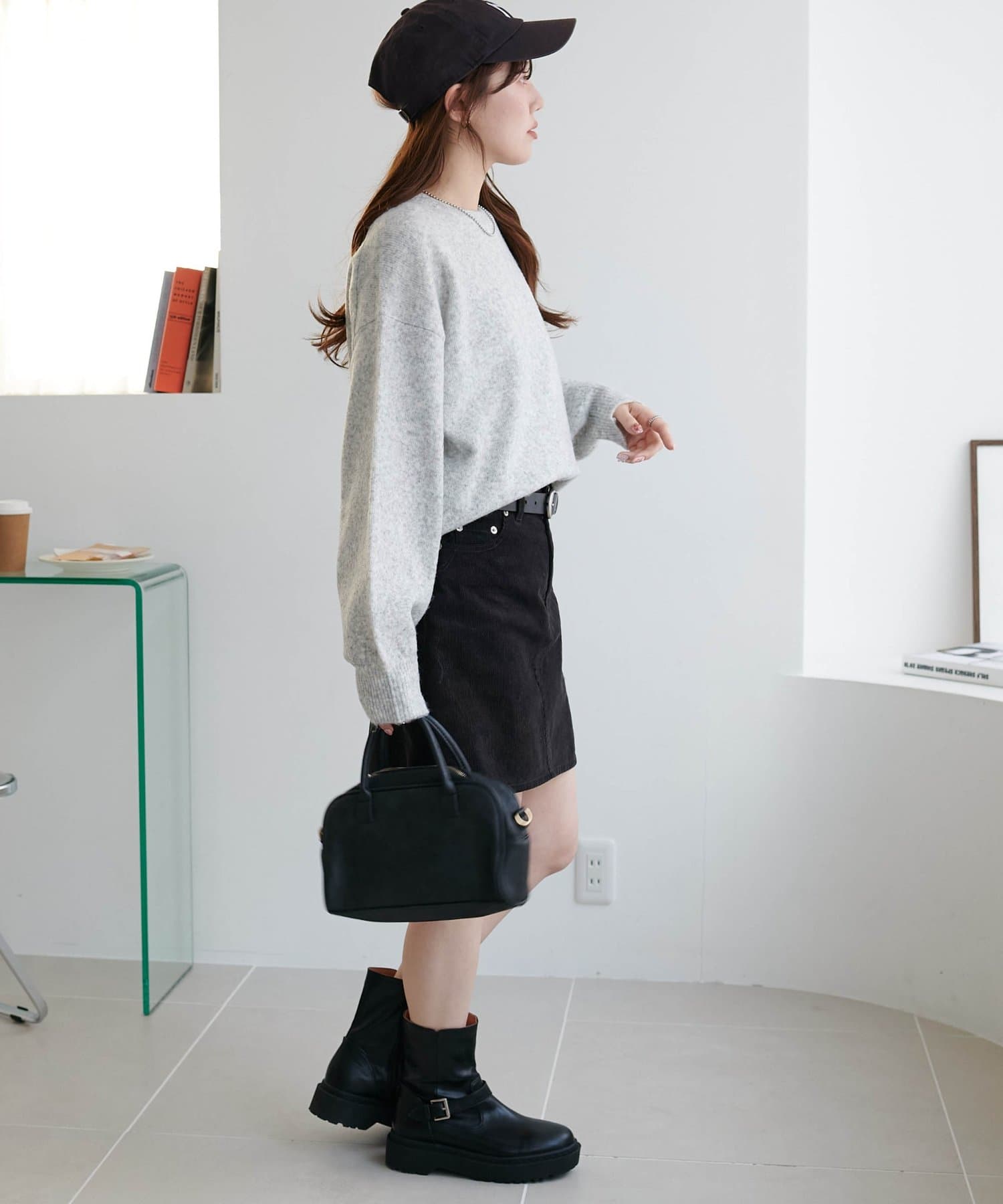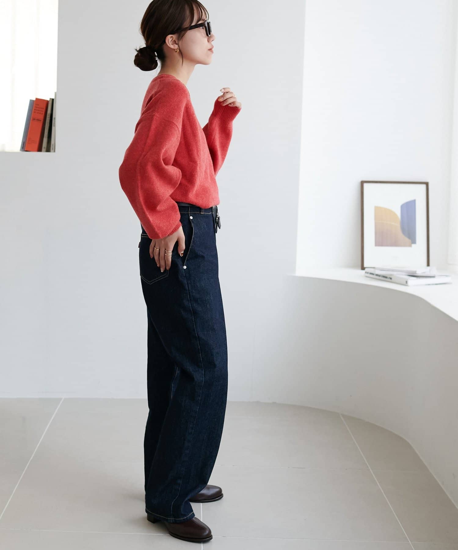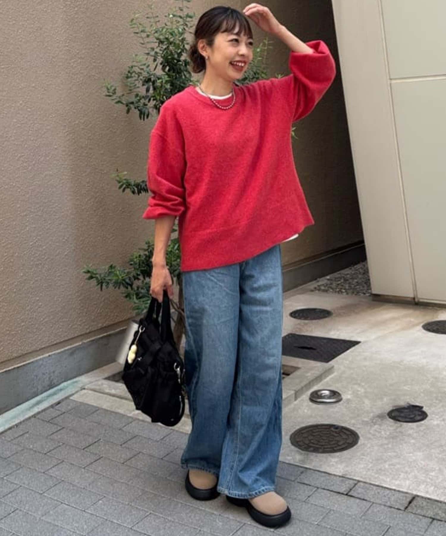 シンプルなデザインでどんなスタイリングにも溶け込むニットなので、パンツスタイルはもちろん、スカートスタイルにも重宝するアイテム。厚すぎない生地感なので、ワンピースやジャンスカのインナーとして着ていただくのもおすすめです◎