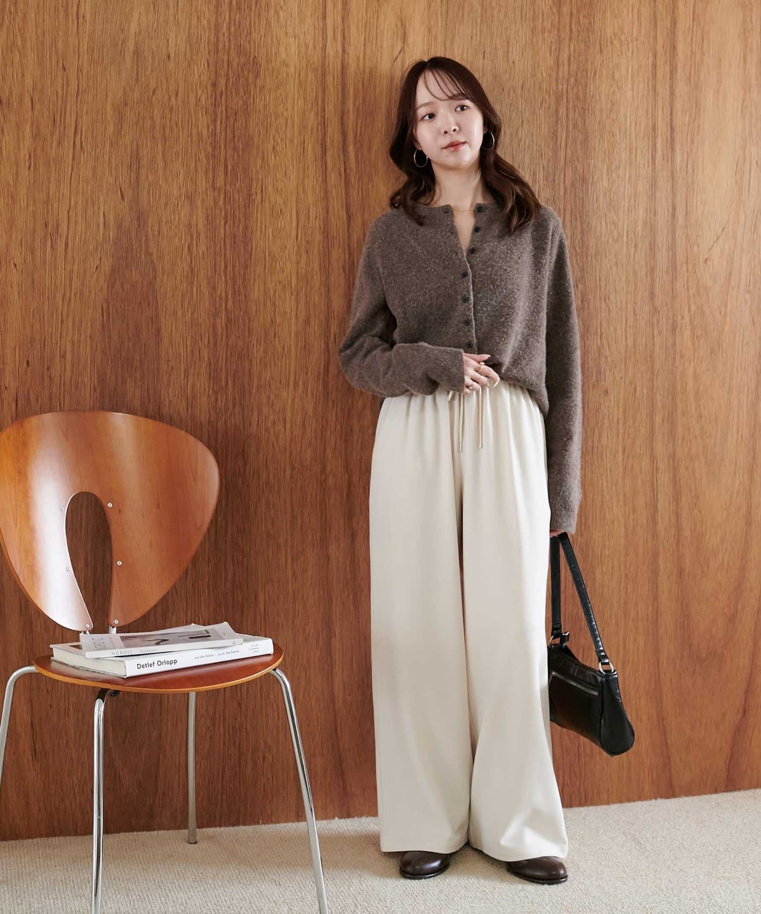 上質なヤク混素材を使用した、ふんわりと柔らかな風合いのクルーネックカーディガン。