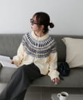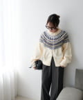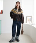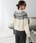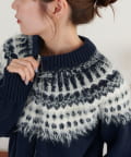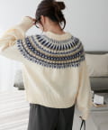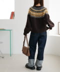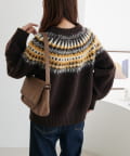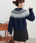 シーズンムード漂う求心柄デザインを身頃から肩回りにかけて大胆にあしらった、存在感抜群のプルオーバー。