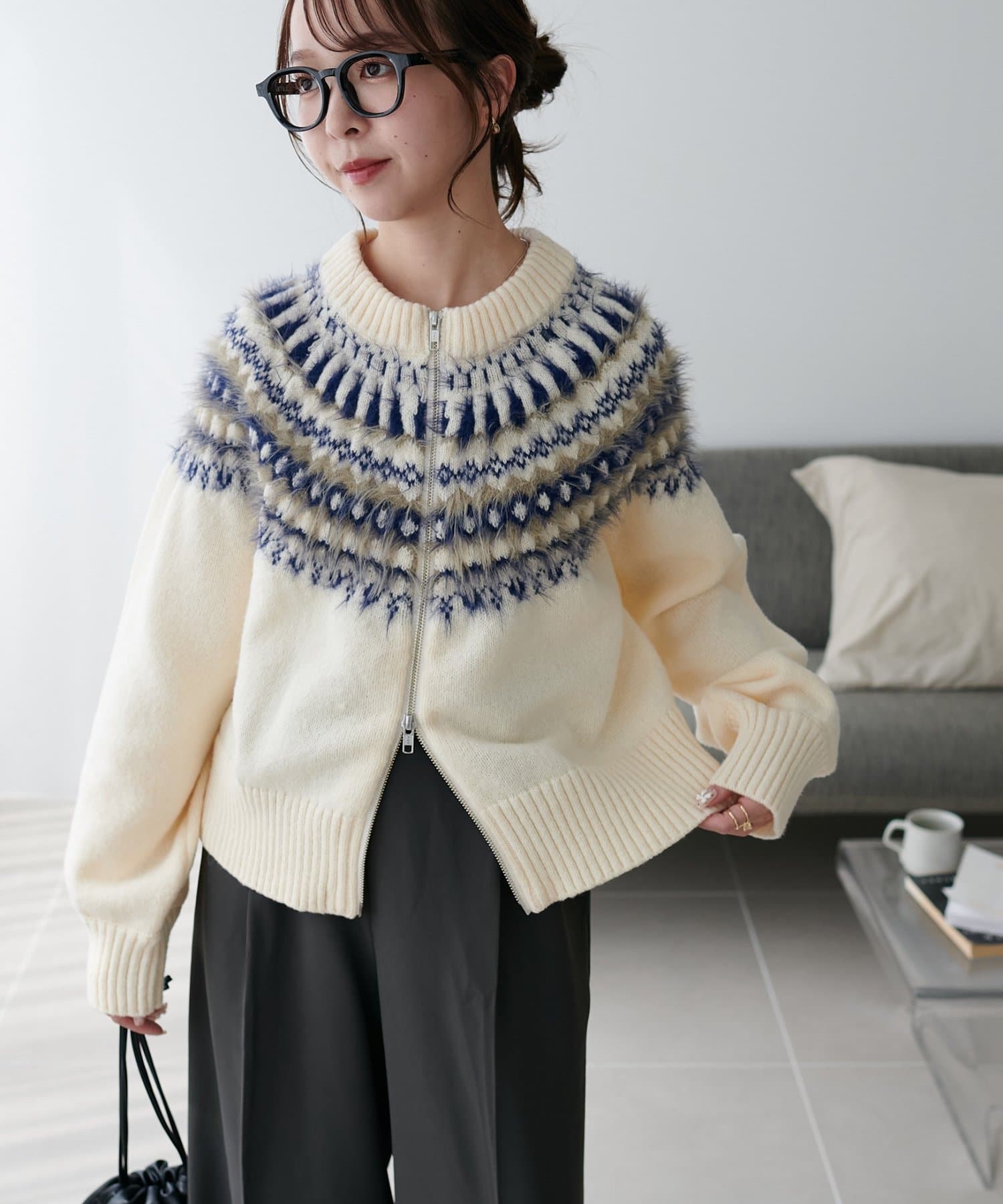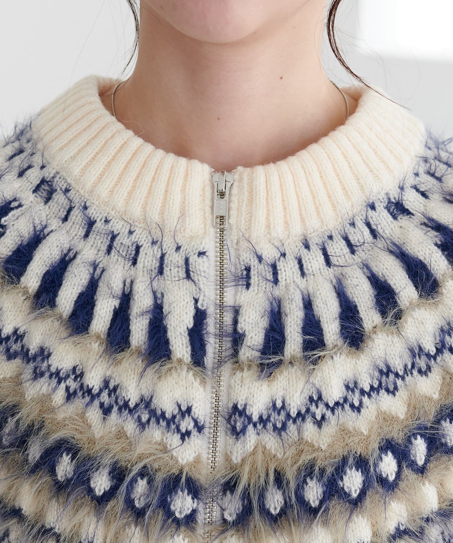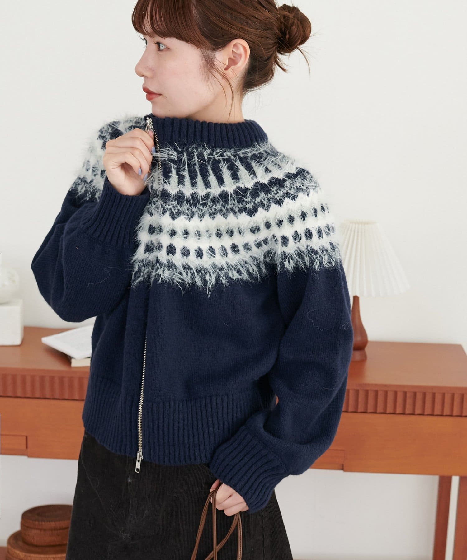 【着映えニット】求心柄Wジッププルオーバー