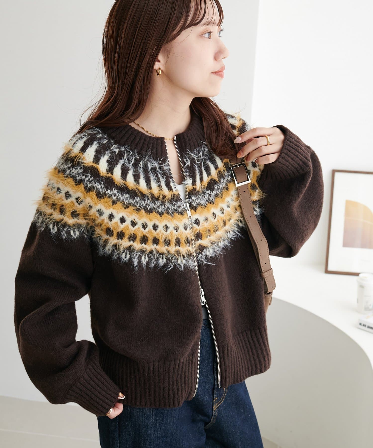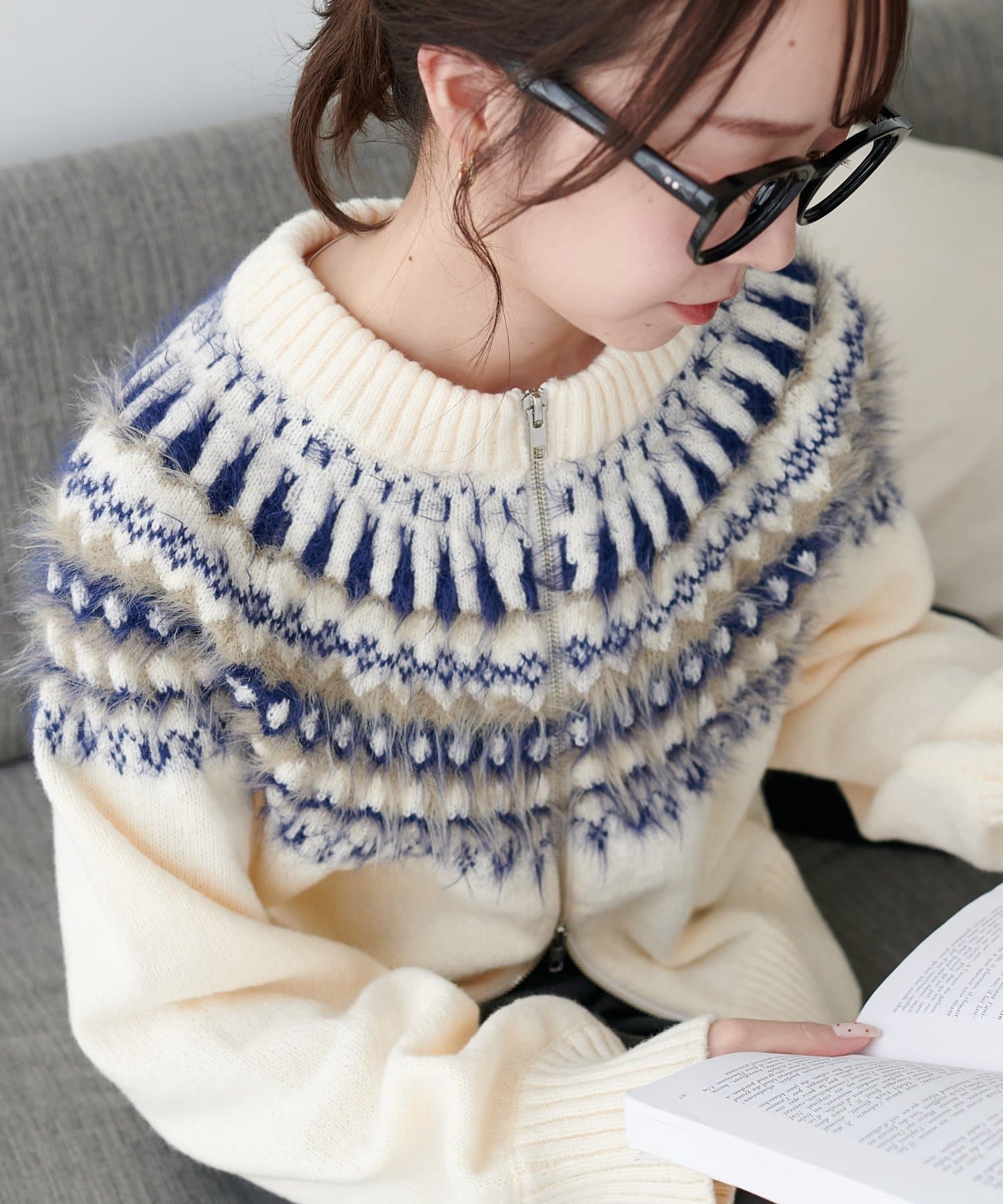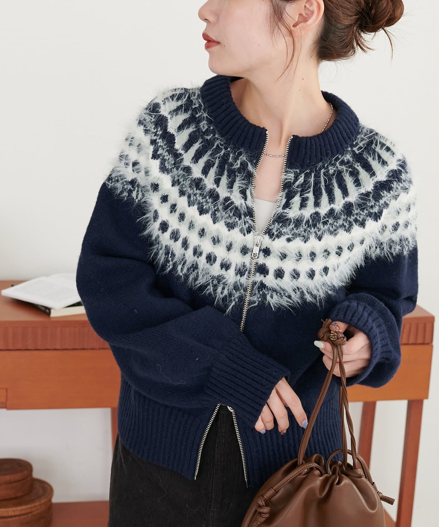 【着映えニット】求心柄Wジッププルオーバー