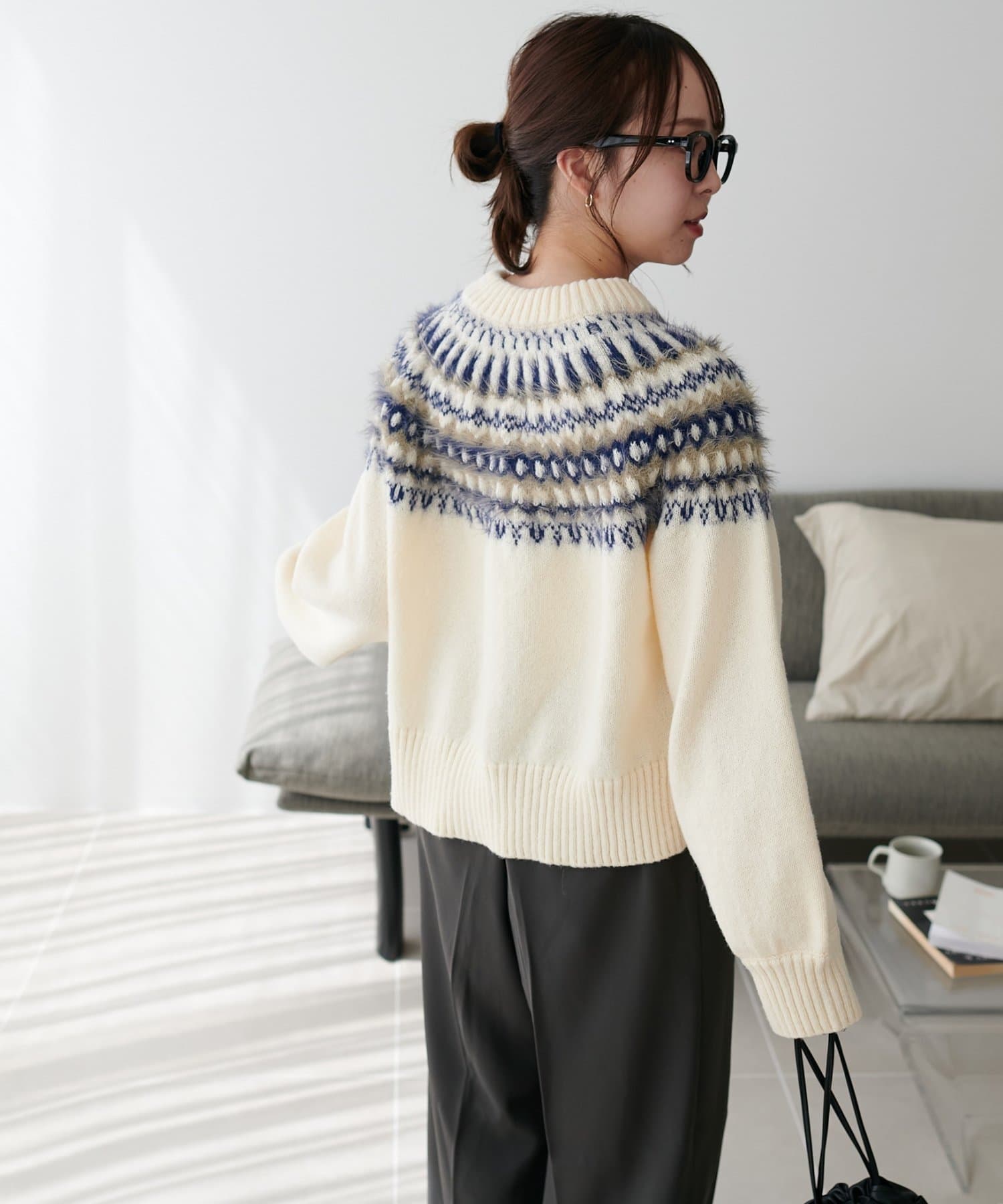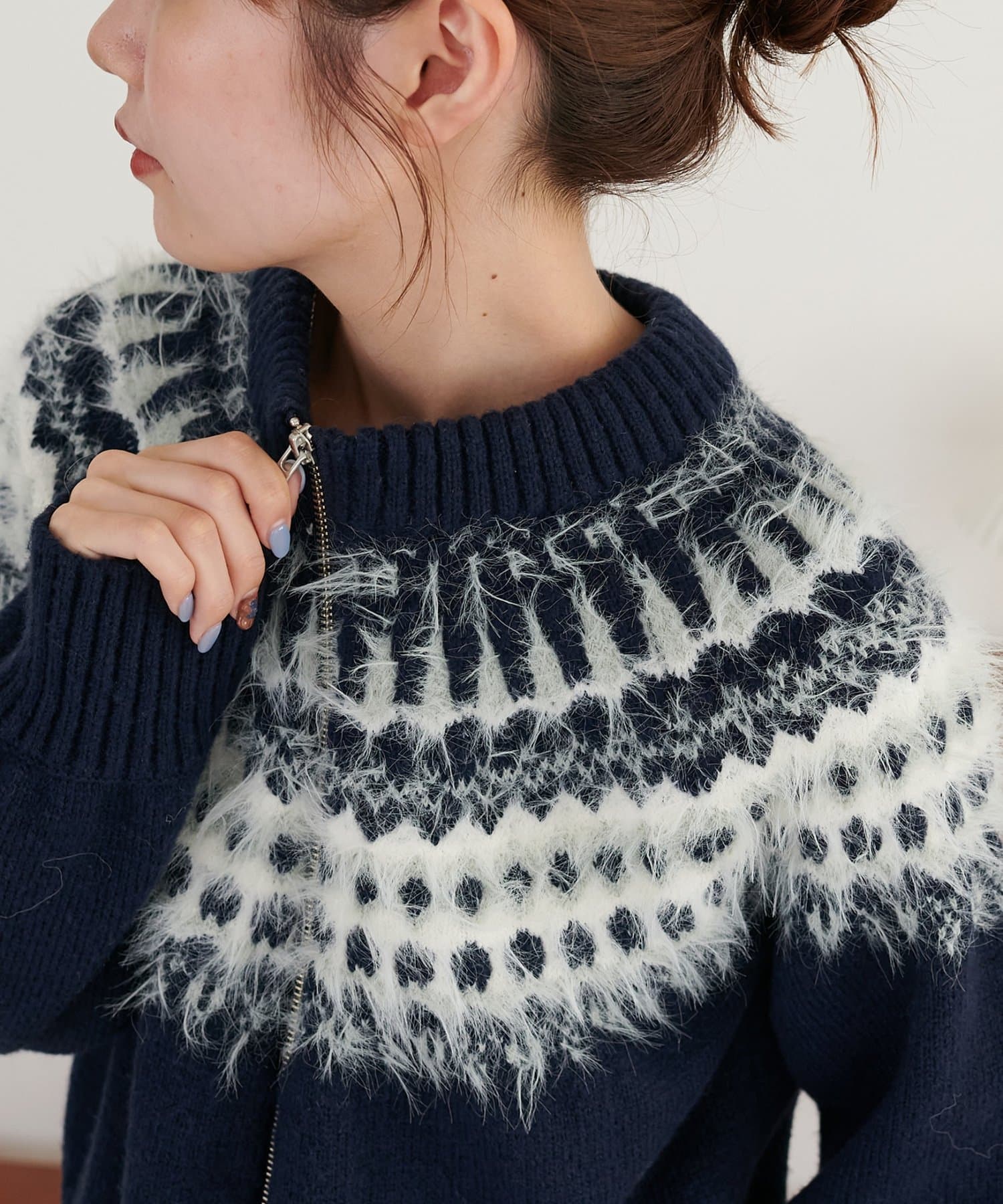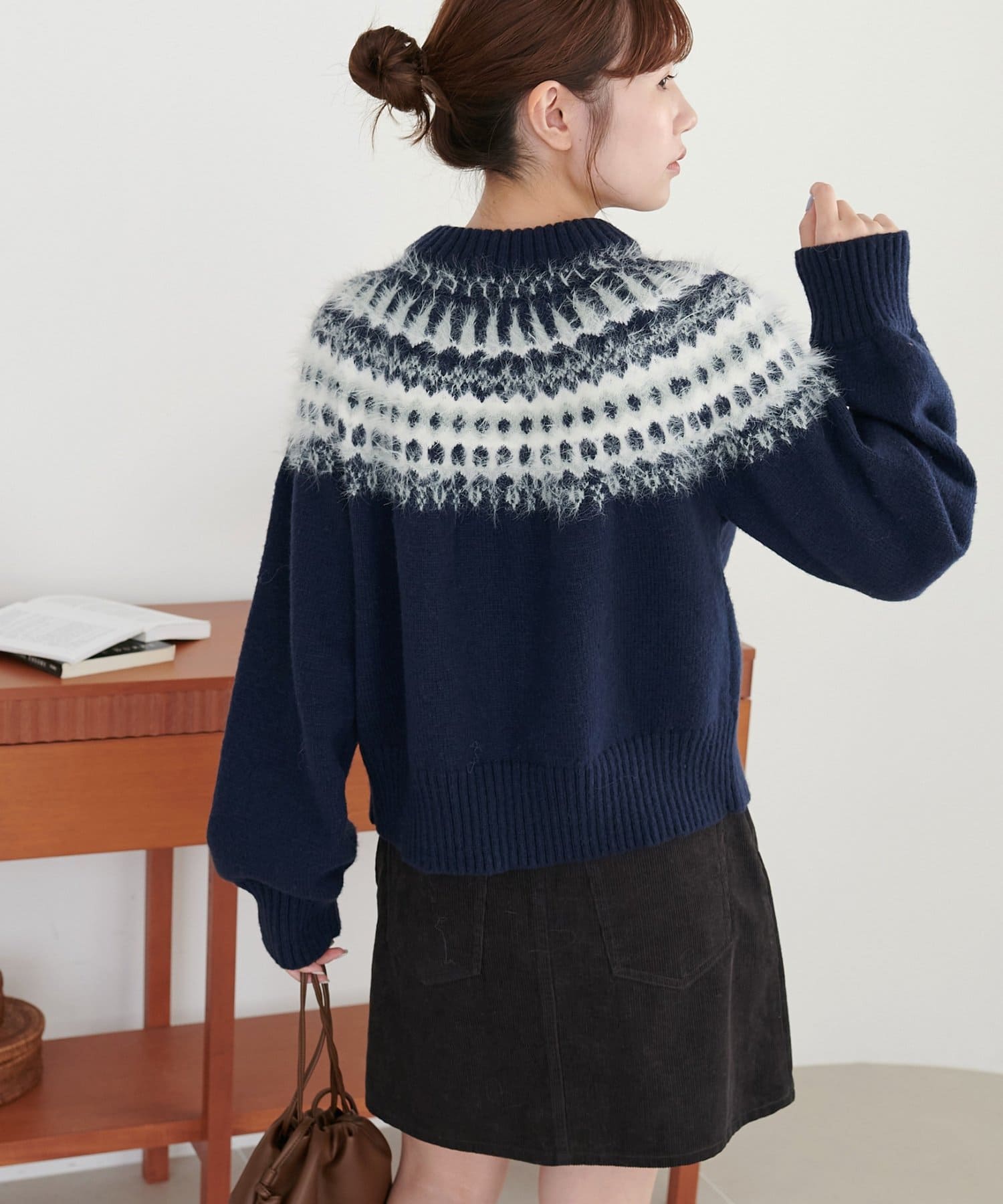 毛足のある糸を部分的にミックスすることで、立体感とあたたかみのある仕上がりに。