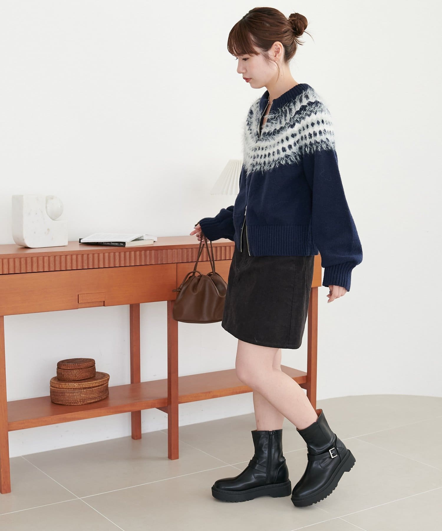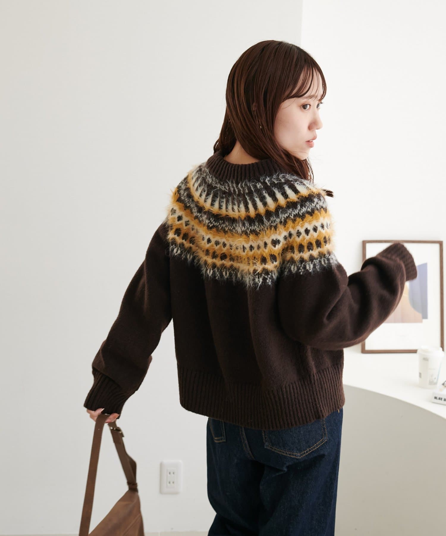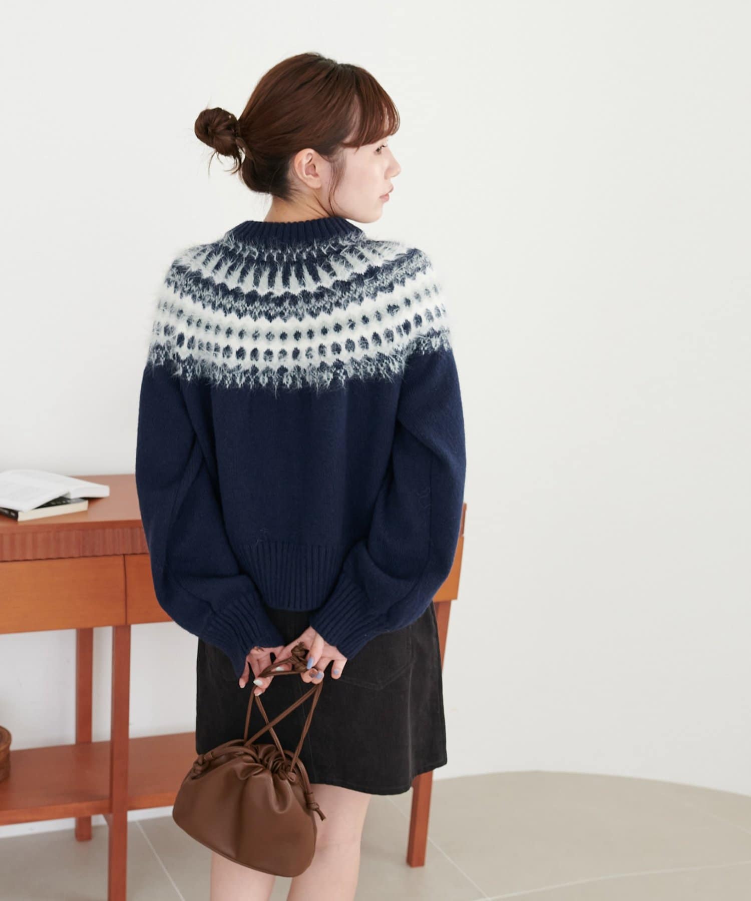 毛足のある糸を部分的にミックスすることで、立体感とあたたかみのある仕上がりに。