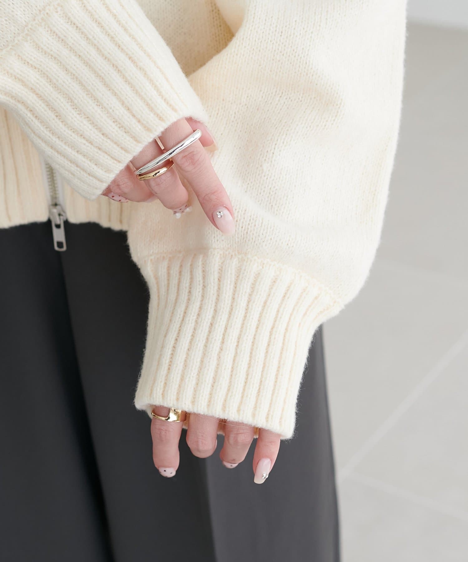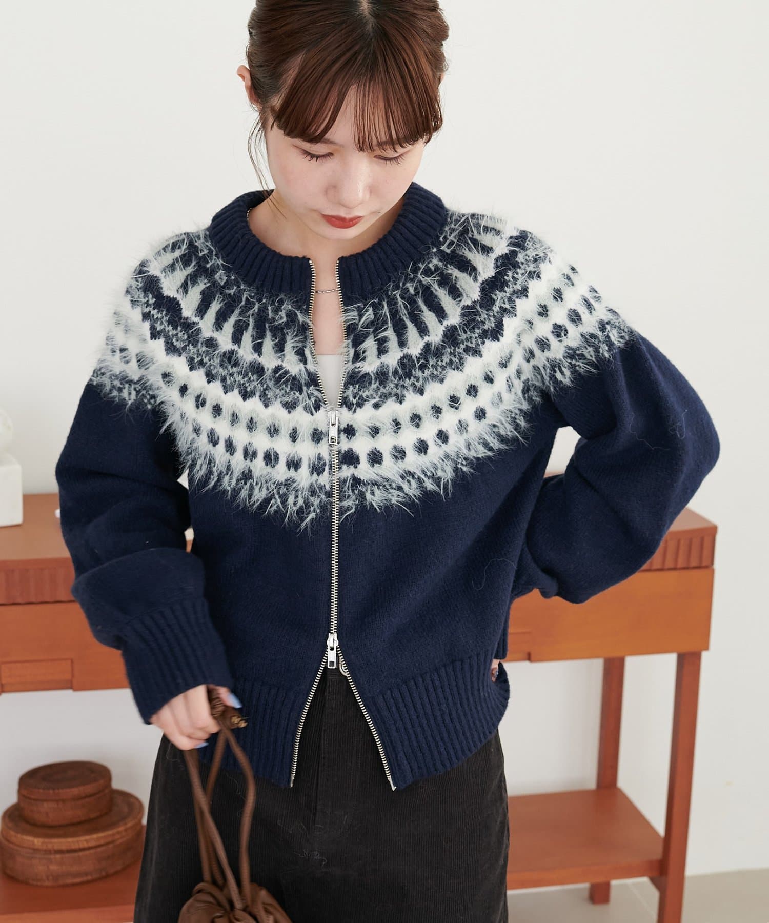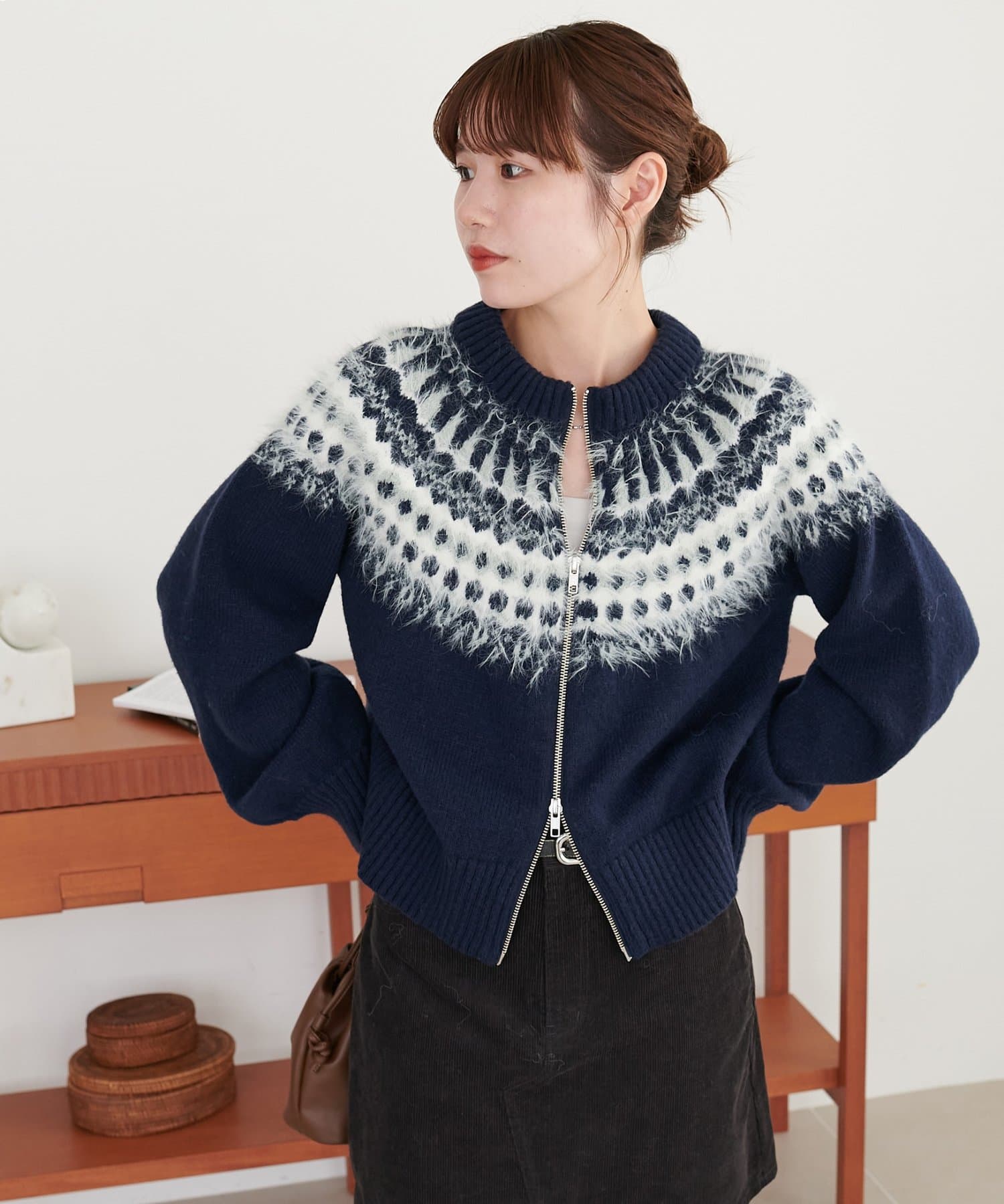 前開きのダブルジップ仕様は、上下どちらからも開閉できるため、着こなしのアレンジや温度調整がしやすいデザインになっています♪