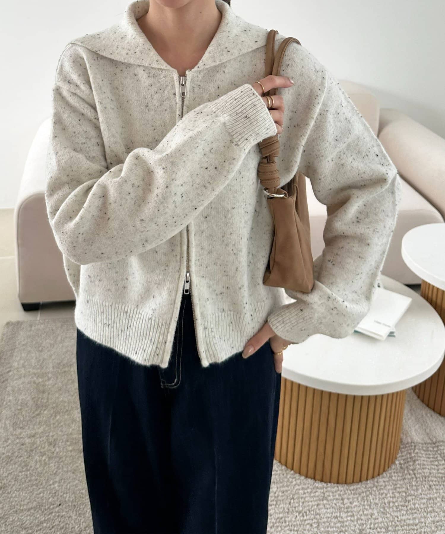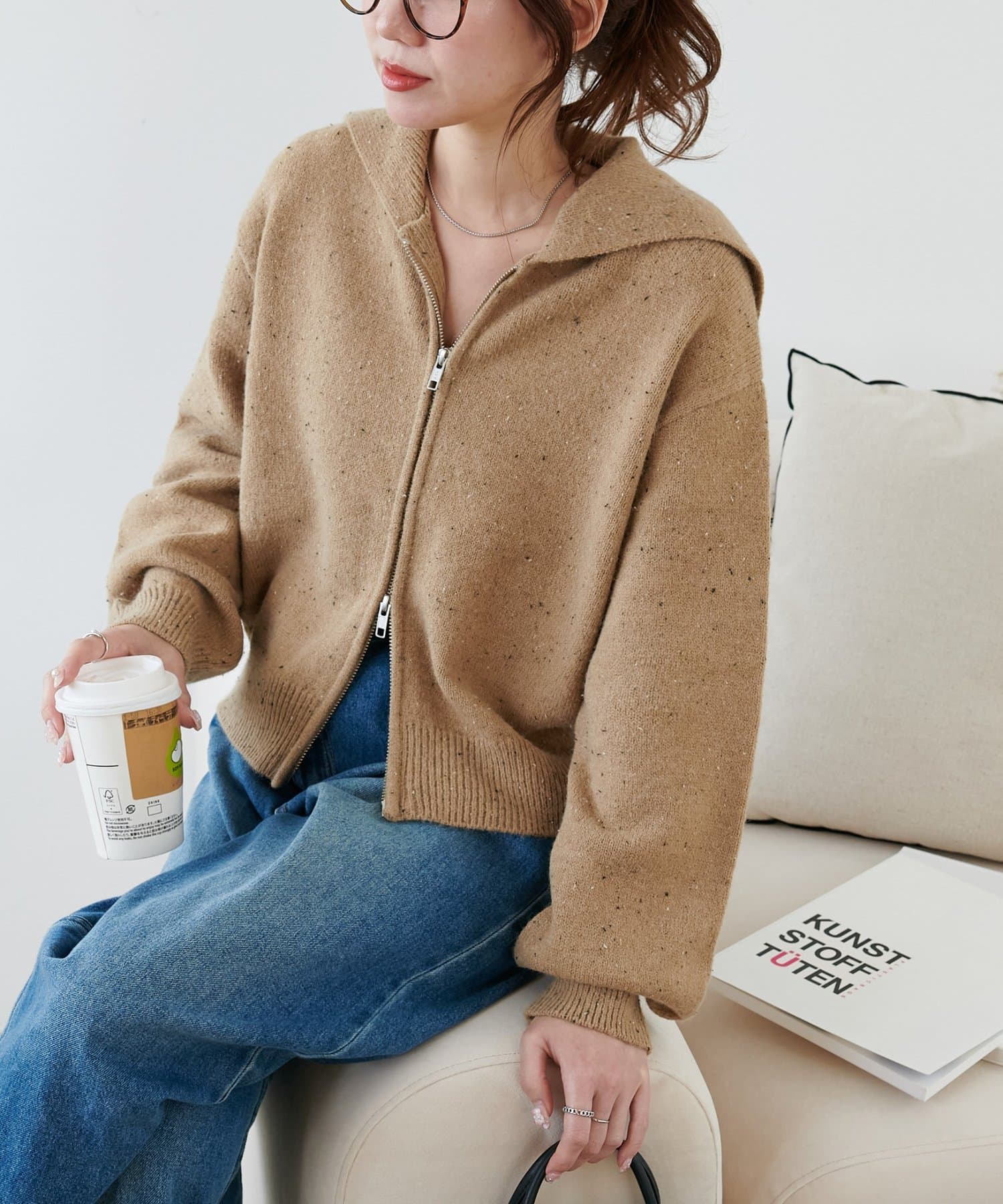 ニット全体にぽつぽつとした不規則な模様ができ、生地に凹凸感やナチュラルで温かみのある、ネップ糸を使用