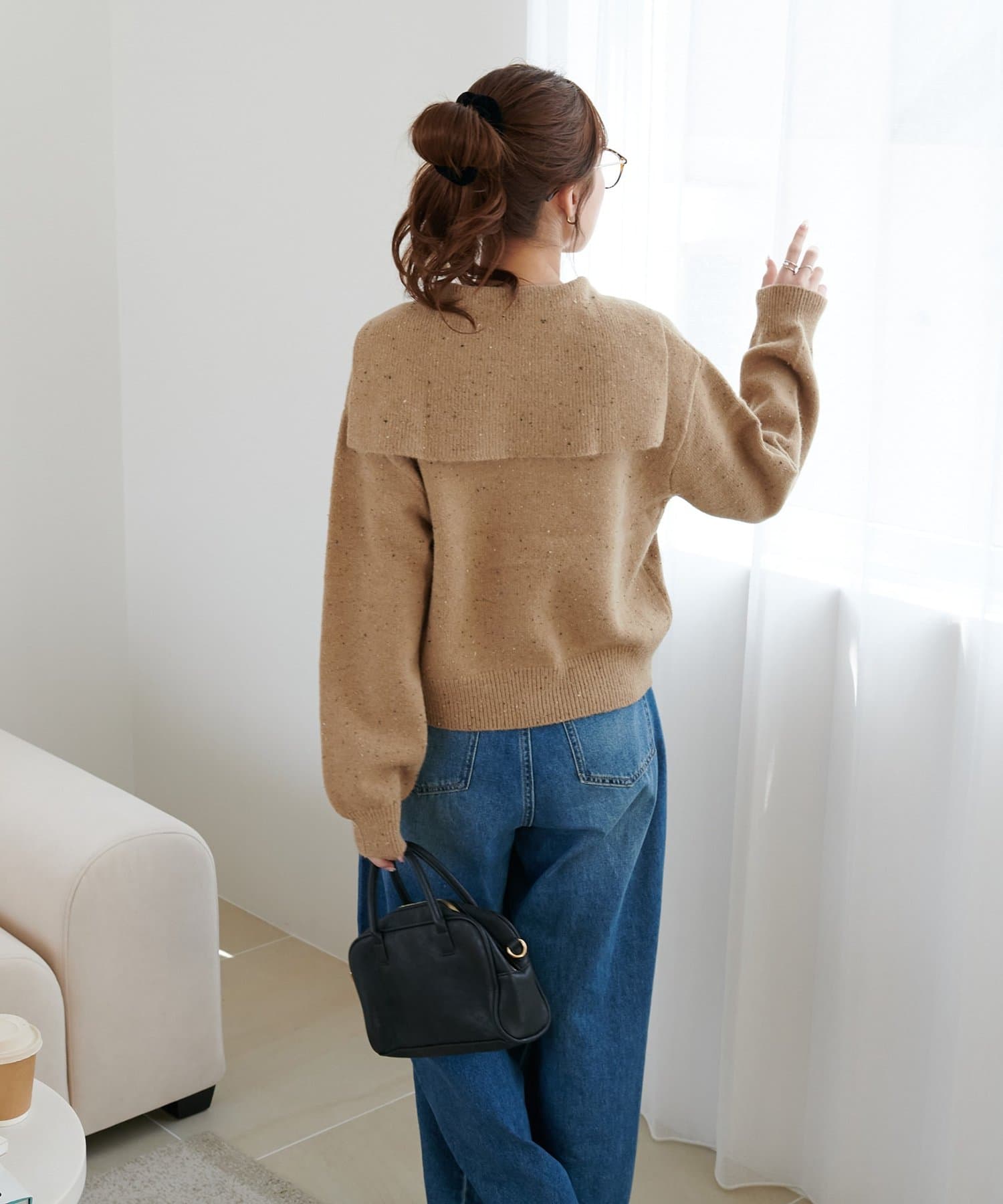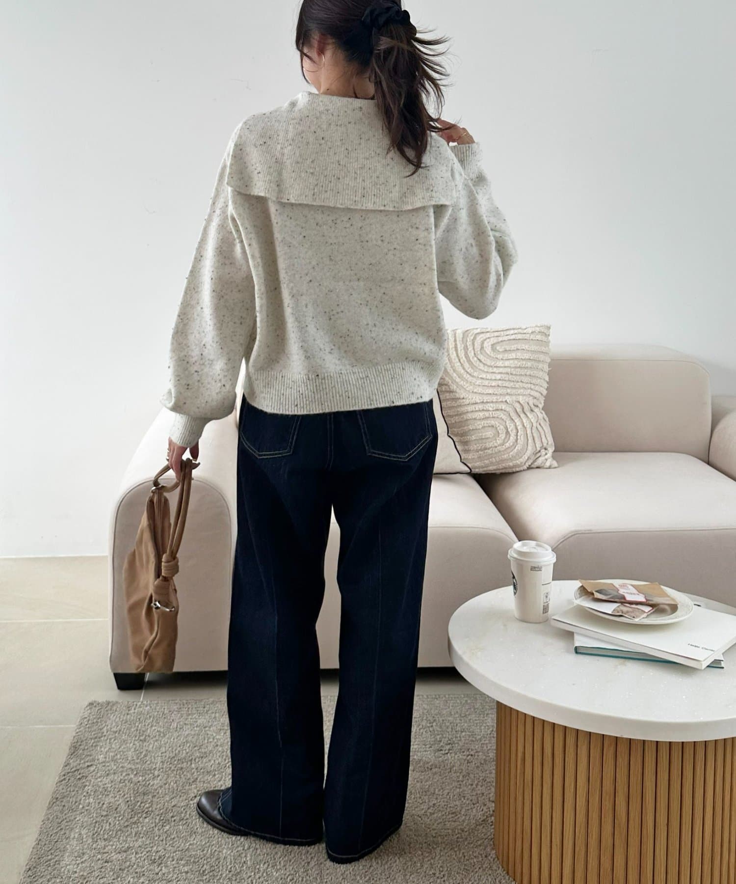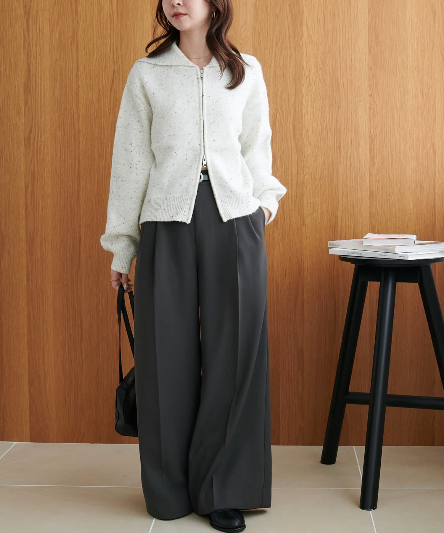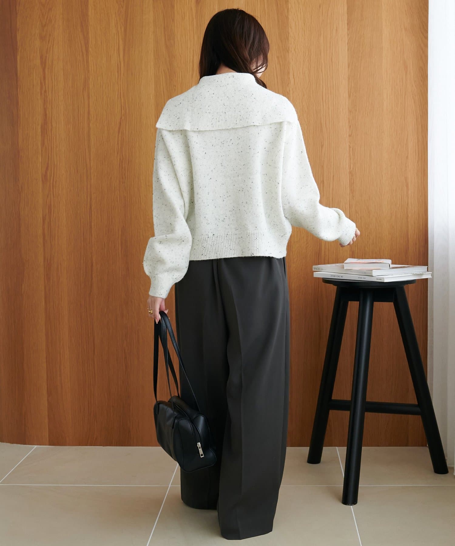 少しカジュアル見えする糸ですが、セーラーカラーは女性らしい雰囲気を出してくれるのでキレイメでも着ることができます〇