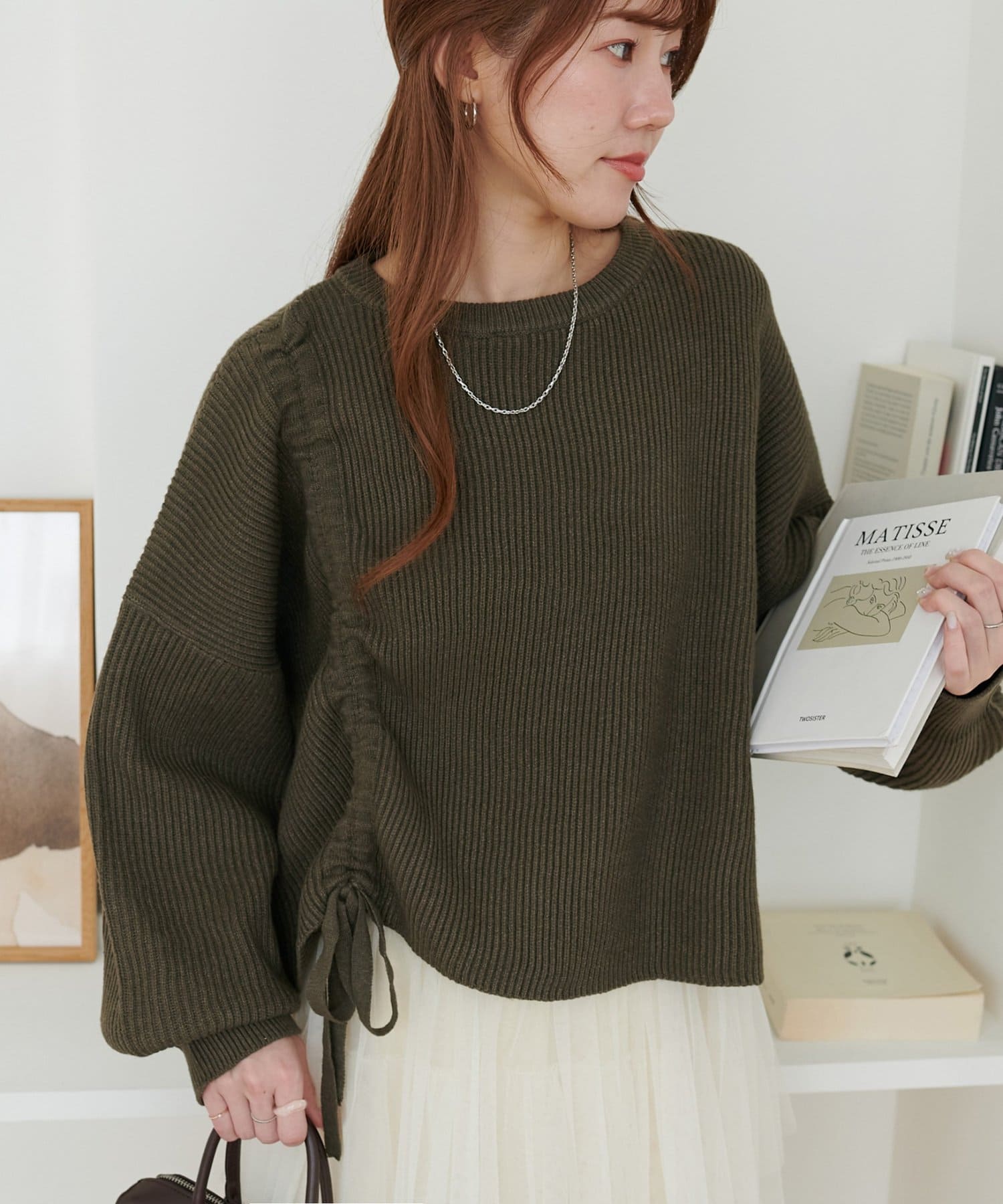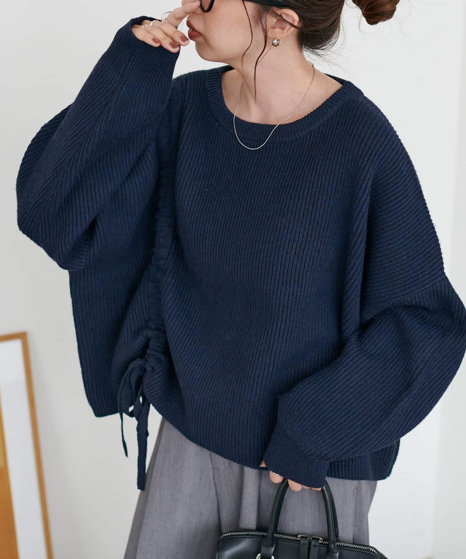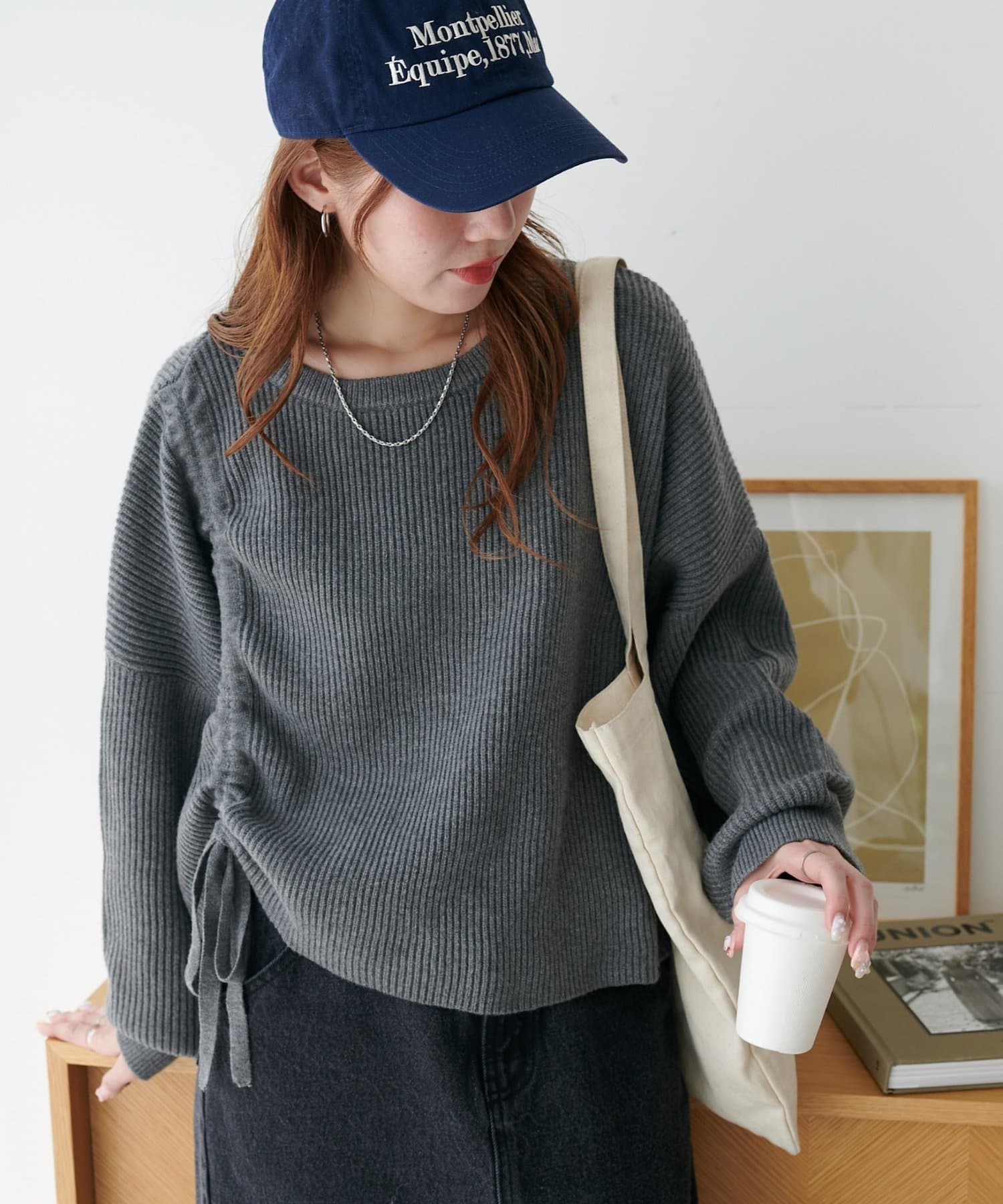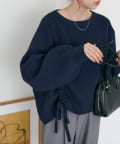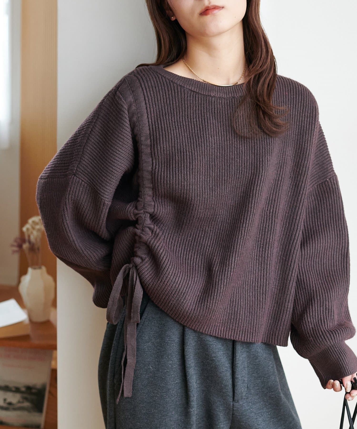 168cmスタッフ:サイドギャザーがポイントのニット。ゆとりのある身幅で、リラックスして着ていただけます