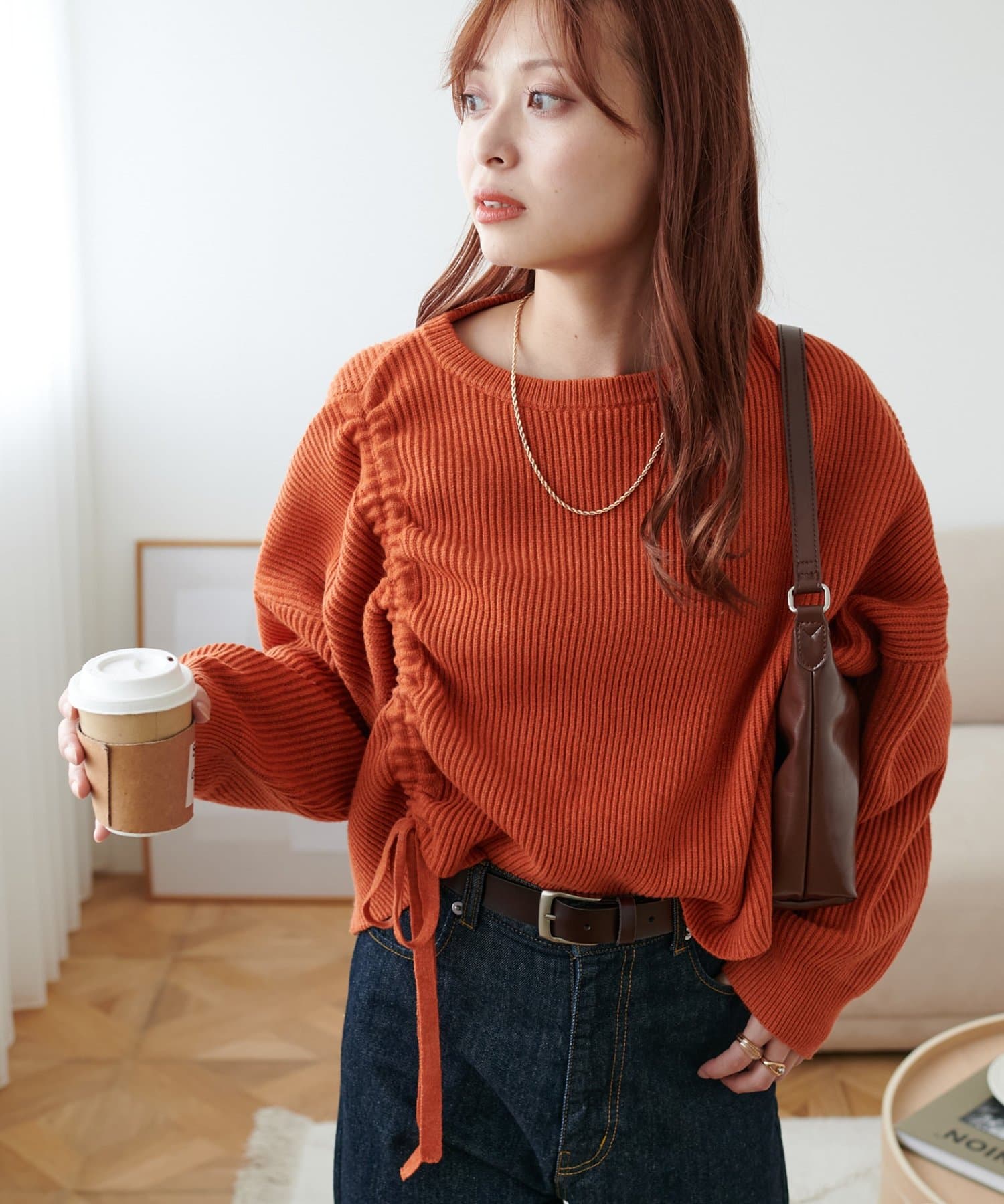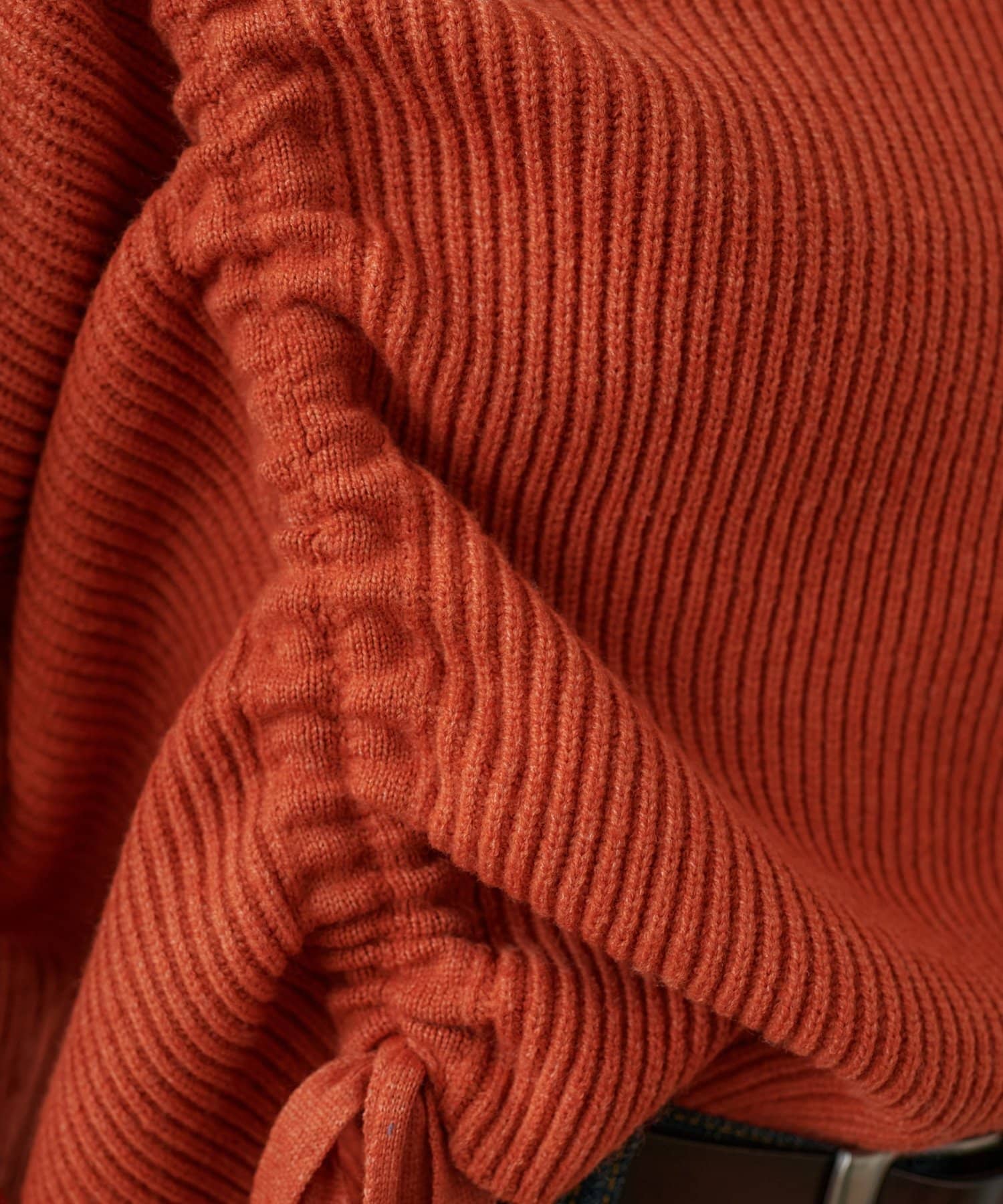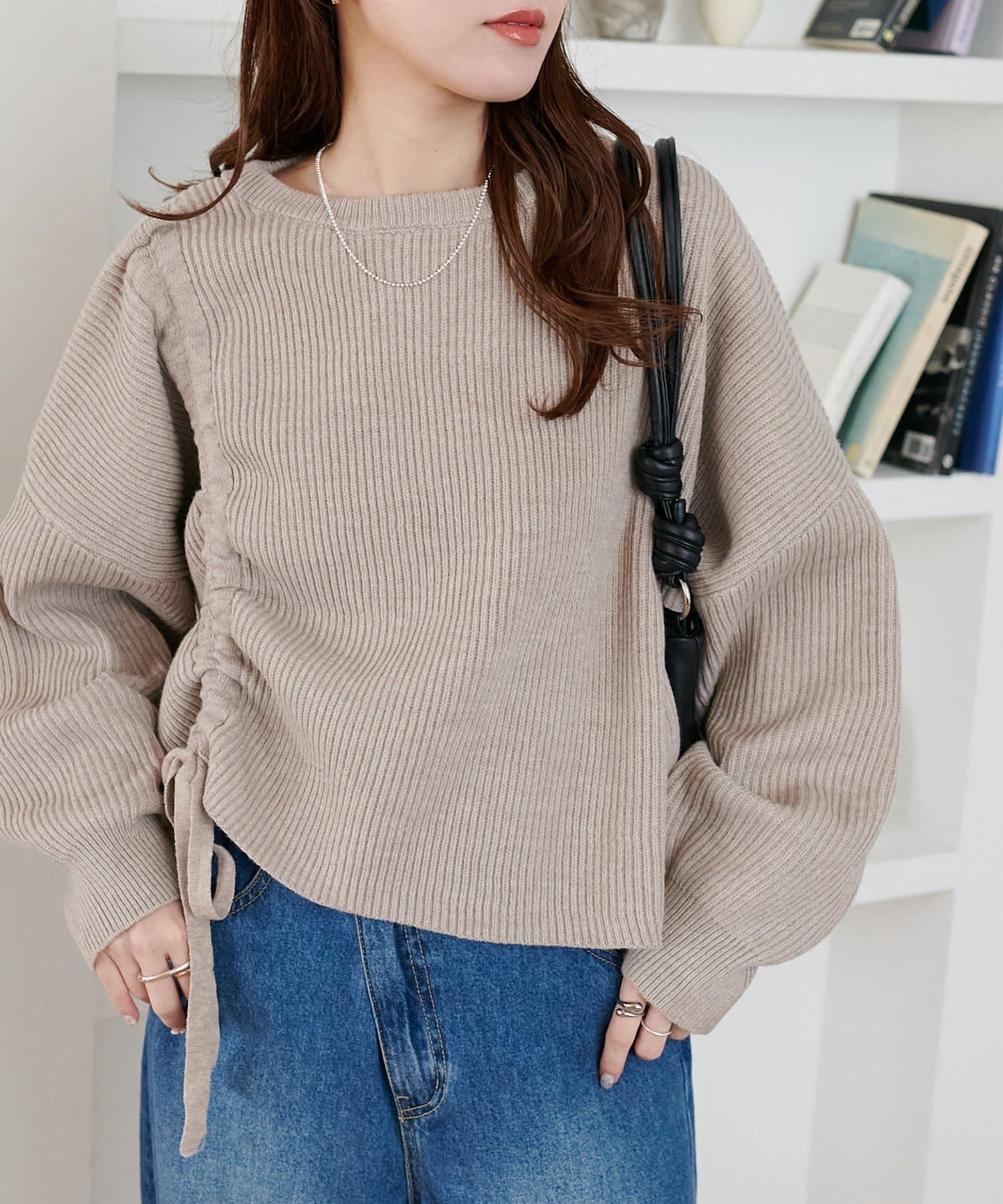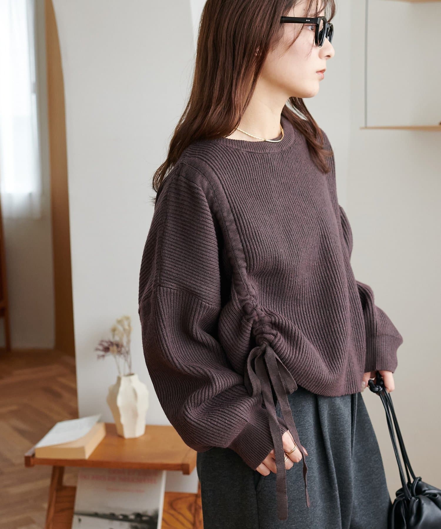 168cmスタッフ:サイドギャザーがポイントのニット。ゆとりのある身幅で、リラックスして着ていただけます