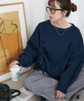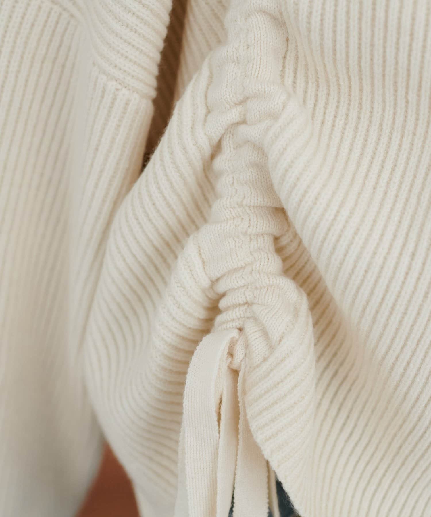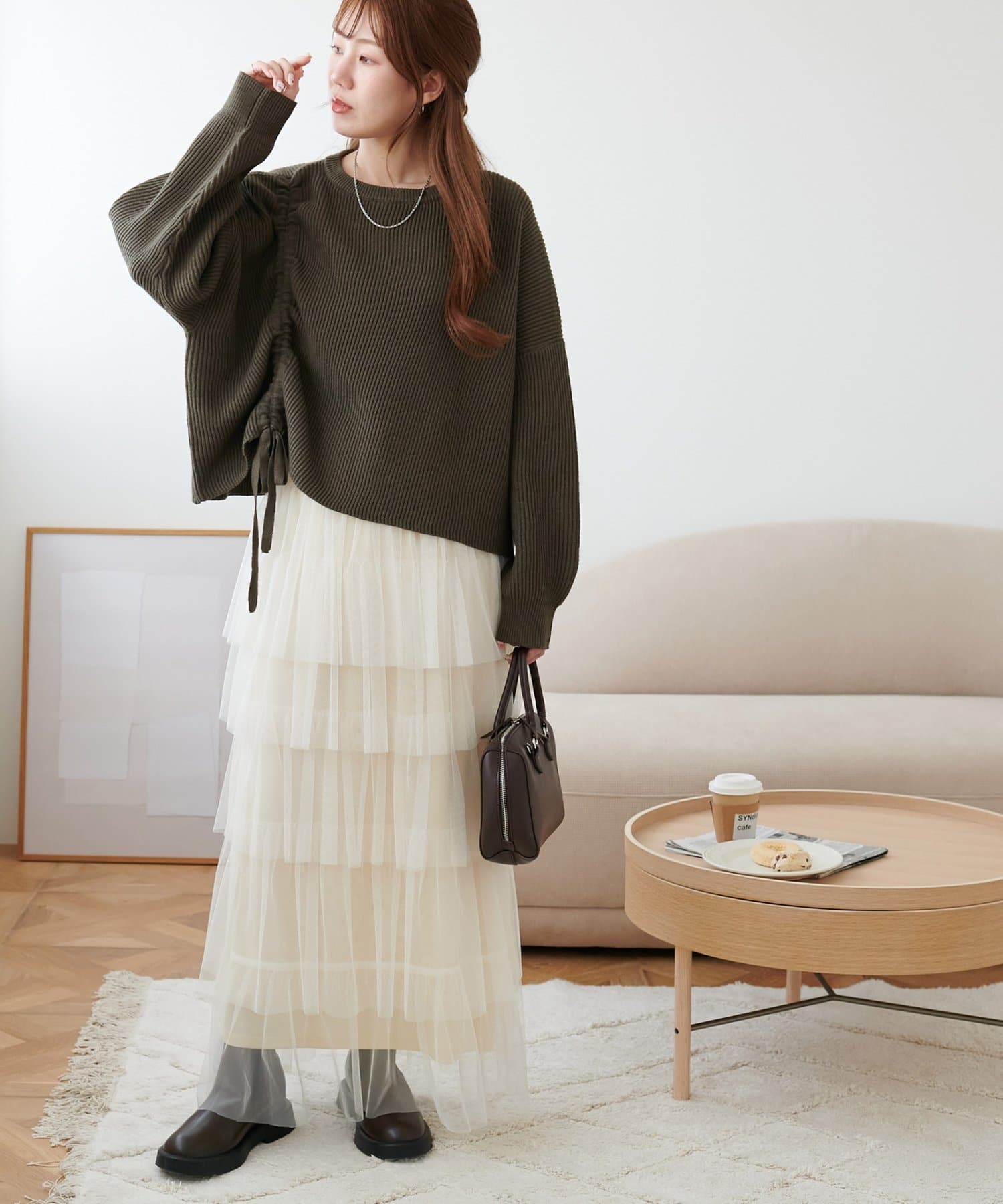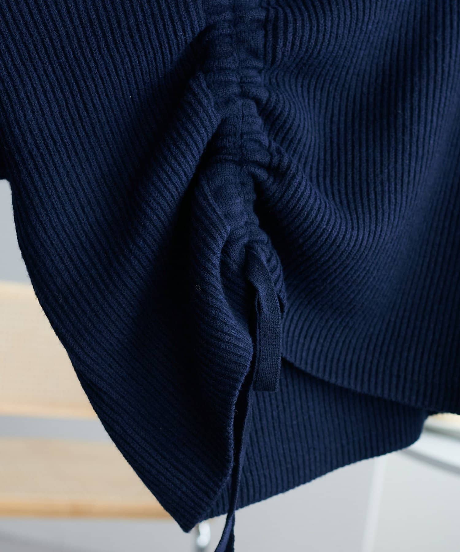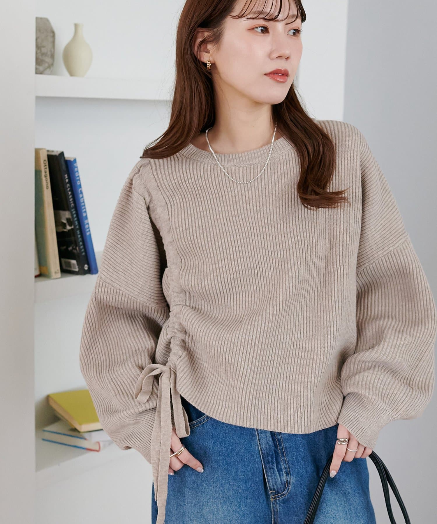 168cmスタッフ:サイドギャザーがポイントのニット。ゆとりのある身幅で、リラックスして着ていただけます