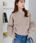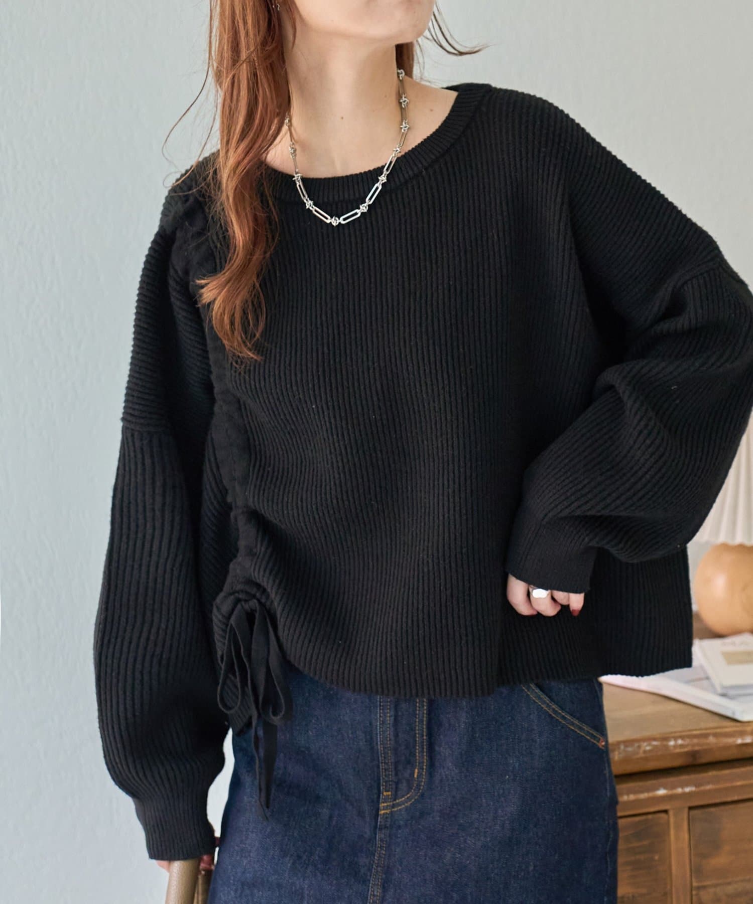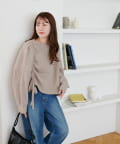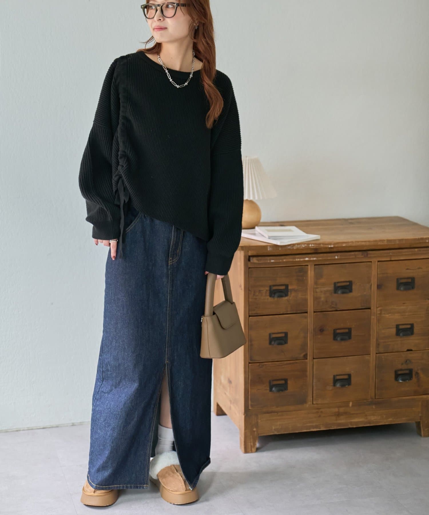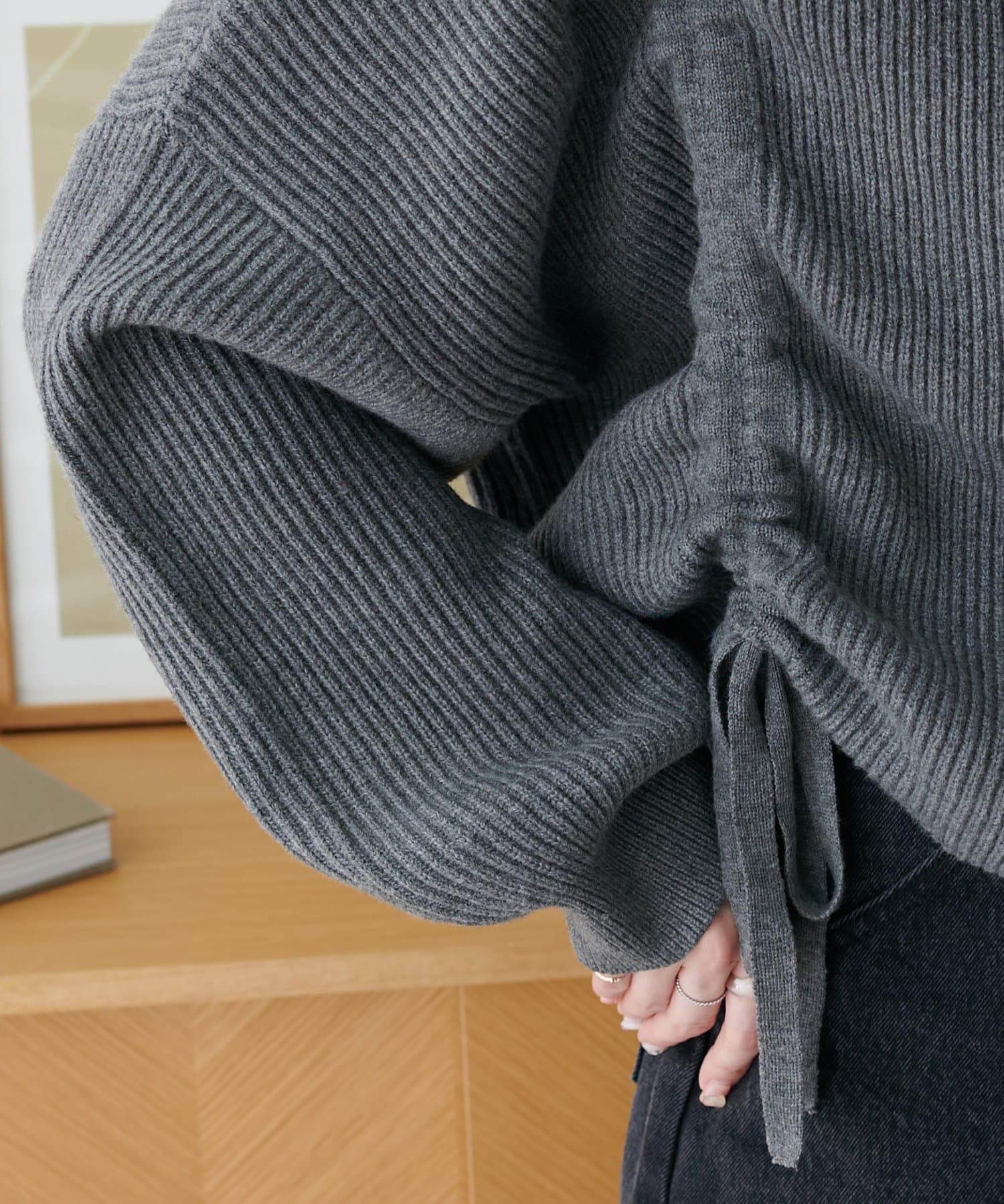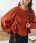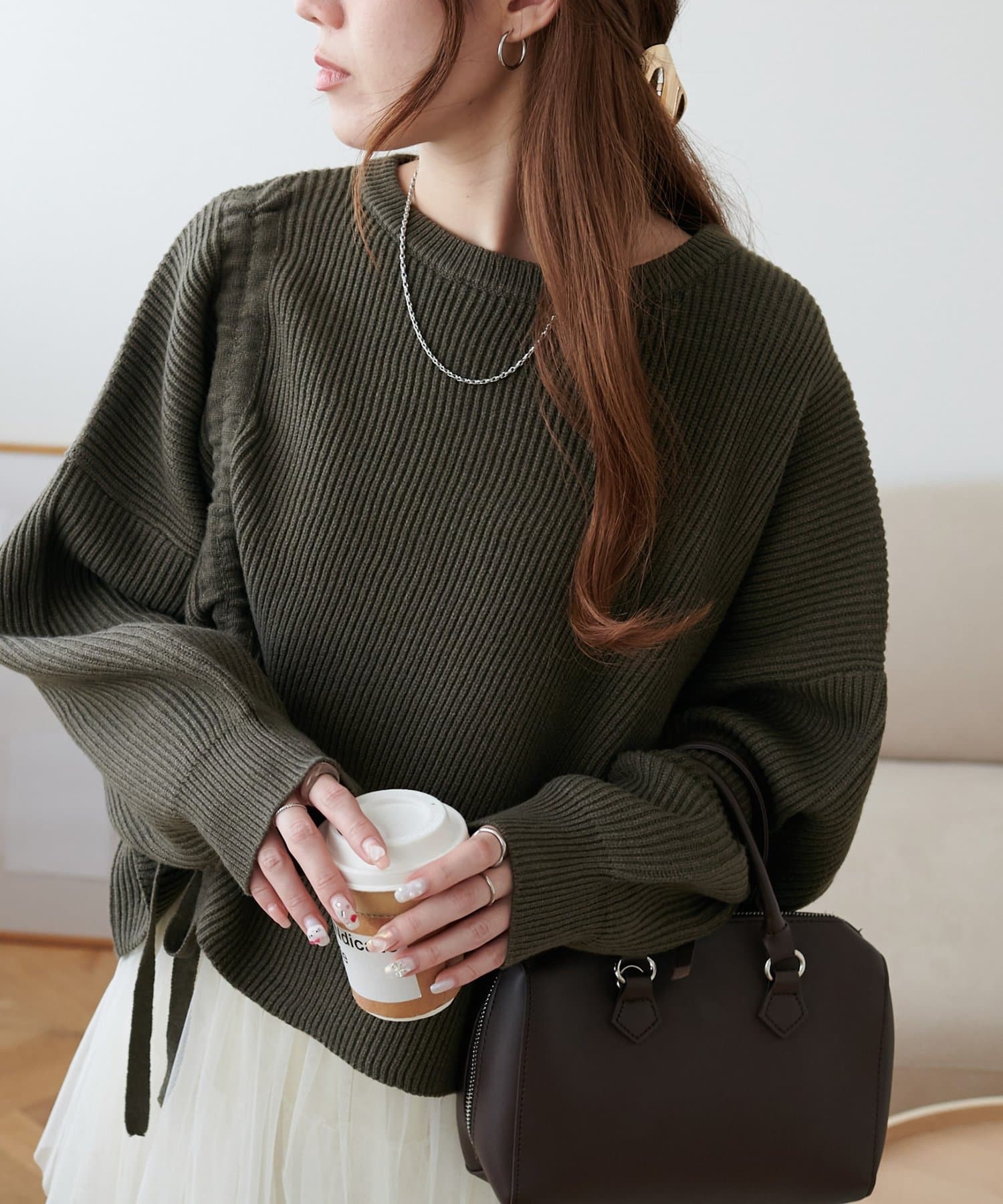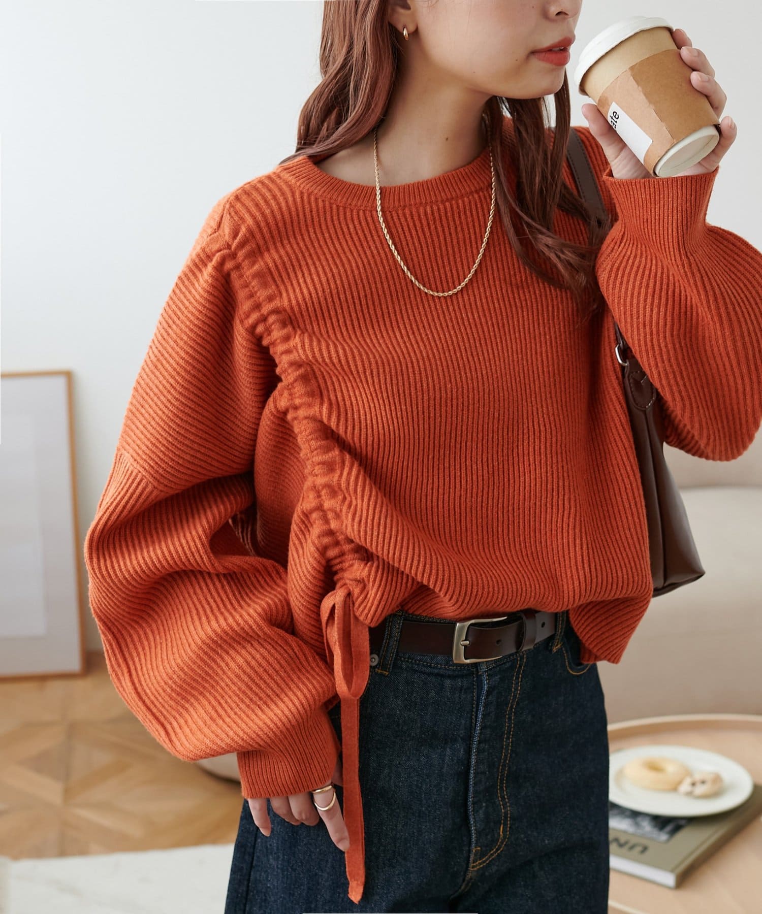 168cmスタッフ:サイドギャザーがポイントのニット。ゆとりのある身幅で、リラックスして着ていただけます