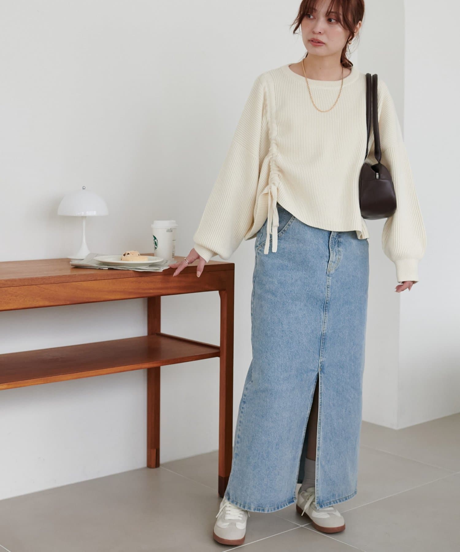 ギャザーはお好きなバランスに調節可能なので、合わせるアイテムによって雰囲気を変えて楽しめます!