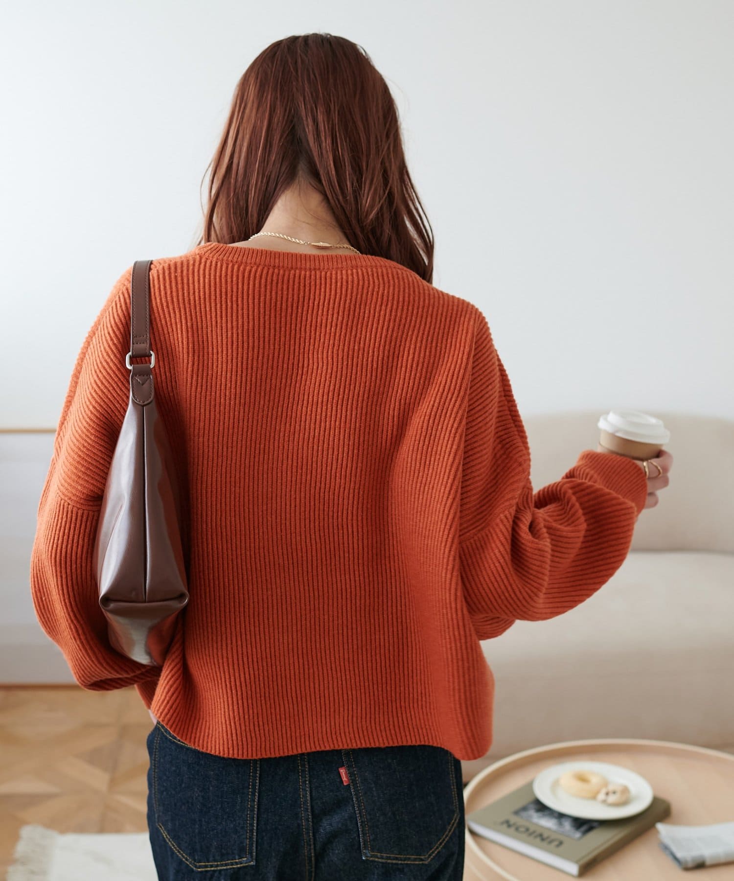 147cmスタッフ:デザイン性のあるニット。モチモチとした生地感で暖かく着ていただけます。