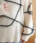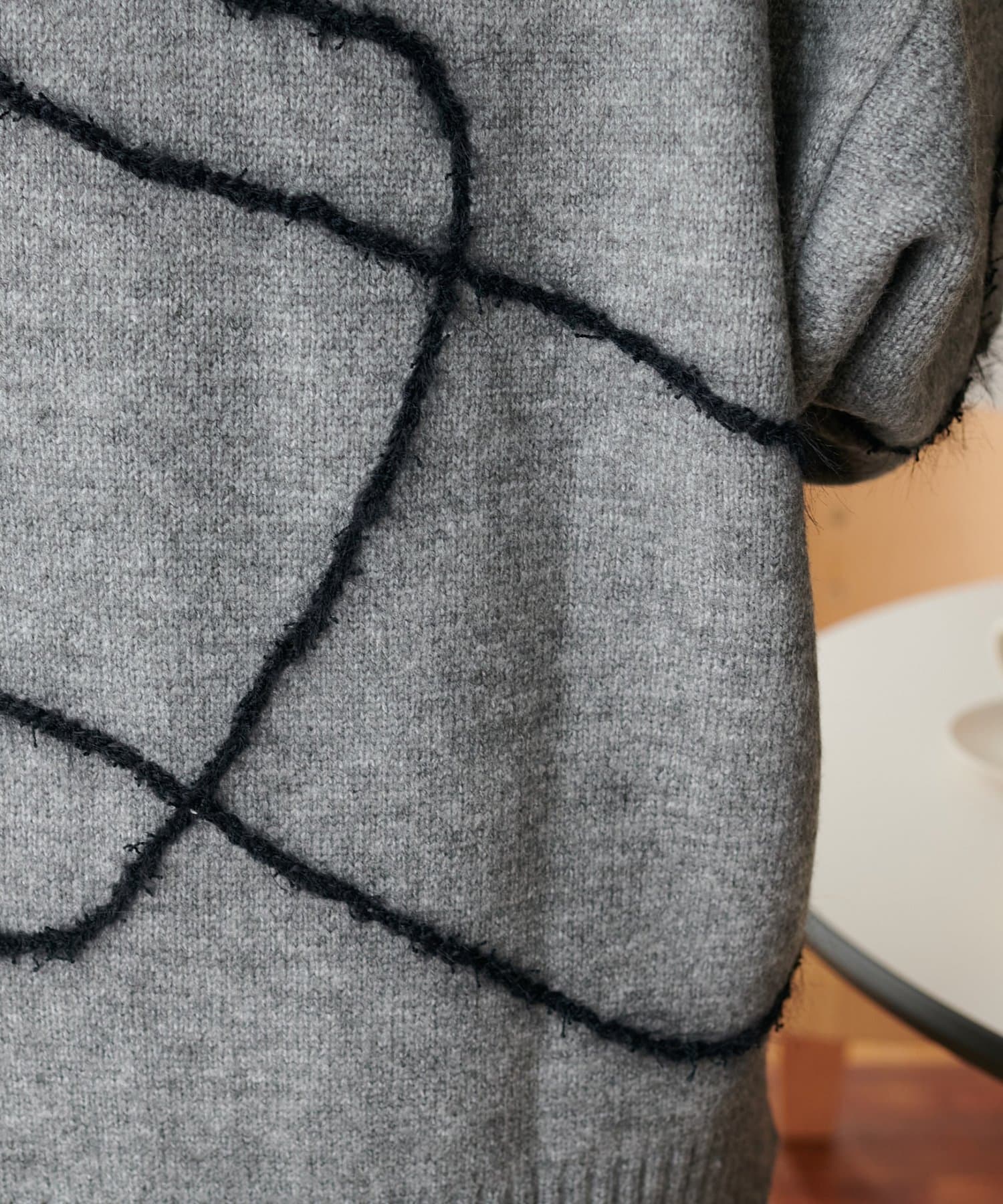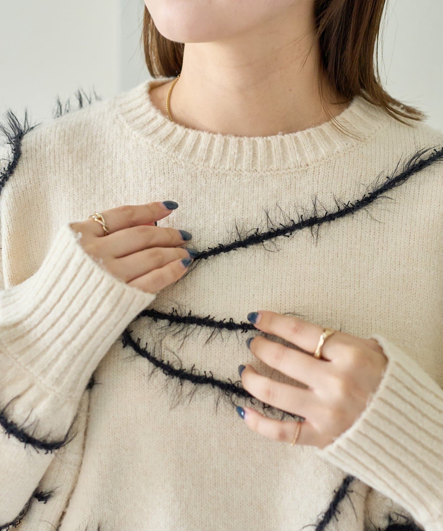 三種類の糸を組み合わせており、フェザー糸を混ぜることで立体感のある線柄に仕上がりました。