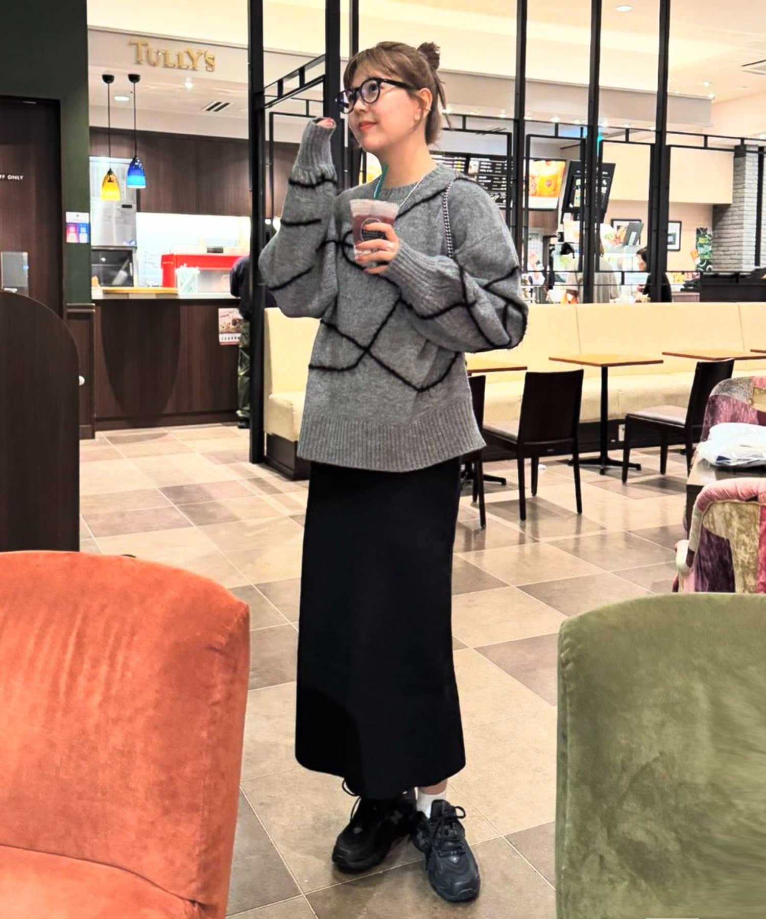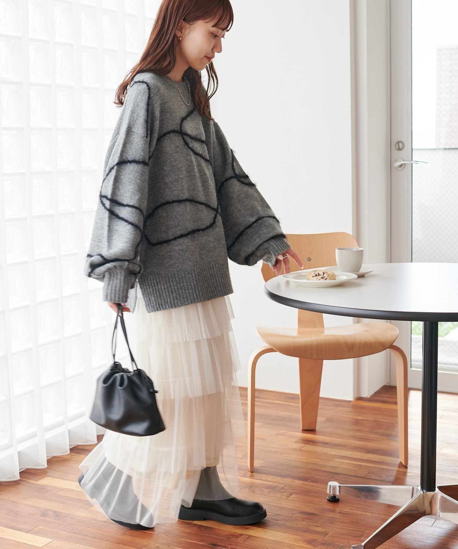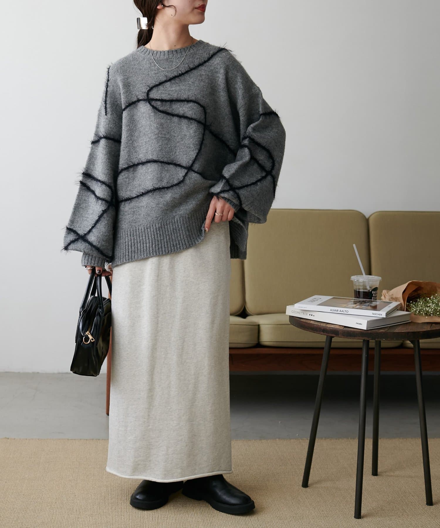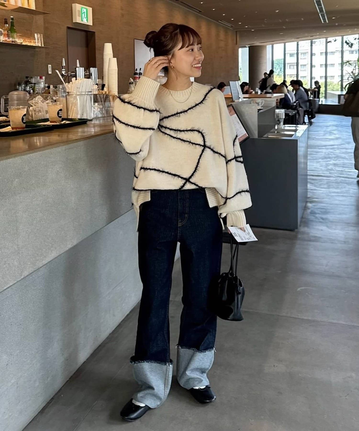 153cmスタッフ:立体感のある線柄があまりないデザインで可愛い!お尻が隠れるくらいの着丈で体型カバーもできます。