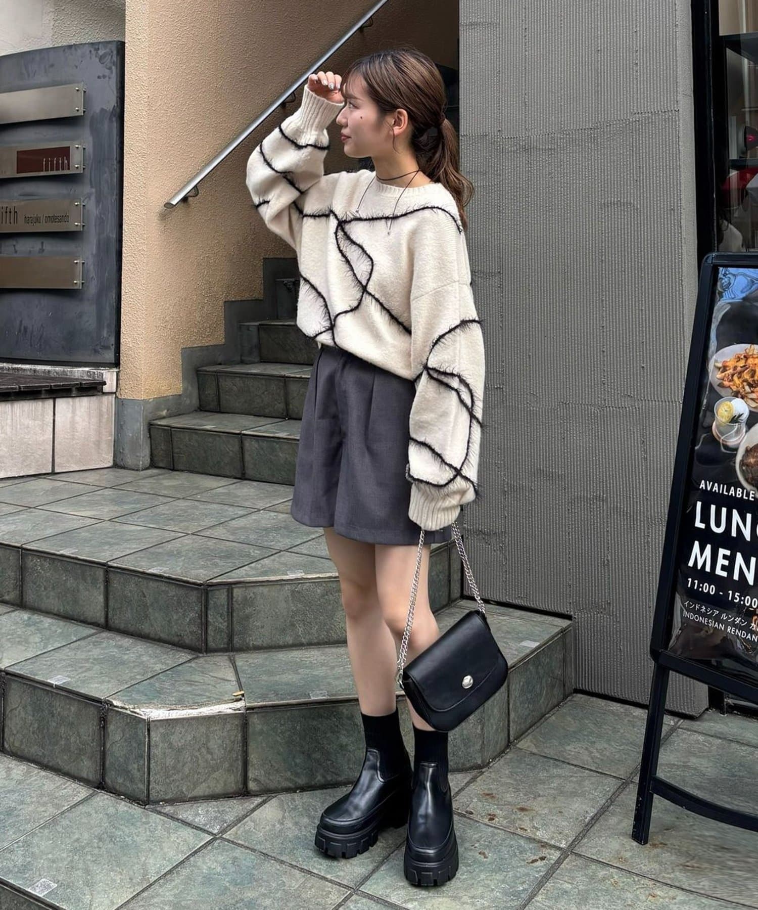 ニットスカートやフレアスカートスカート・ショートパンツを合わせた女性らしいスタイリングがおすすめ◎